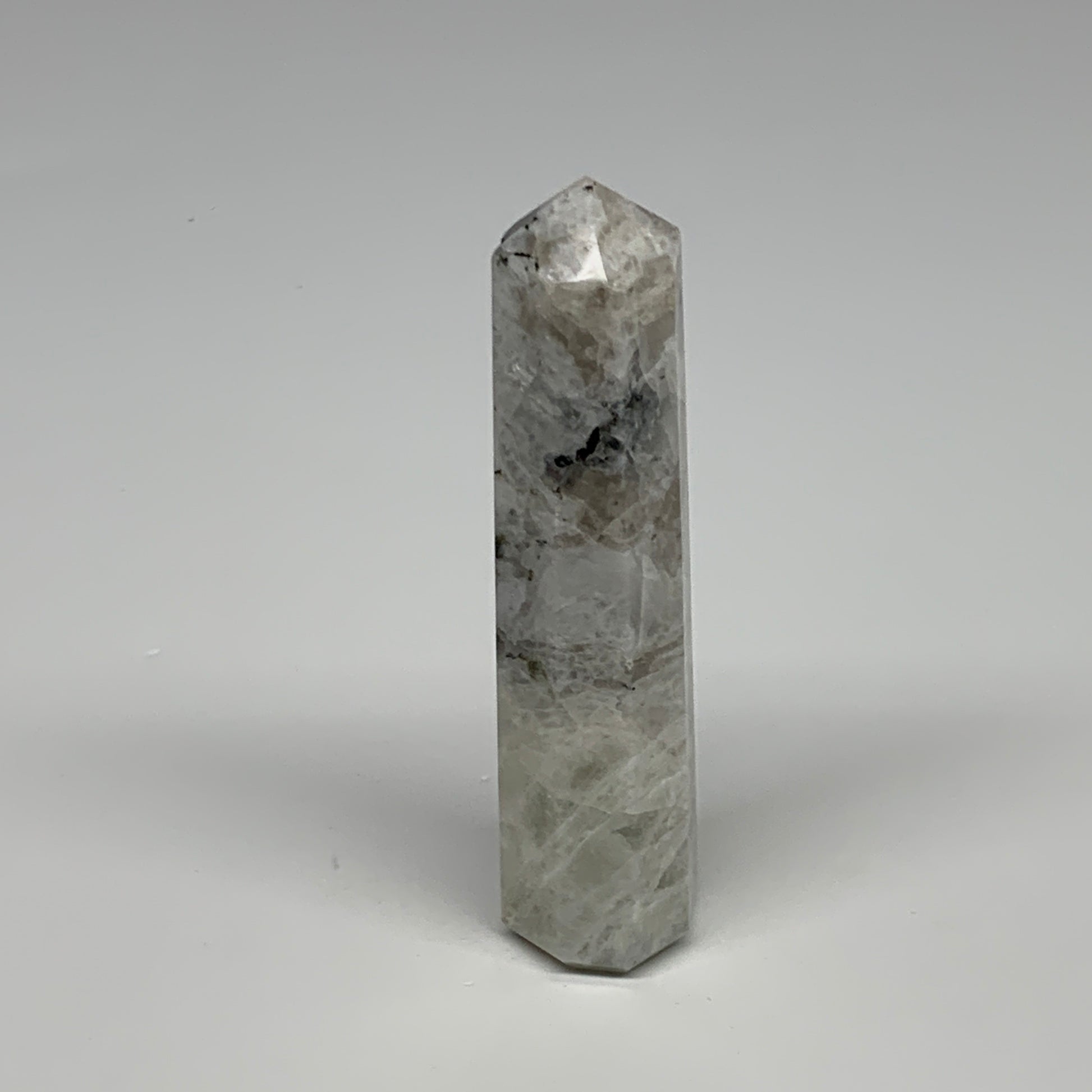 88.2g, 4"x0.8", Rainbow Moonstone Tower Obelisk Point Crystal @India, B29252