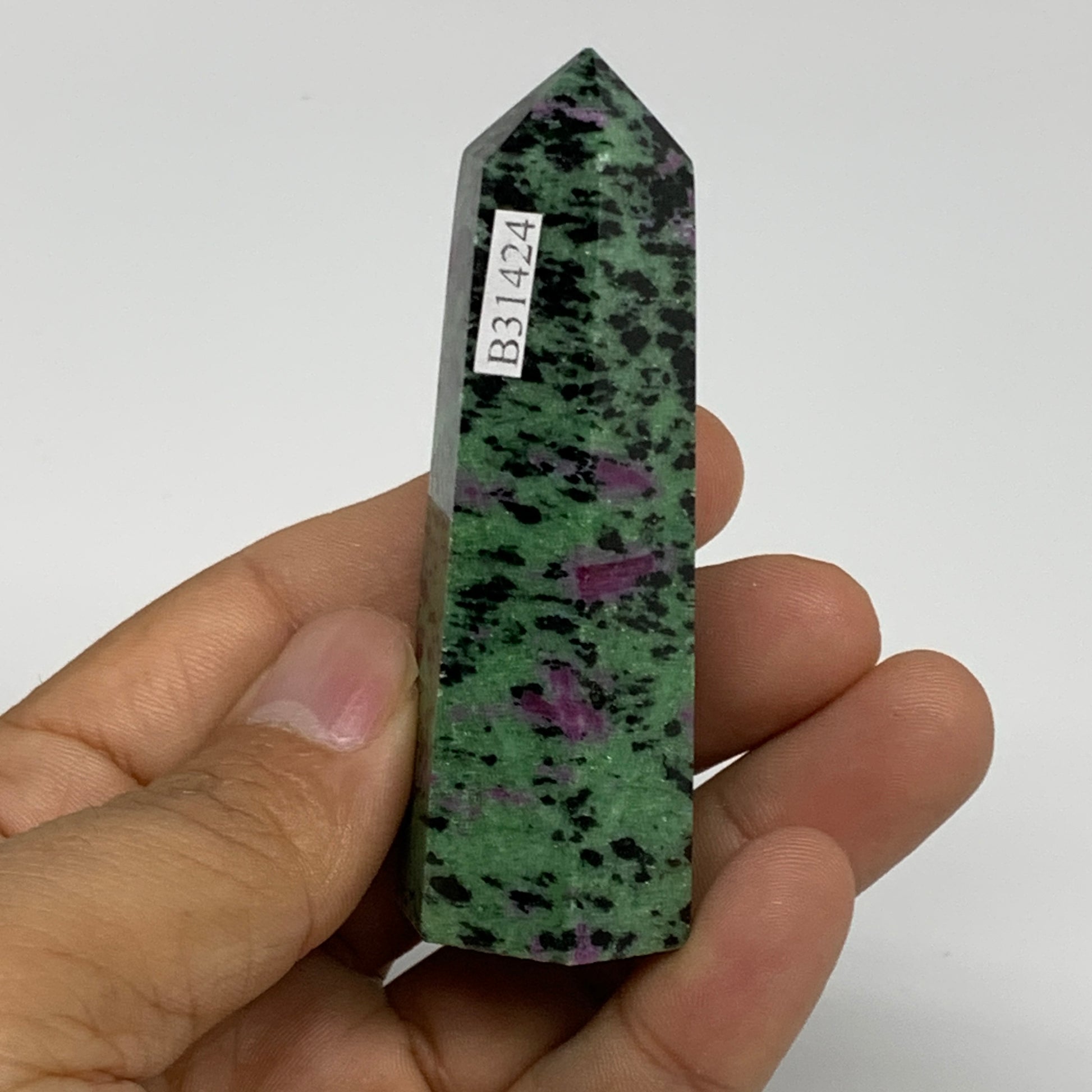 88.4g, 2.9"x0.9", Natural Ruby Zoisite Tower Point Obelisk @India, B31424