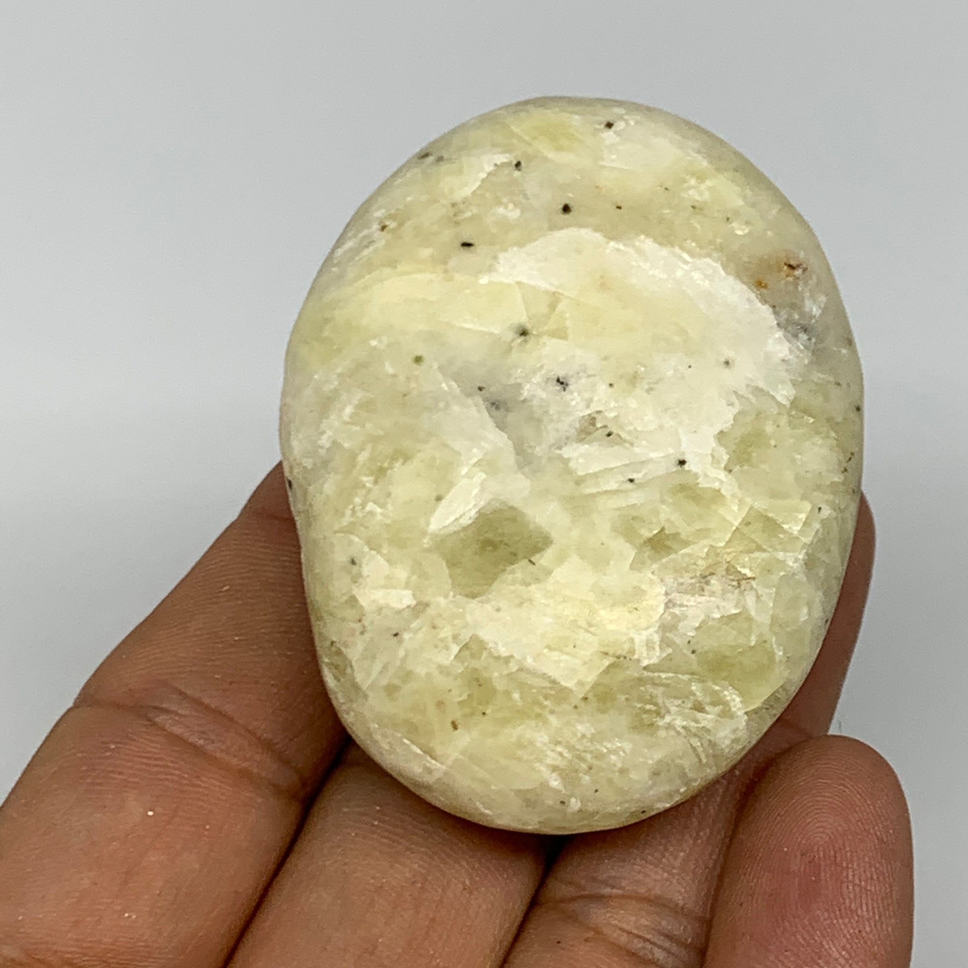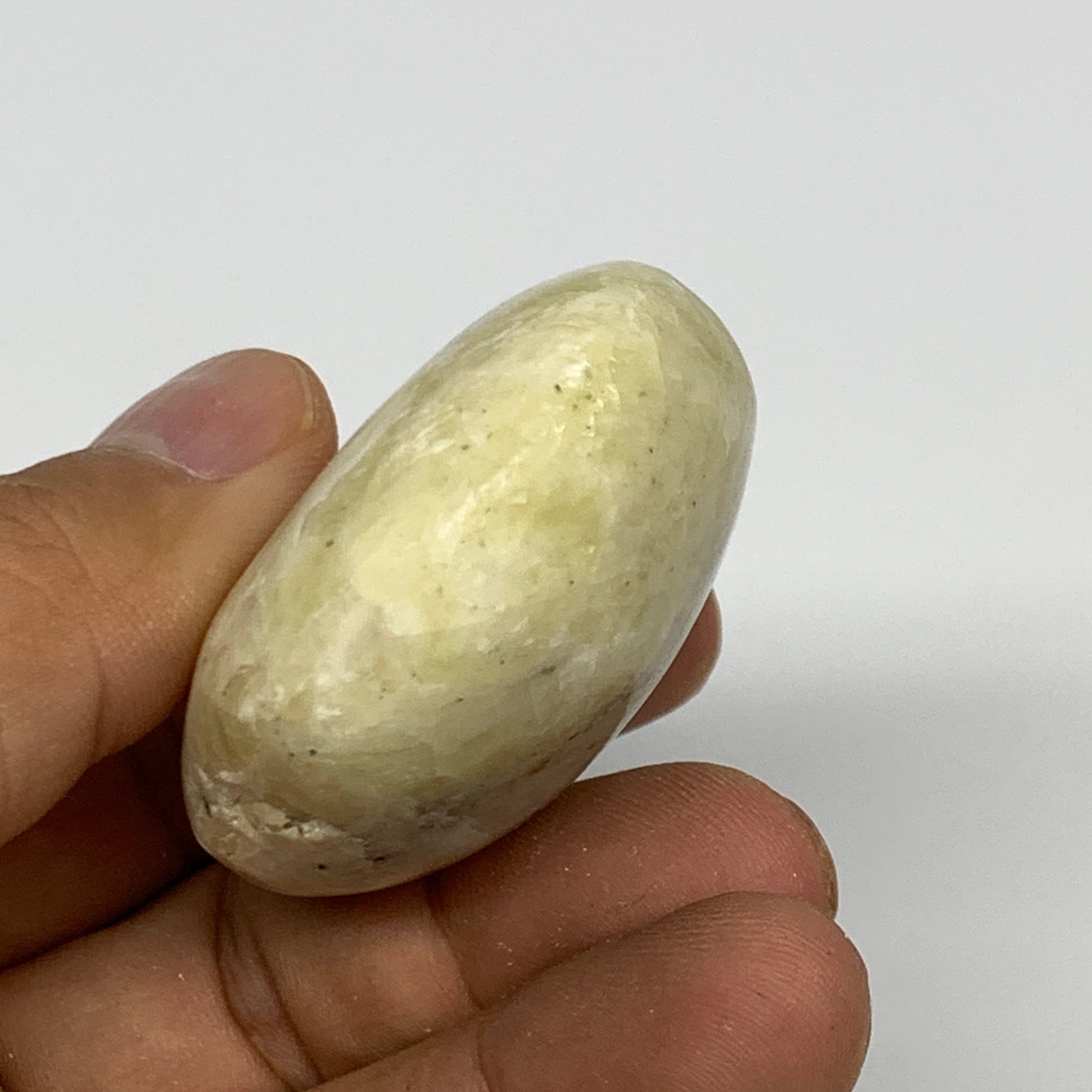 88.7g, 2.3"x1.7"x0.9", Natural Yellow Calcite Palm-Stone Crystal Polished Reiki, B16770