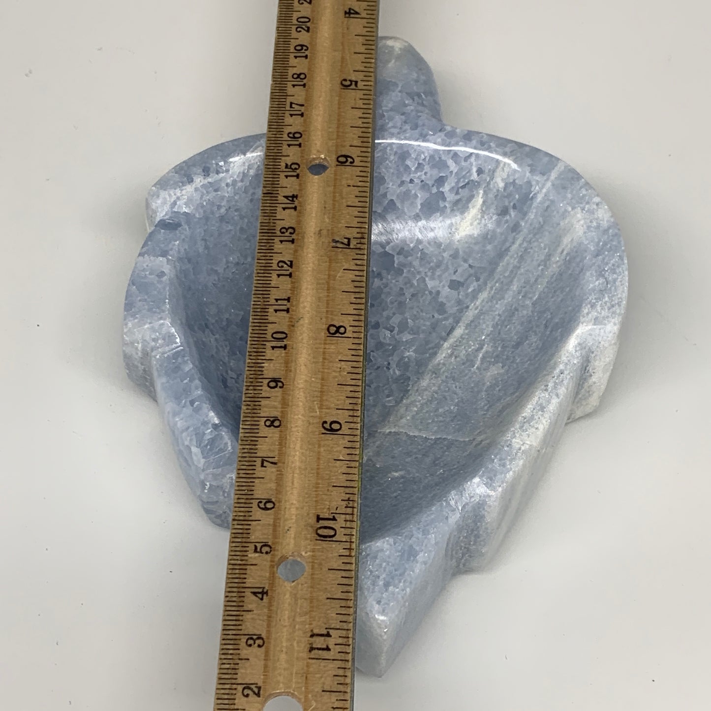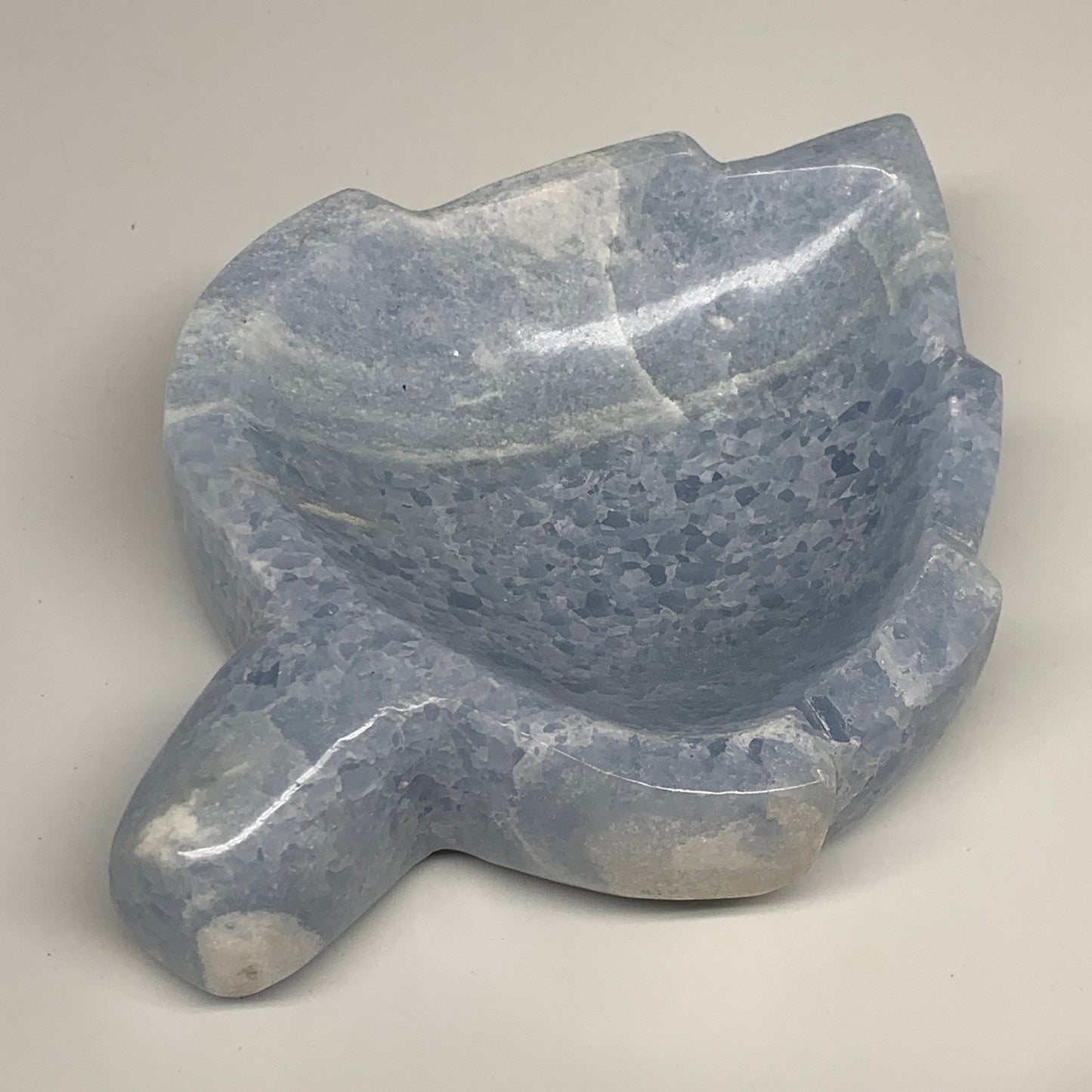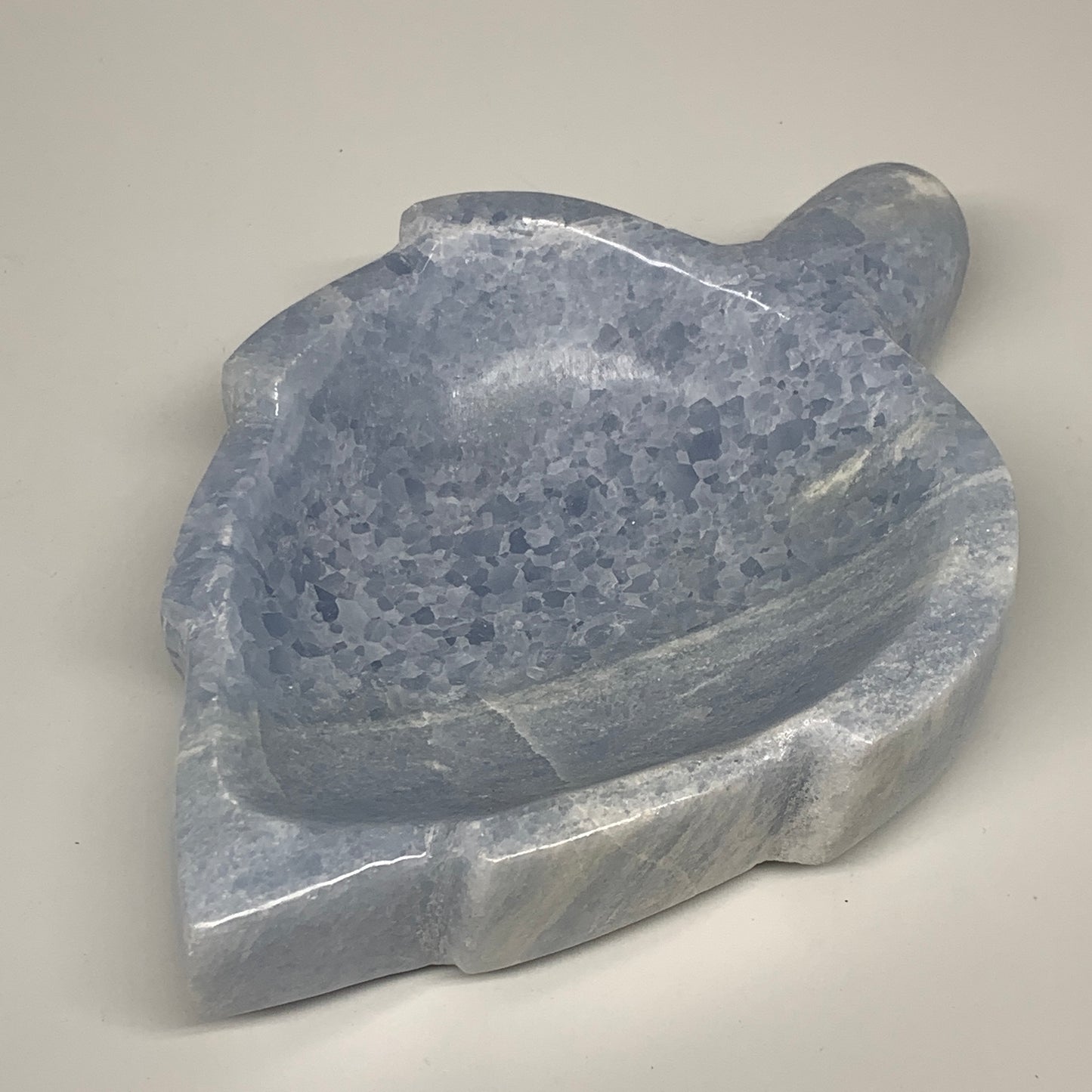 674g, 6.5"x4.1"x1.5" Natural Blue Calcite Bowl Leaf Gemstones Ashtray, B6362
