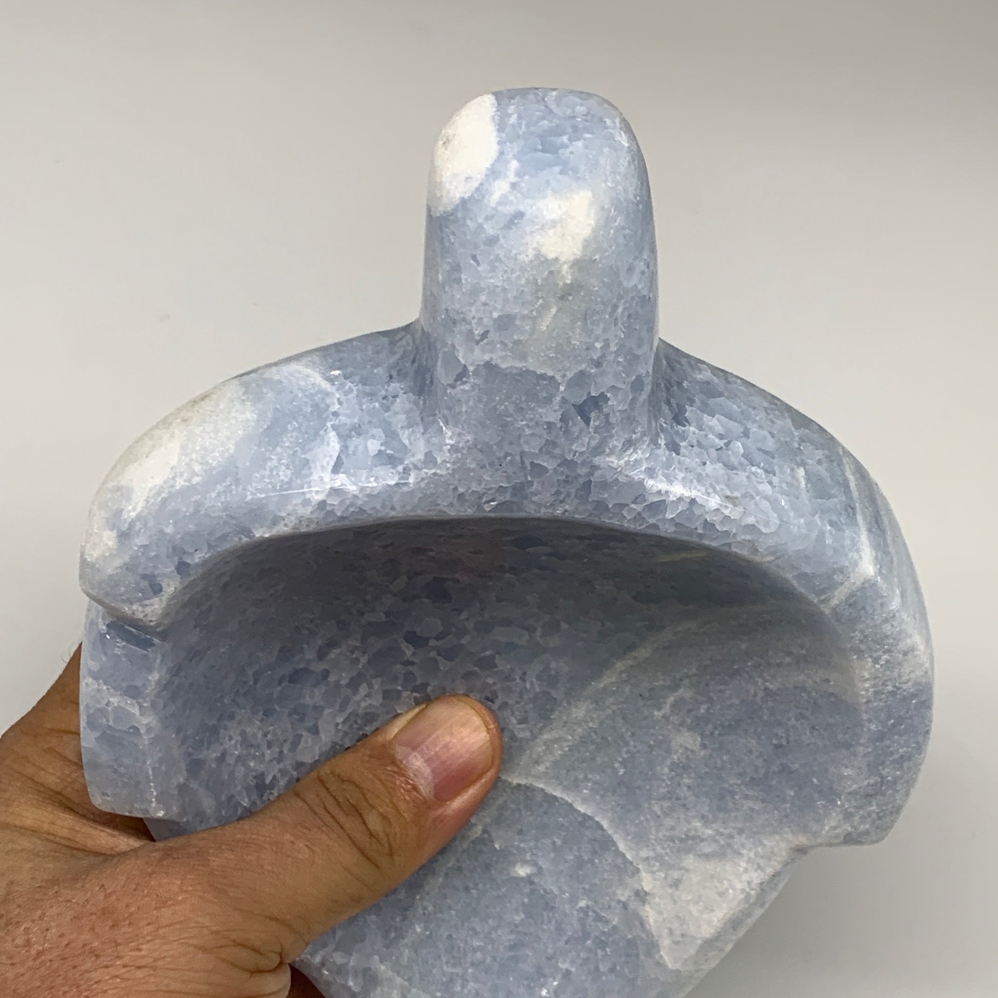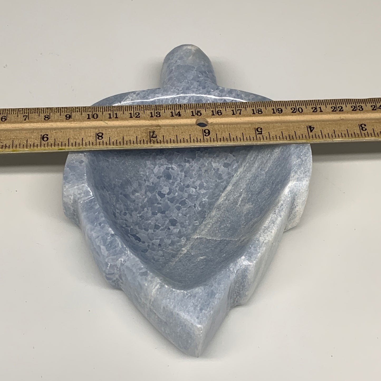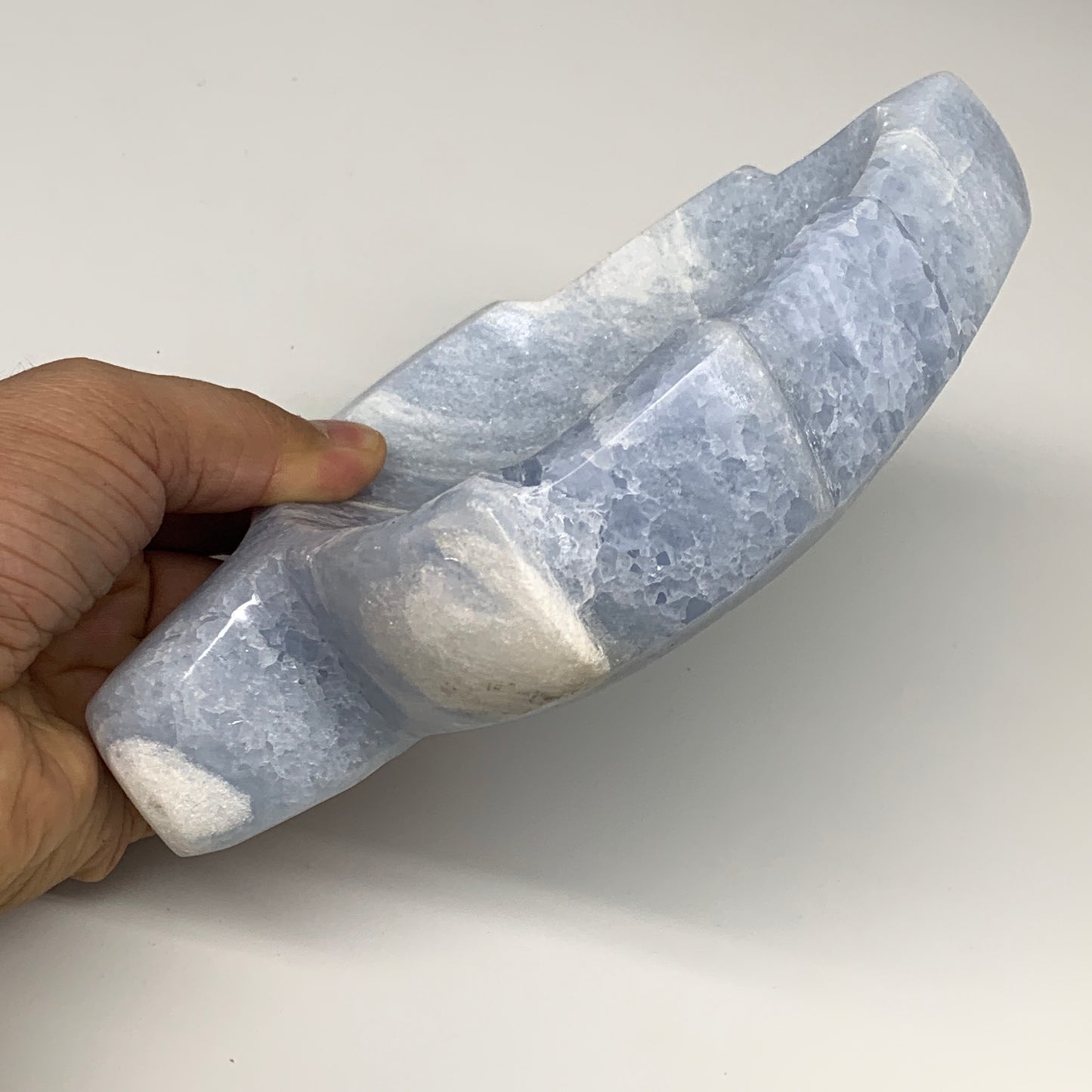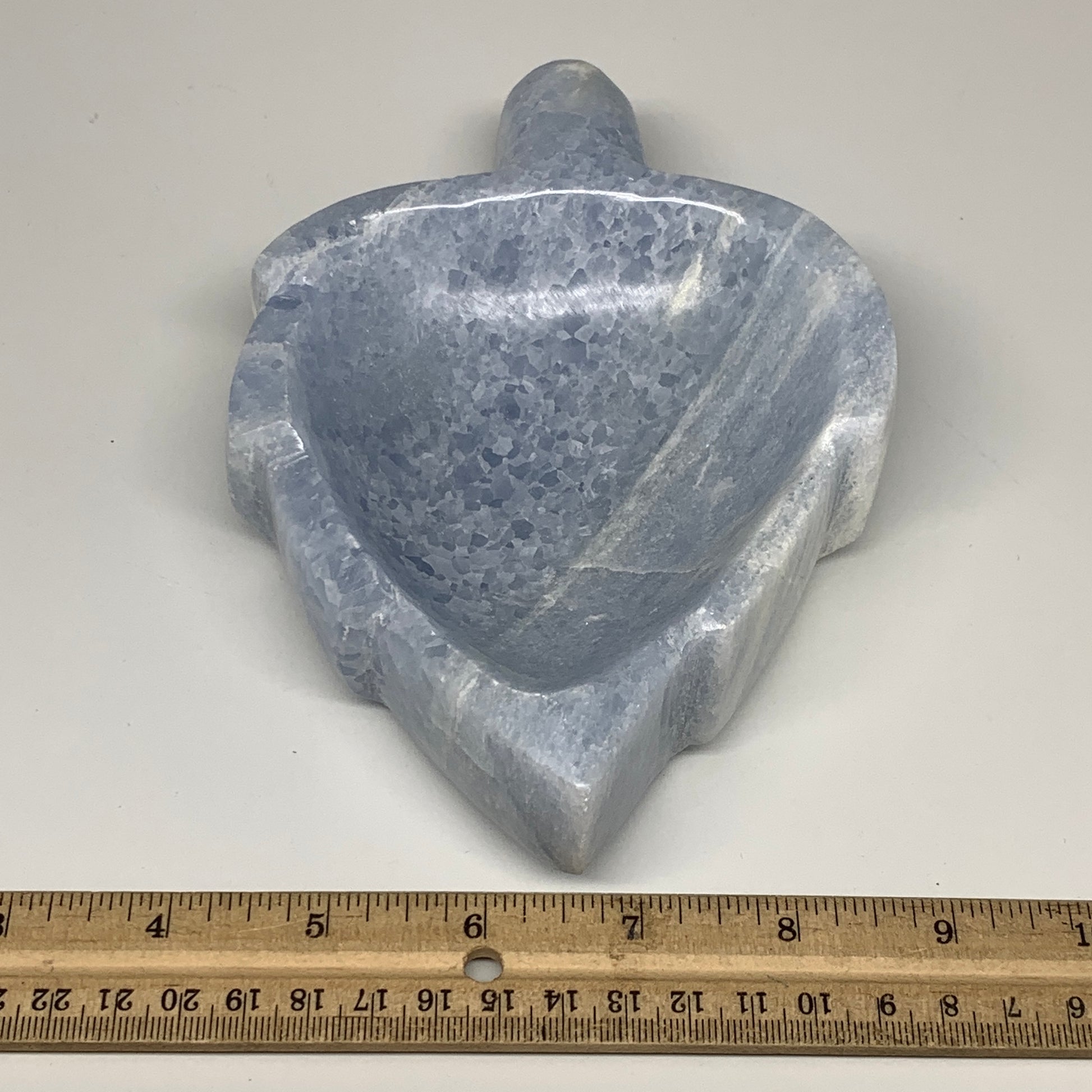 674g, 6.5"x4.1"x1.5" Natural Blue Calcite Bowl Leaf Gemstones Ashtray, B6362