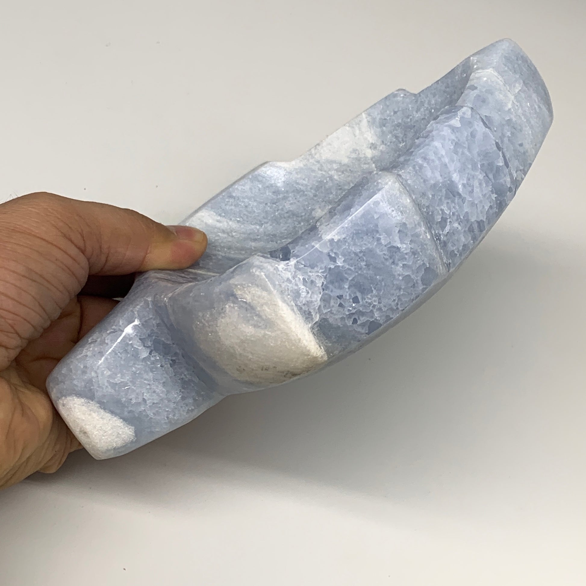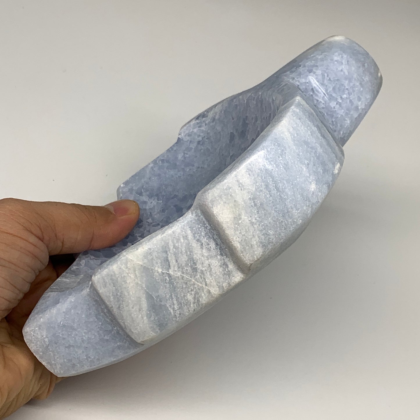 Attention: The bowl or plate made from natural Blue Calcite, carved and polished. There are crack looking lines or fracture looking lines but does not mean repaired or broken. Most pieces of natural semi-precious stones come like that. If there are no flaws, then, they would call it fine gems. Please keep these things in mind. Although you will get the exact item pictured, we want you to also read and understand what you will be getting and expecting. We don't want surprises to our customers, that is why we spend our time and take images one by one so you know exactly what you will be getting.