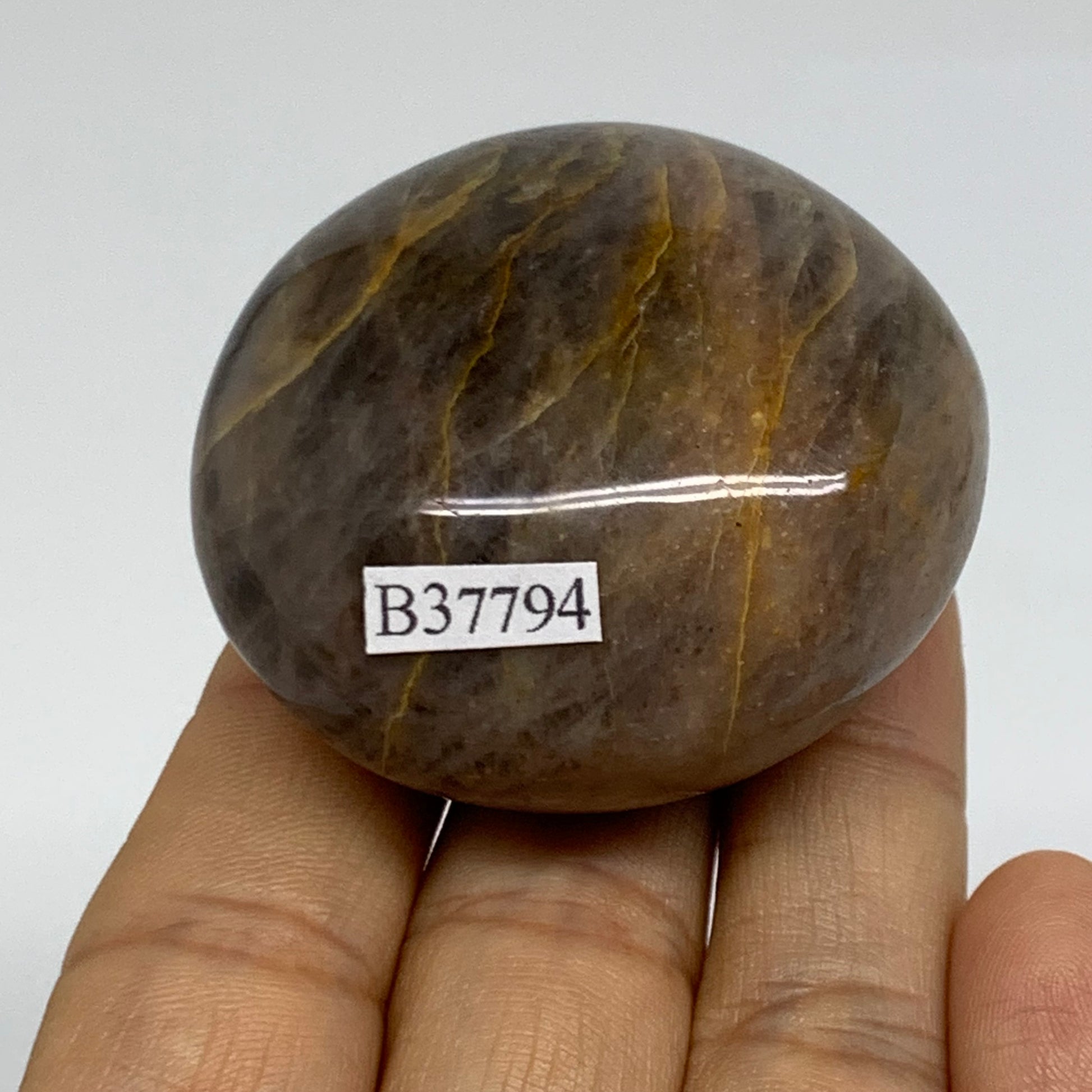 89.3g, 1.9"x1.8"x1.1", Black Moonstone Crystal Palm-Stone Polished, B37794