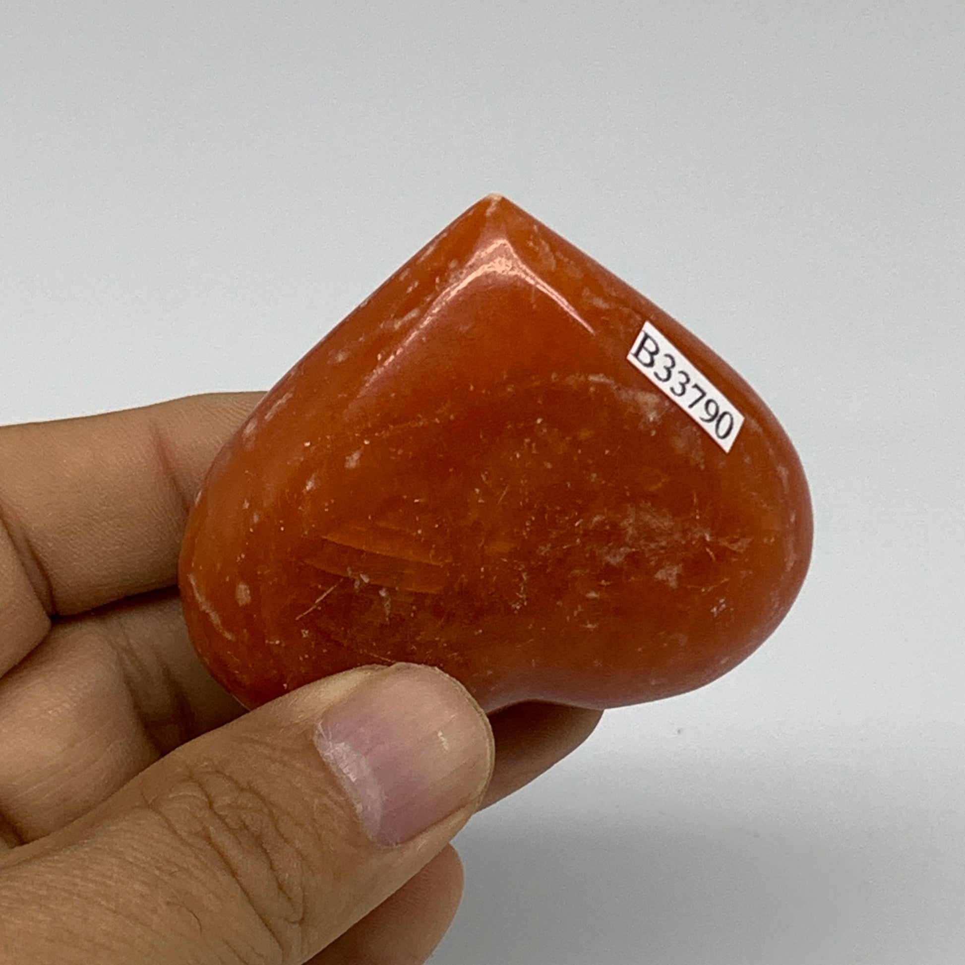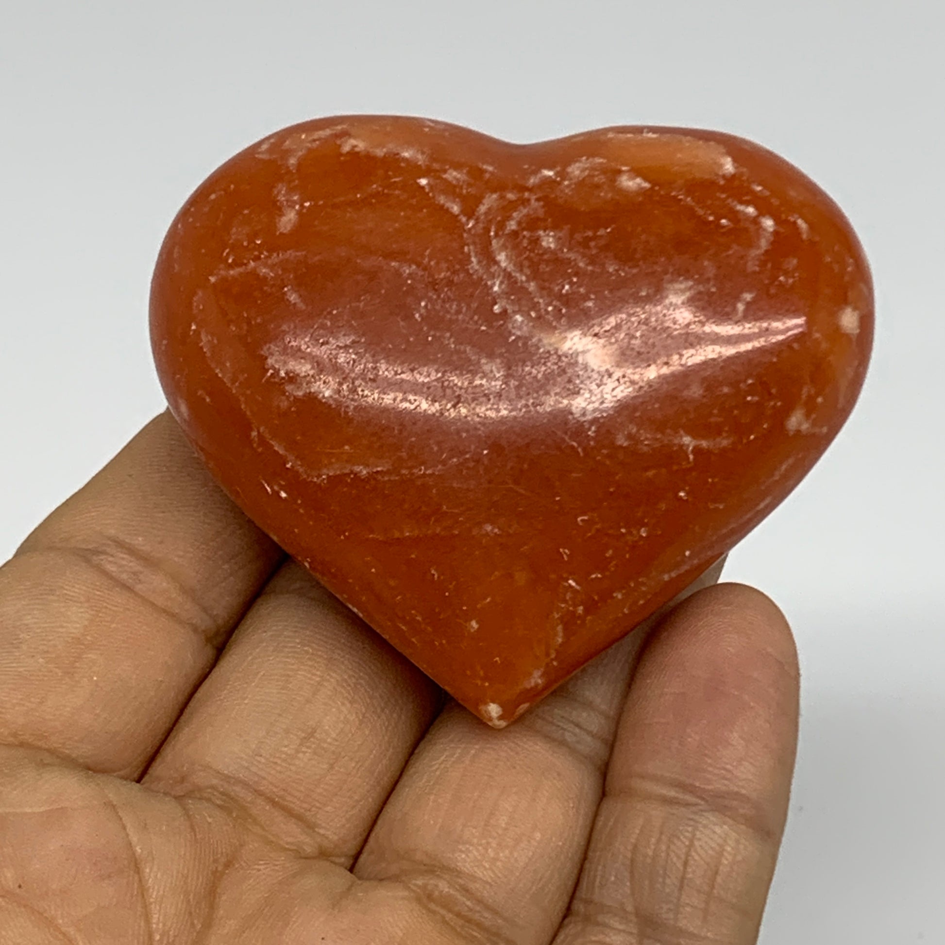 89.4g, 2"x2.4"x1" Orange Calcite Heart Gemstones from Madagascar, B33790