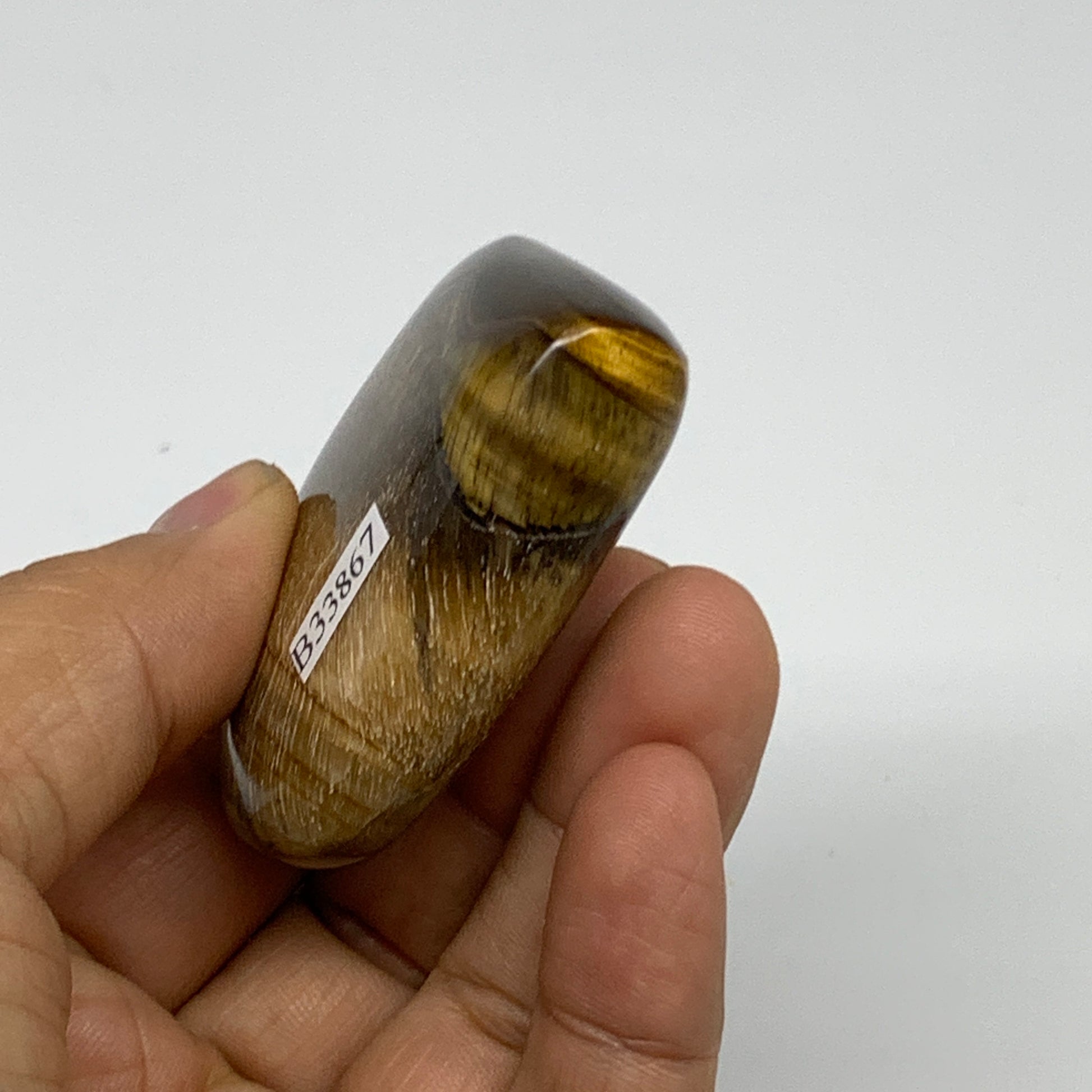 89.5g, 2.2"x2.3"x0.8", Tiger's Eye Heart Polished Healing Crystal @India, B33867