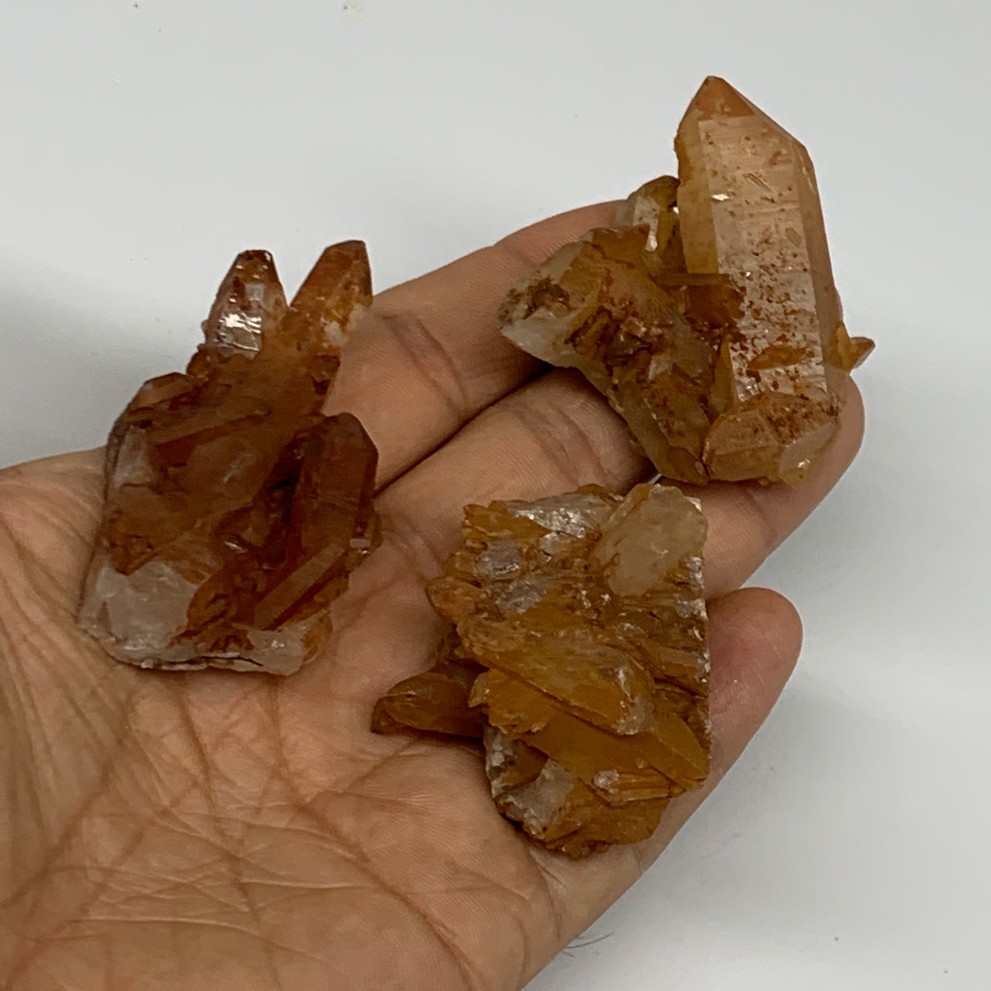 89.9g, 1.5"-2.2", 3pcs, Orange Quartz Cluster Crystal Terminated @Brazil, B28888
