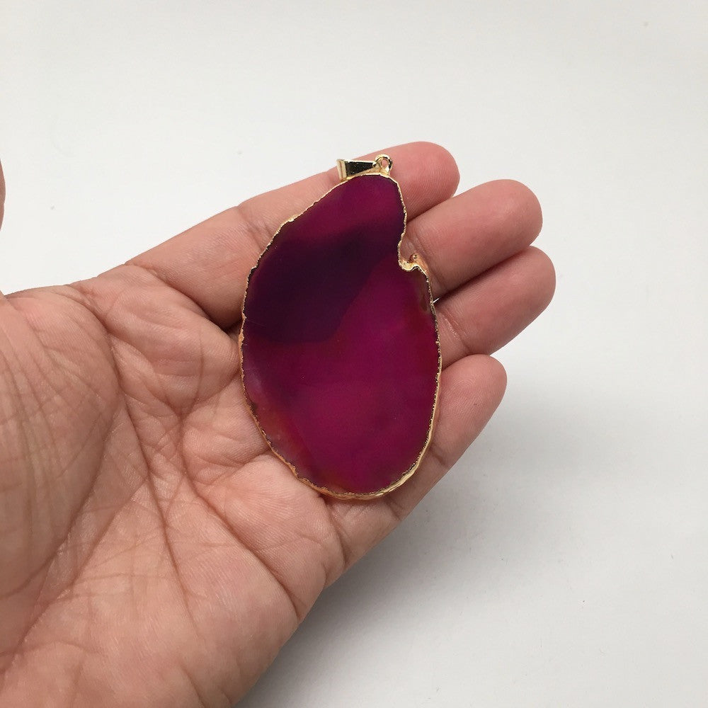 89 cts Purple Agate Druzy Slice Geode Pendant Gold Plated From Brazil, Bp956