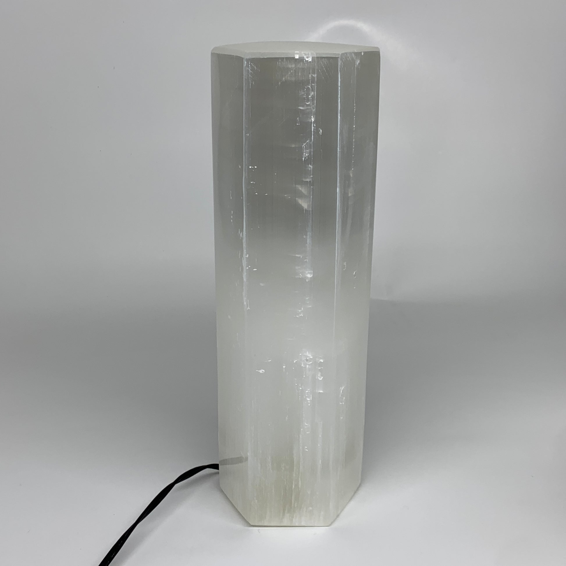 9.1 lbs. 11.4"x3.5", Hexagon Selenite (Satin Spar) Lamp, w/6ft Chord, B35828