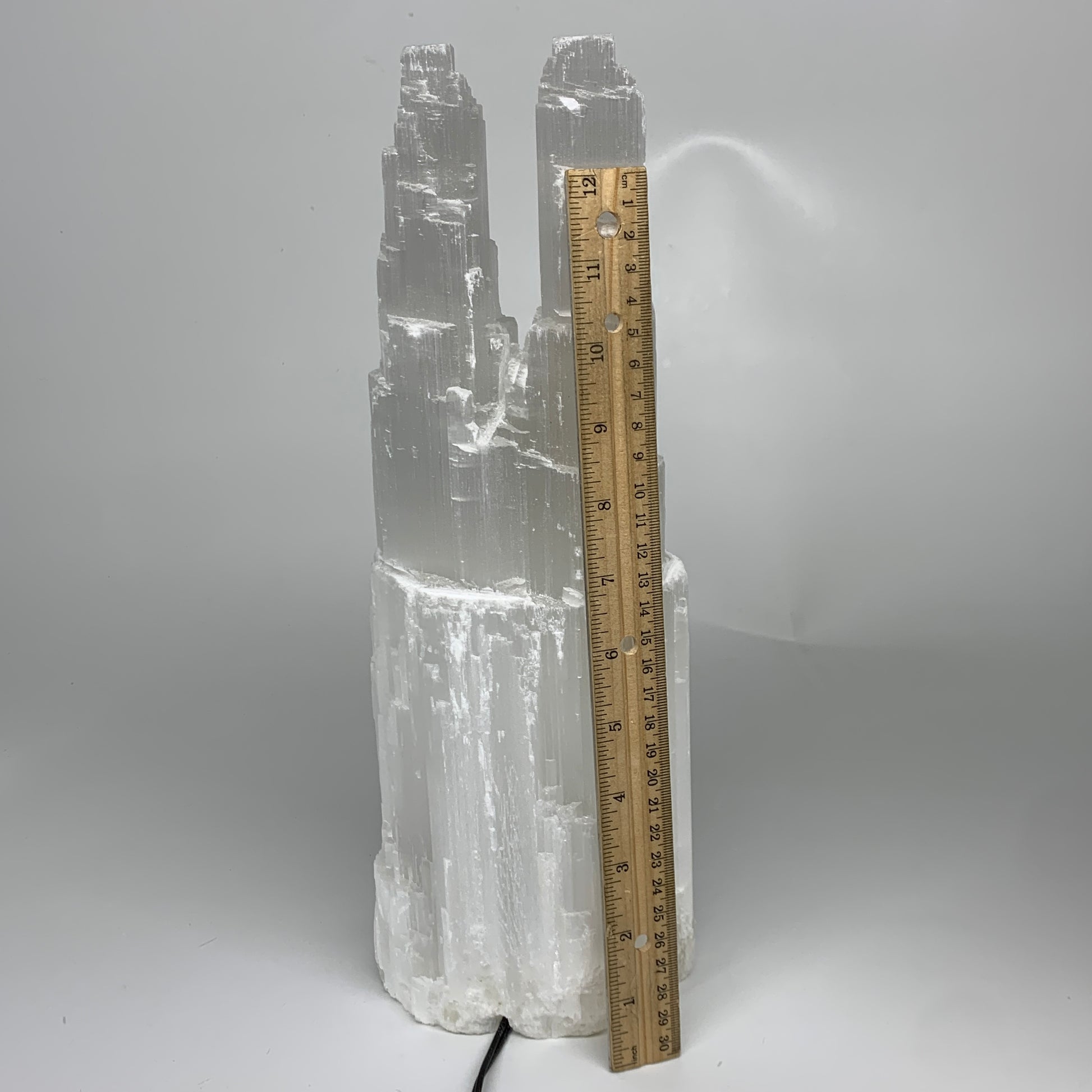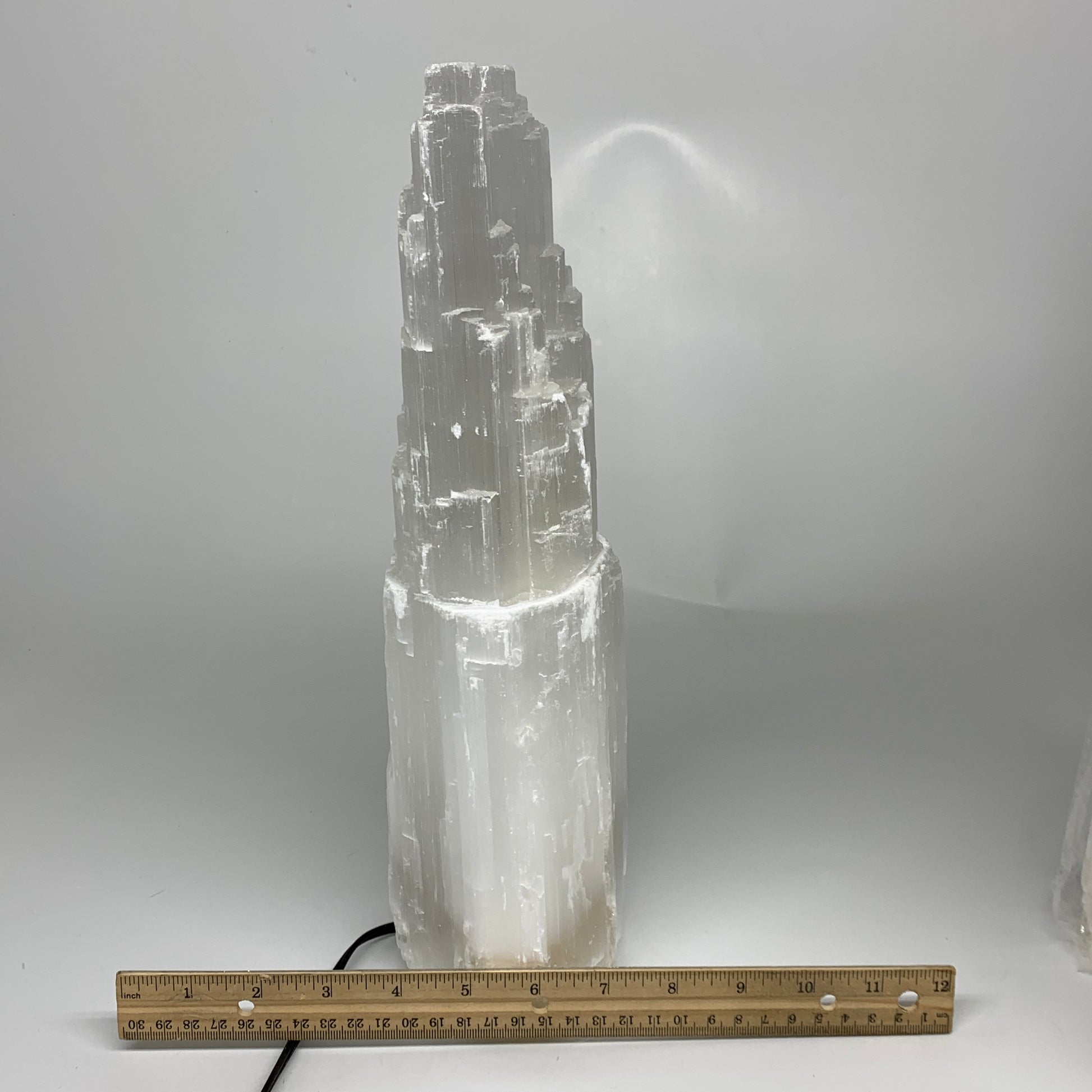 9.4 lbs, 13.8"x4.8"x3.4" Rough Selenite (Satin Spar) Lamp Tower W/Chord, B35768