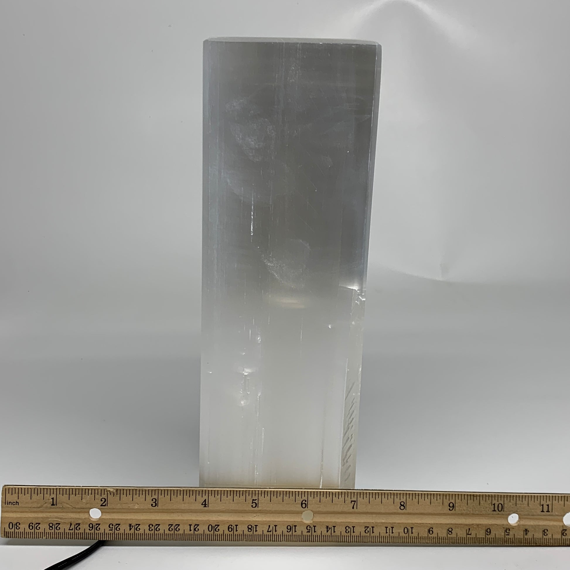 9.8"x3.2", Polished Rectangle Selenite (Satin Spar) Lamp, 6ft Chord included
