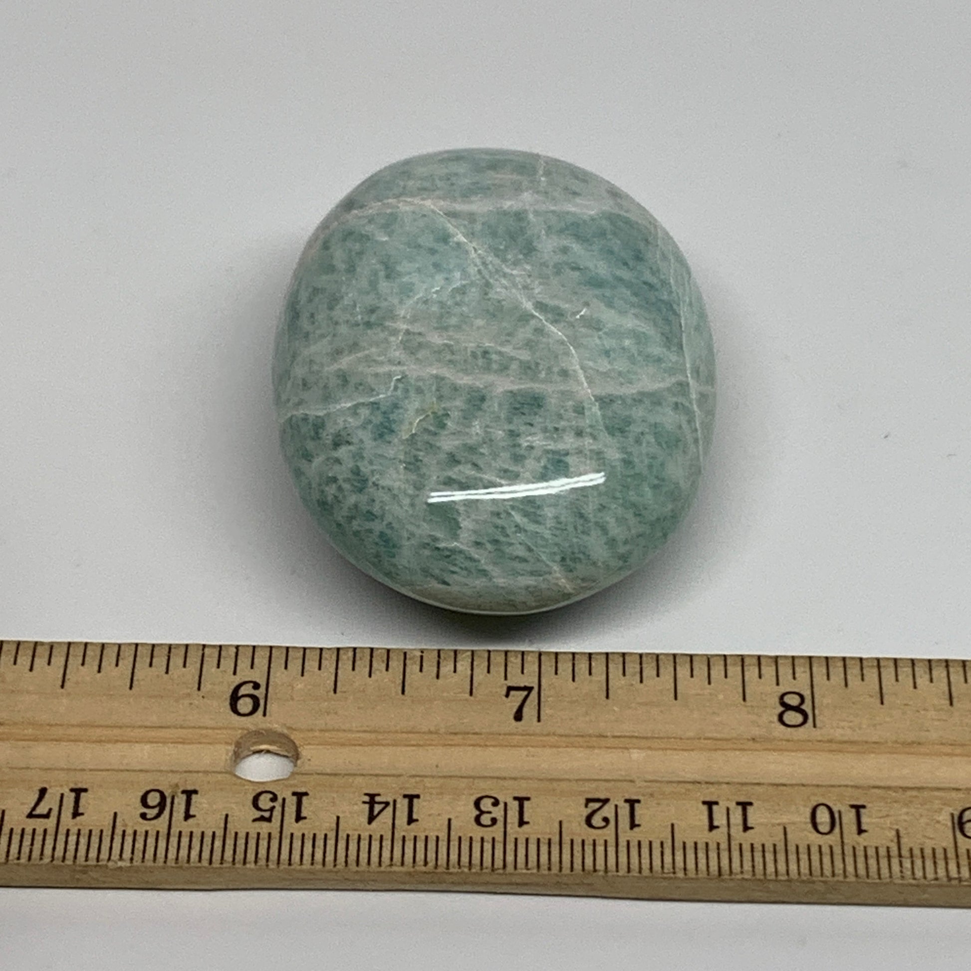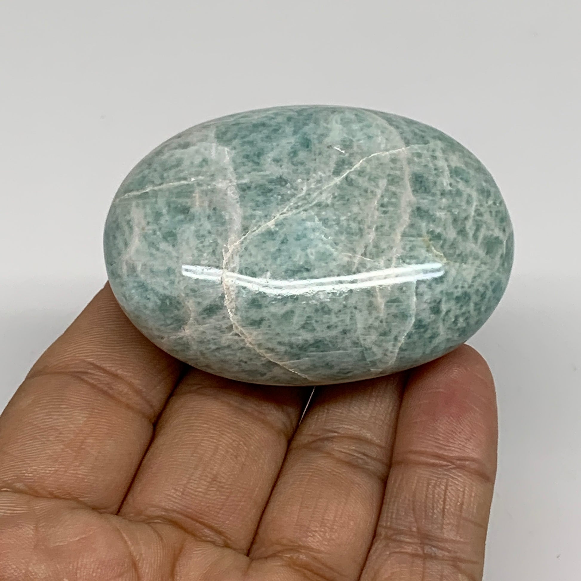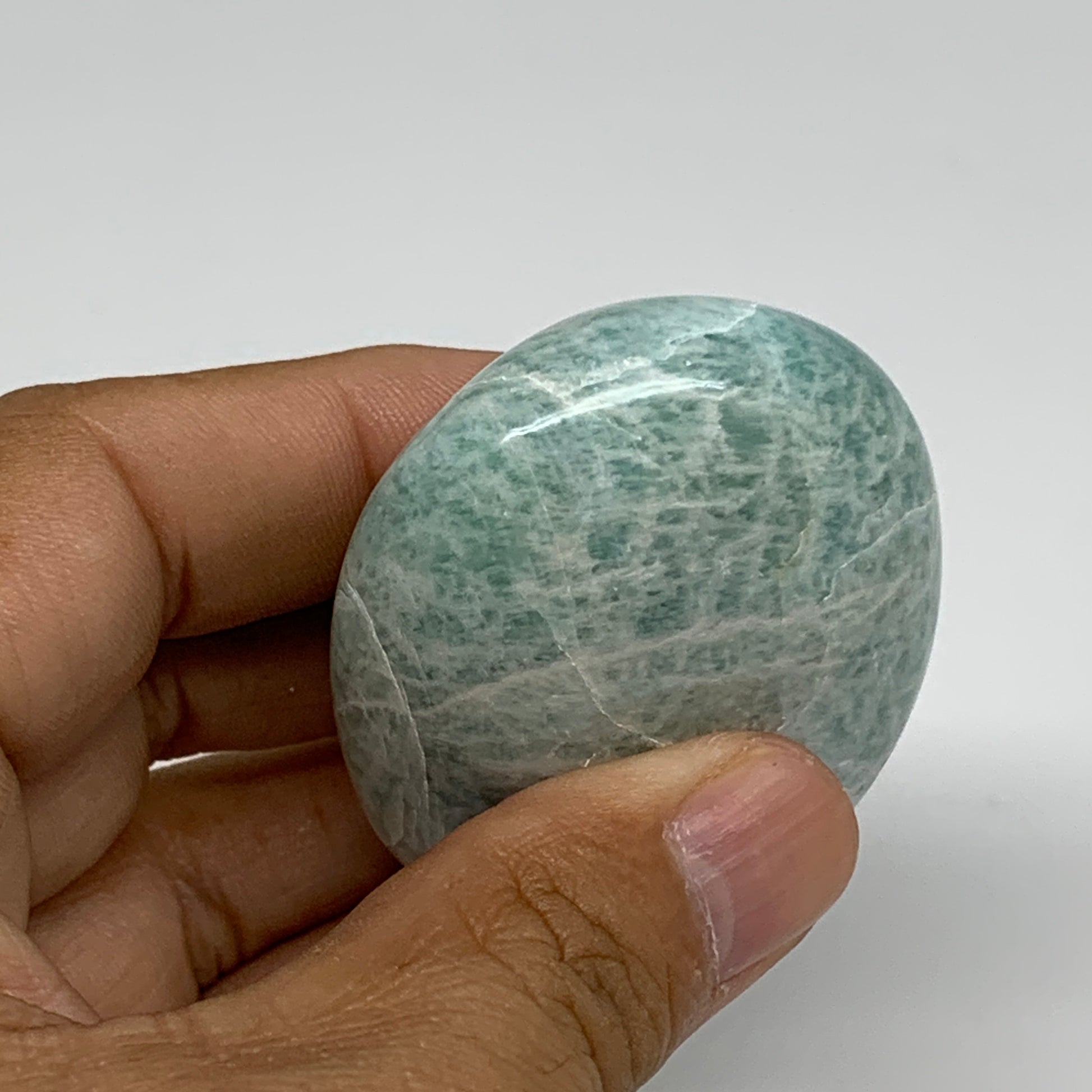 90.3g, 2.3"x1.7"x0.9", Natural Amazonite Palm-Stone Tumbled Polished, B34693