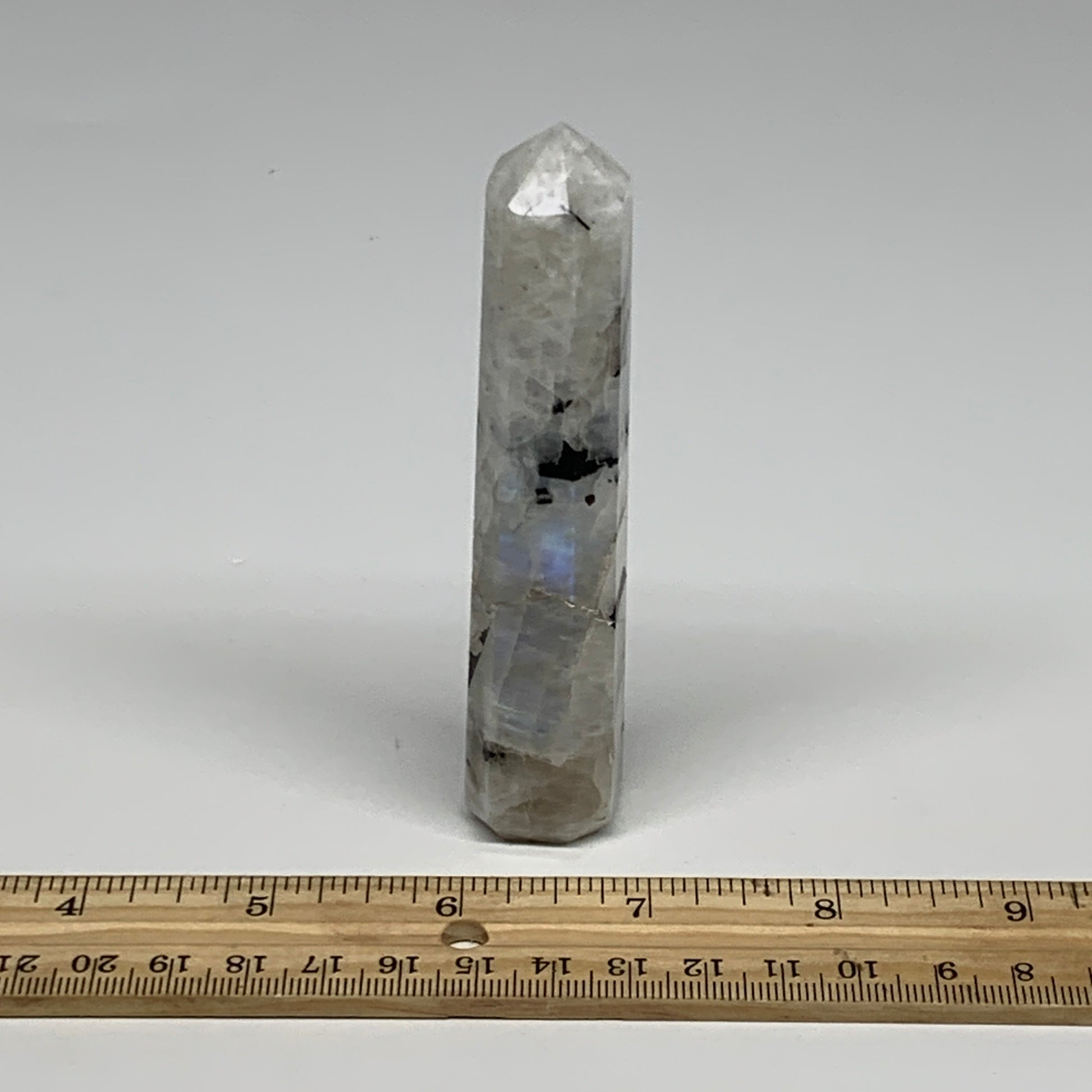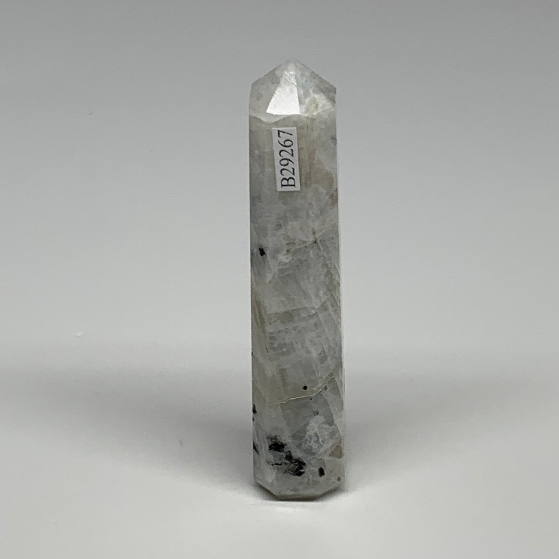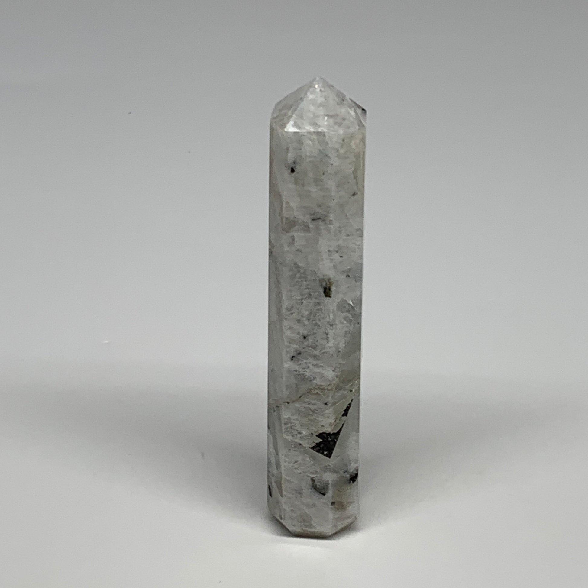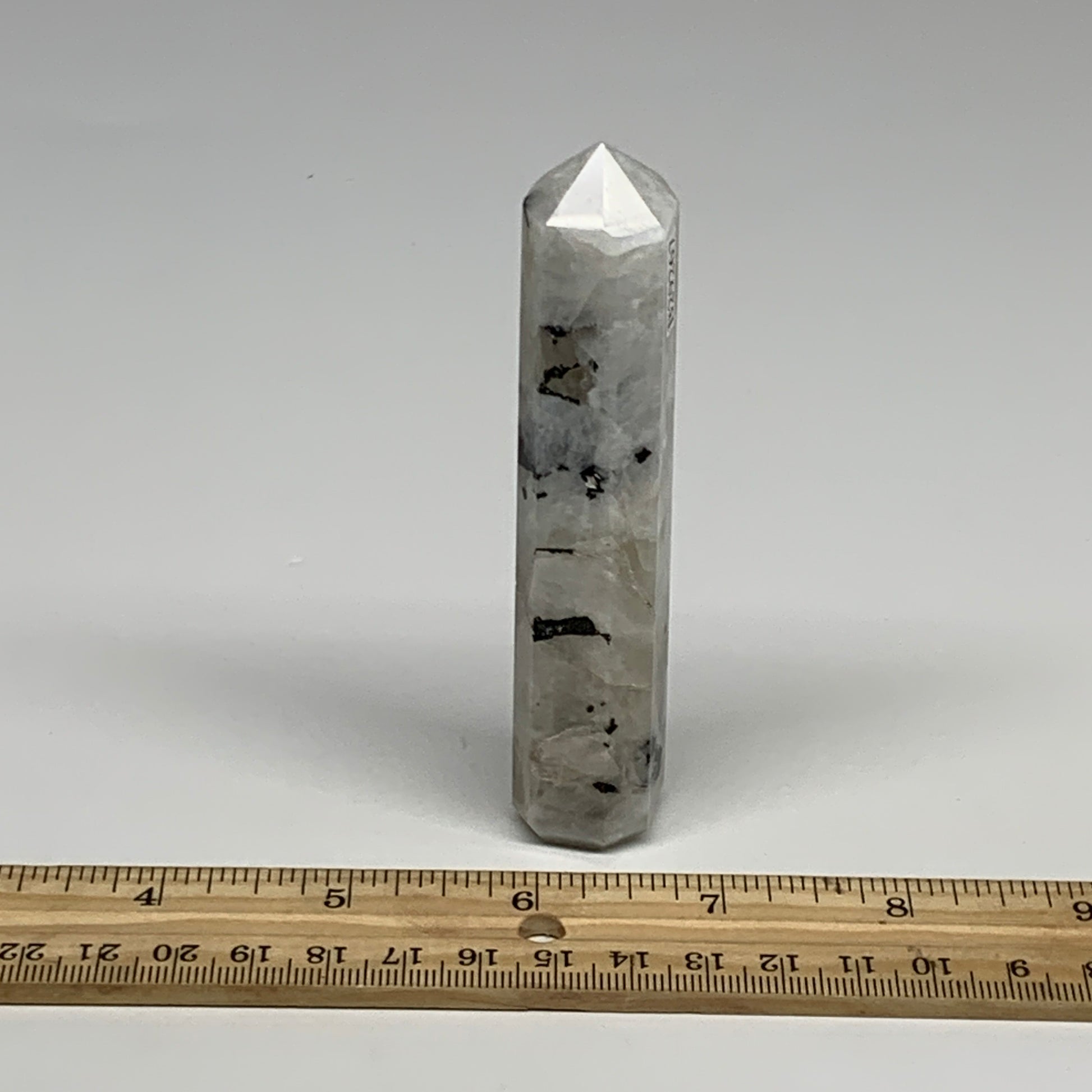 90.3g, 4.2"x0.8", Rainbow Moonstone Tower Obelisk Point Crystal @India, B29267