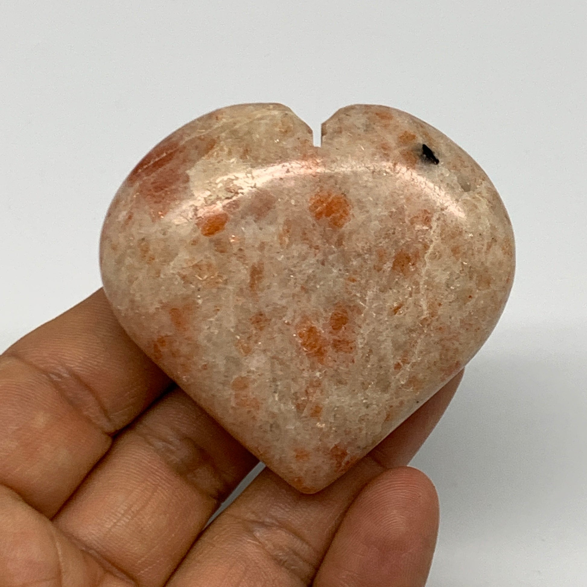 83.7g,2.2"x2.5"x0.6", Sunstone Heart Polished Healing Crystal @India, B28016