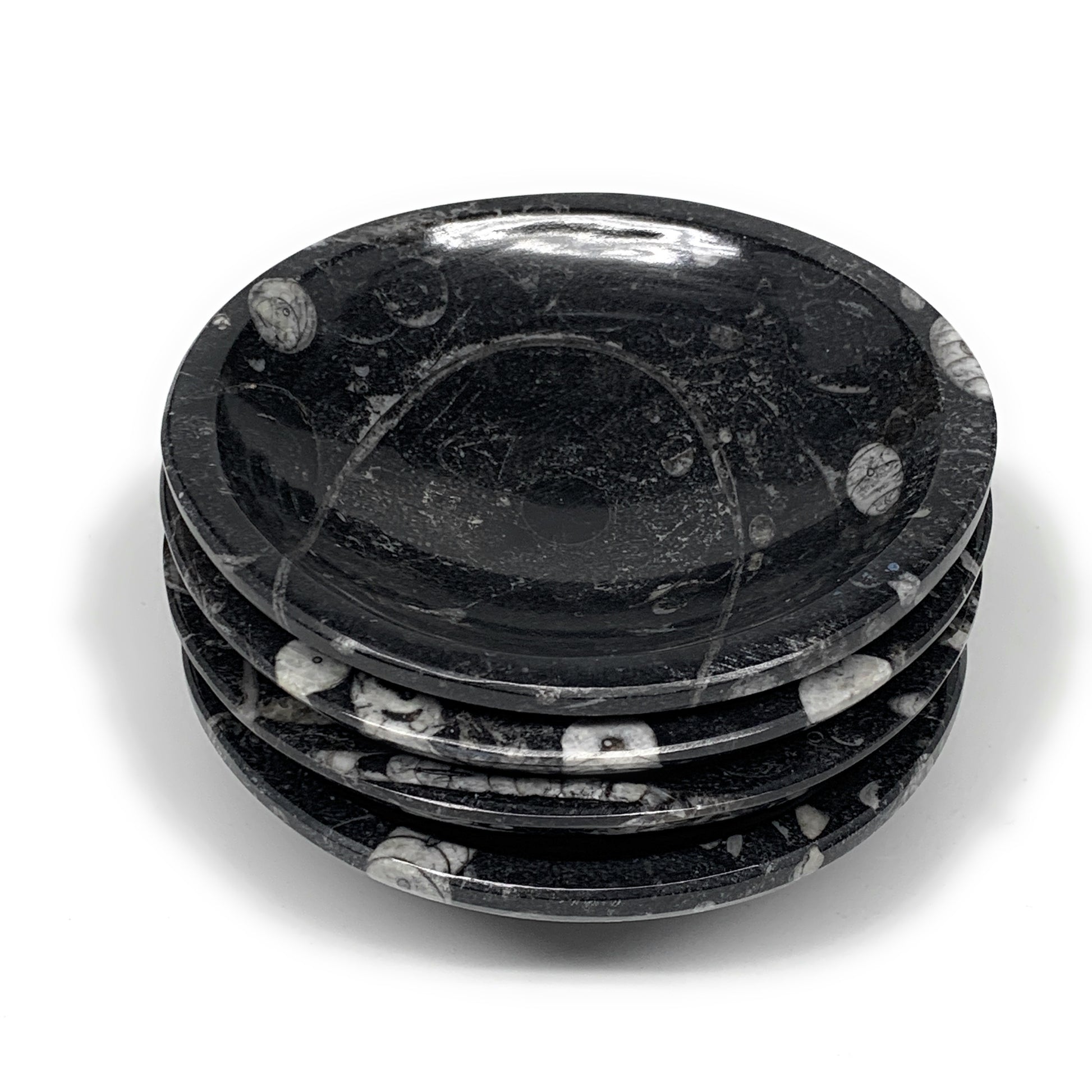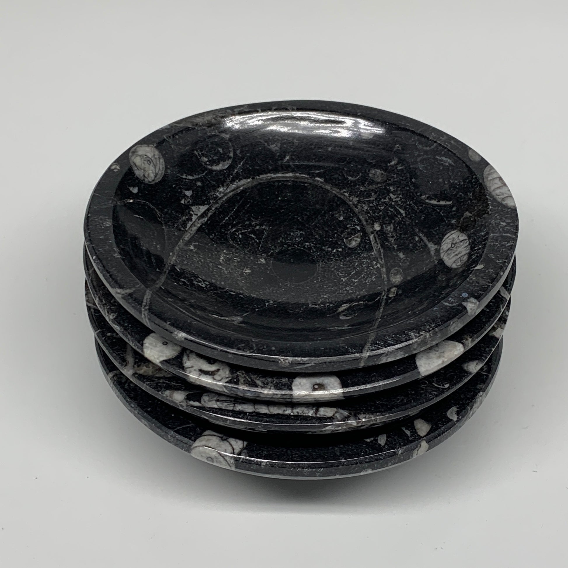 902g, 4pcs, 4.3" Small Fossils Ammonite Orthoceras Bowl Round Shape, B8870