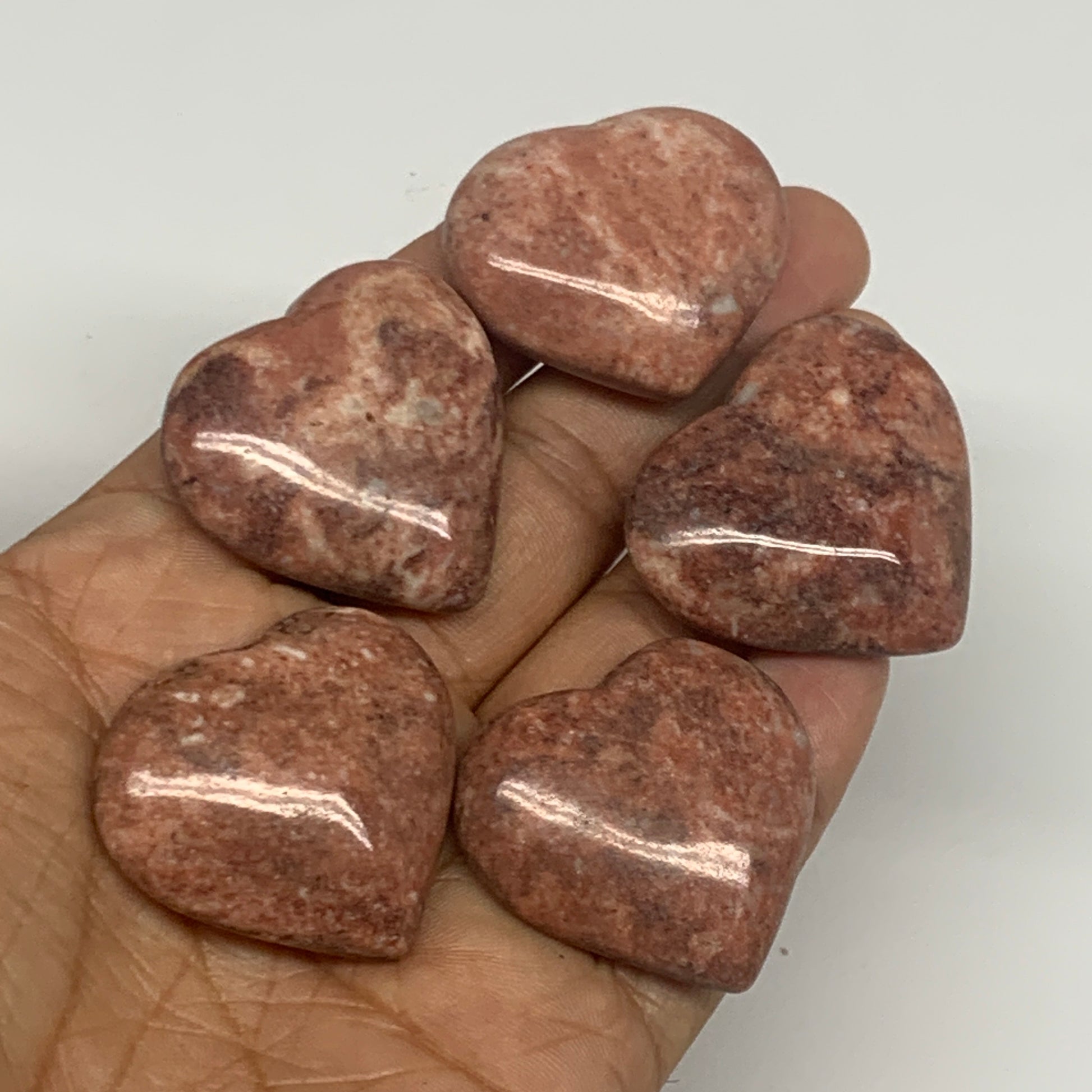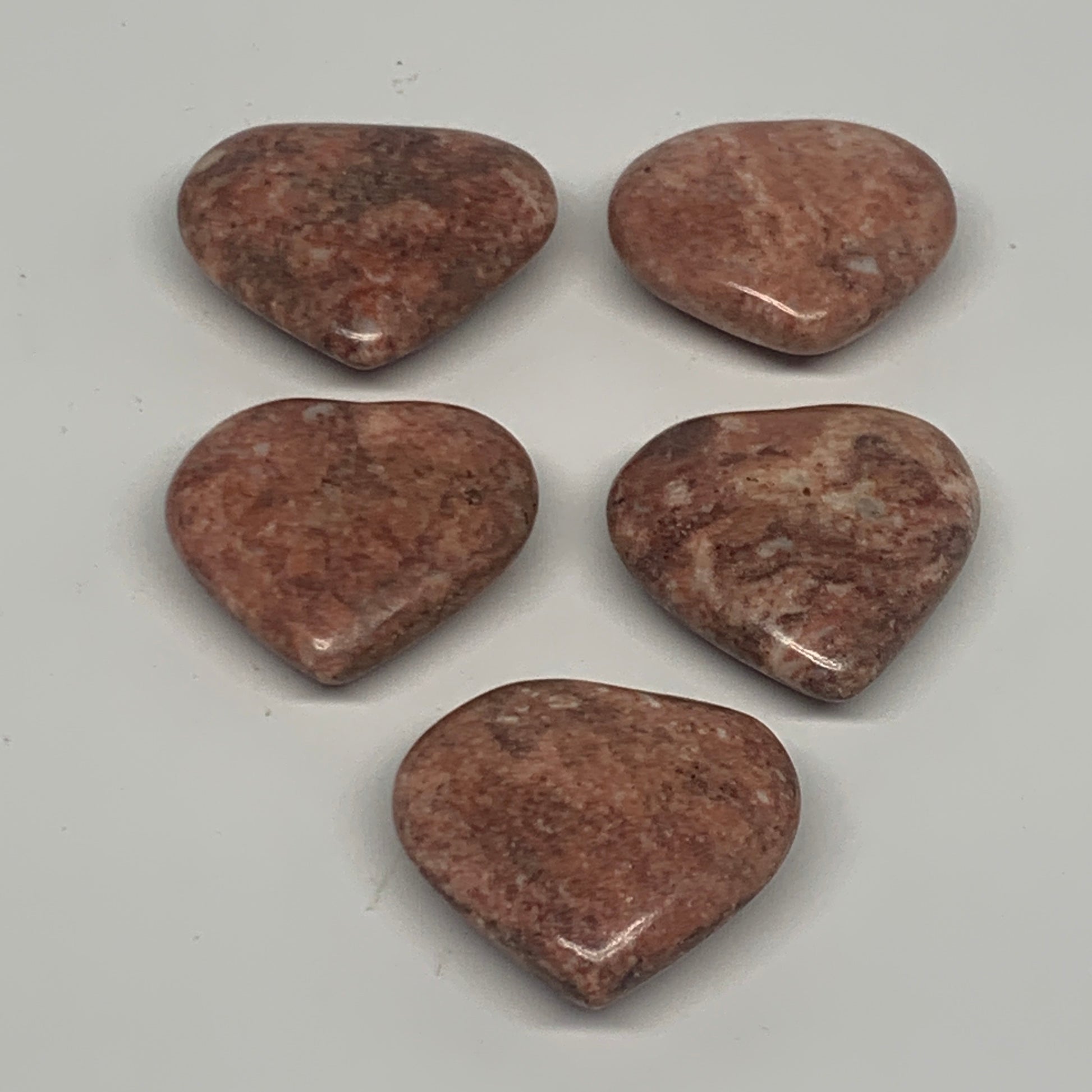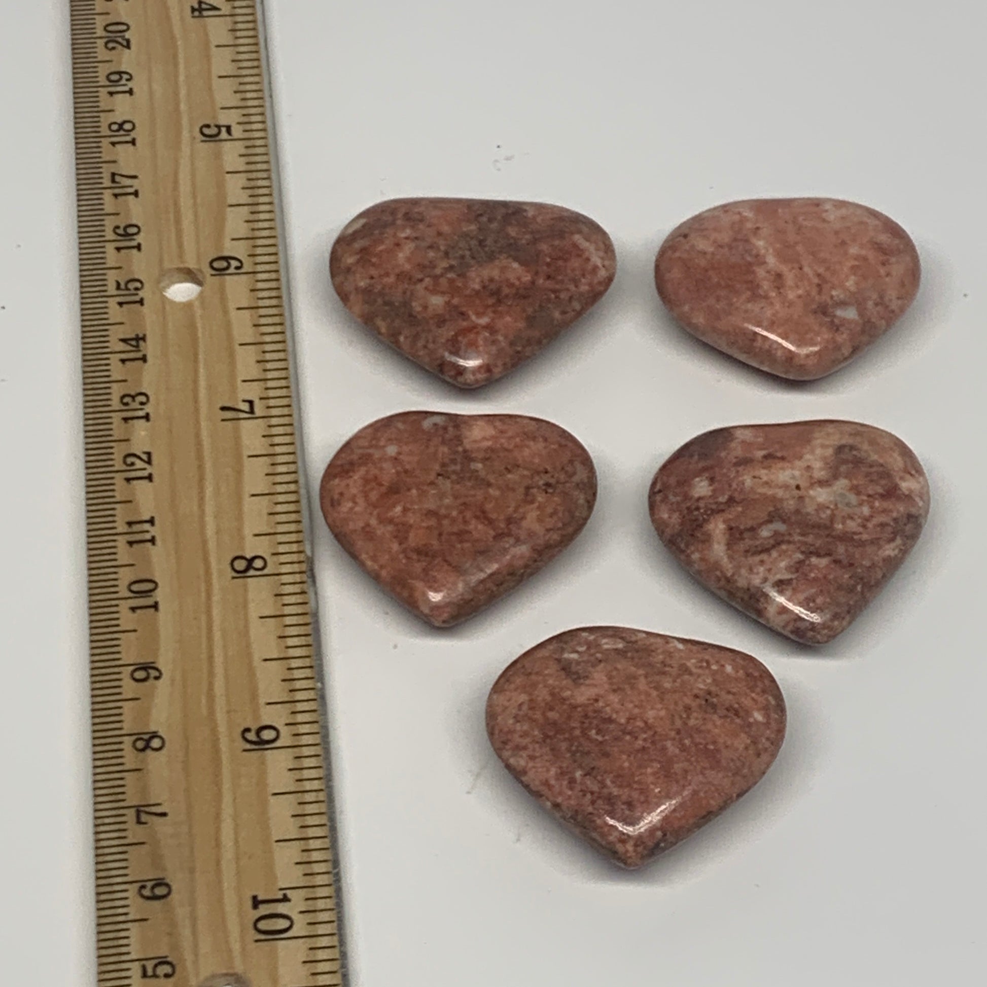 91.8g,1.2"- 1.3", 5pcs, Red Jasper Heart Polished Healing Home Decor, B26949