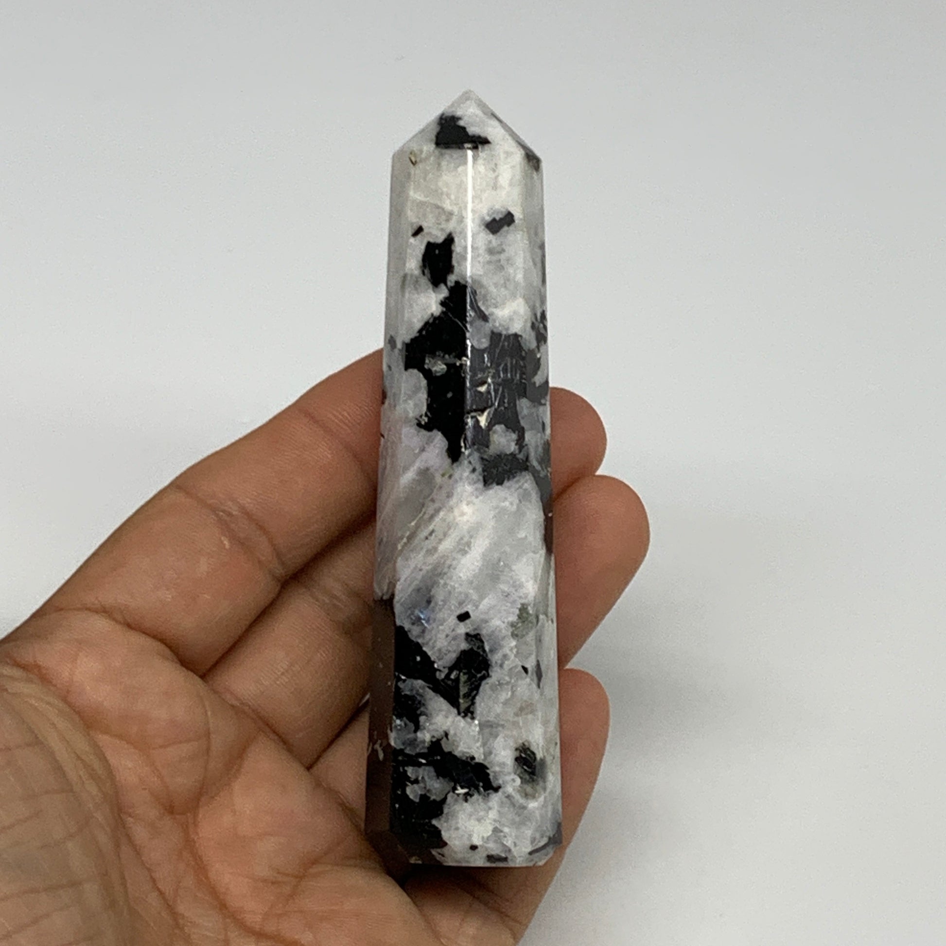 91.8g, 3.9"x0.9", Rainbow Moonstone Tower Obelisk Point Crystal @India, B29262