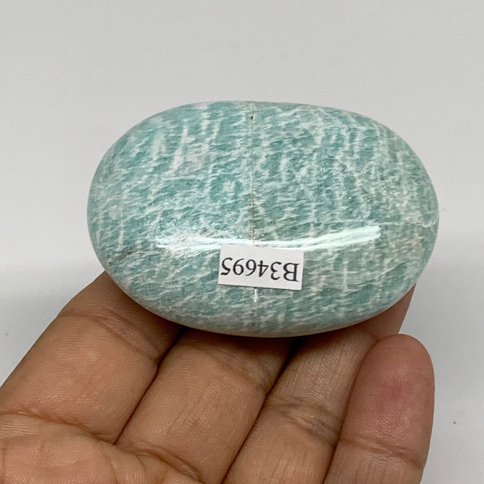 91g, 2.4"x1.7"x0.9", Natural Amazonite Palm-Stone Tumbled Polished, B34695