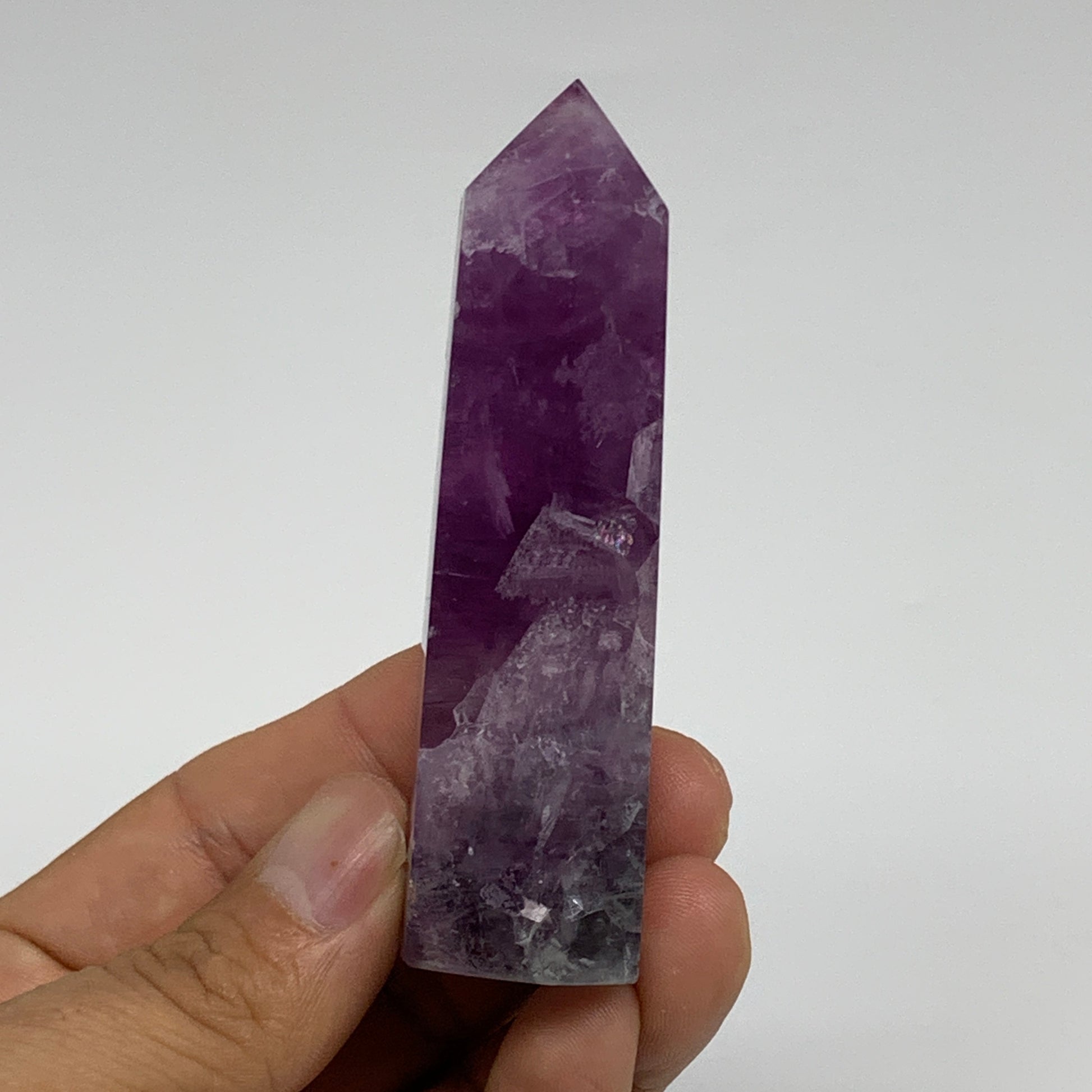 92.1g, 3.3"x0.8", Natural Watermelon Fluorite Tower Obelisk Point Crystal, B31381