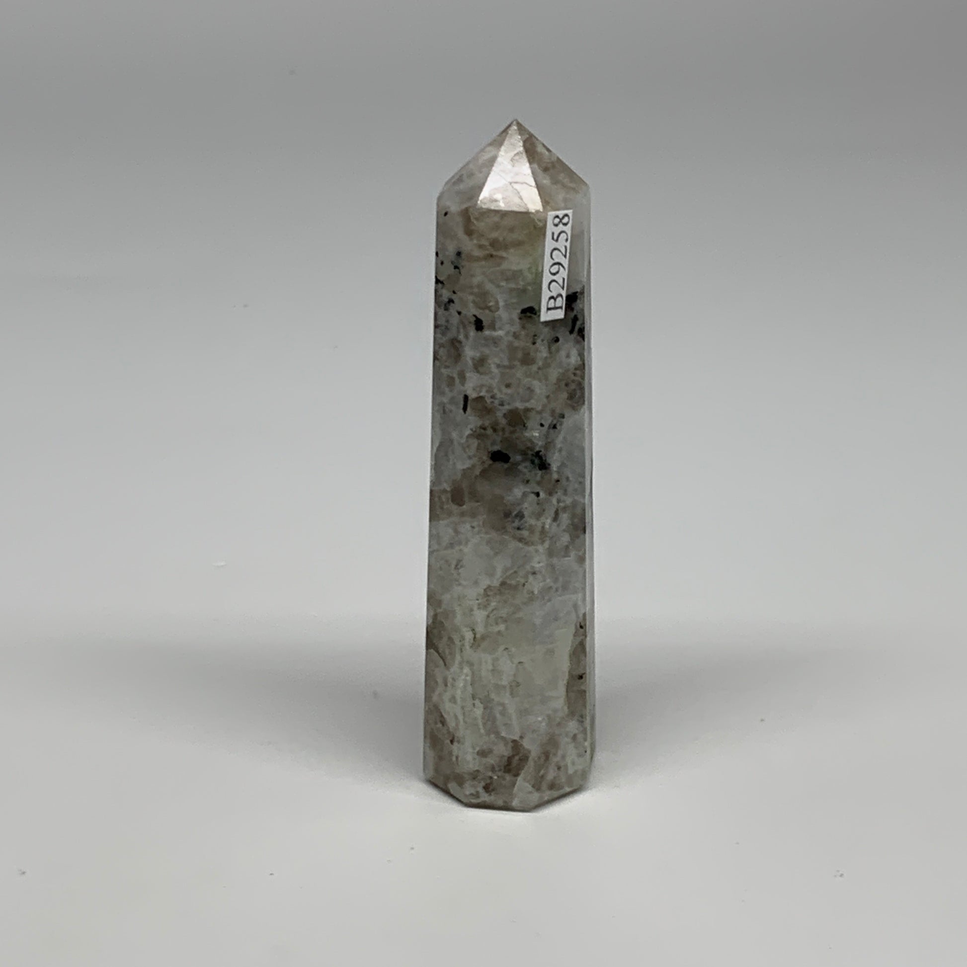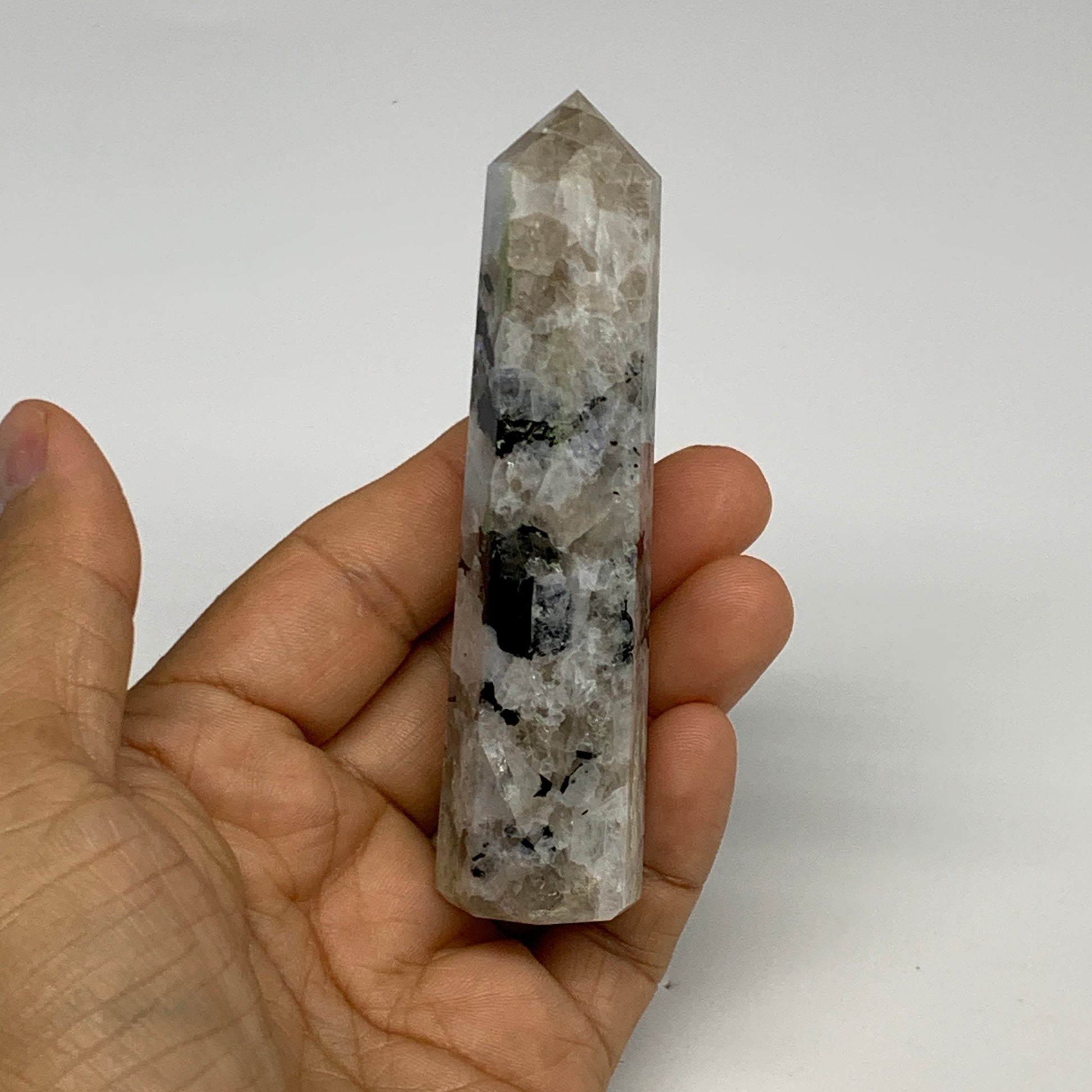 92.5g, 3.8"x1", Rainbow Moonstone Tower Obelisk Point Crystal @India, B29258