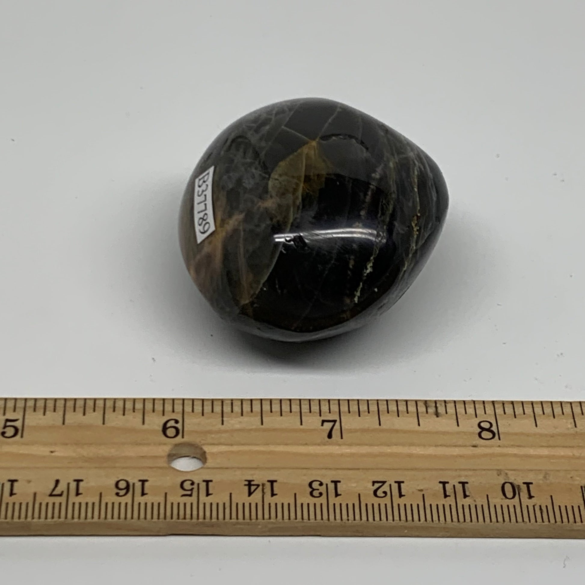 92.7g, 2"x1.8"x1.3", Black Moonstone Crystal Palm-Stone Polished, B37789