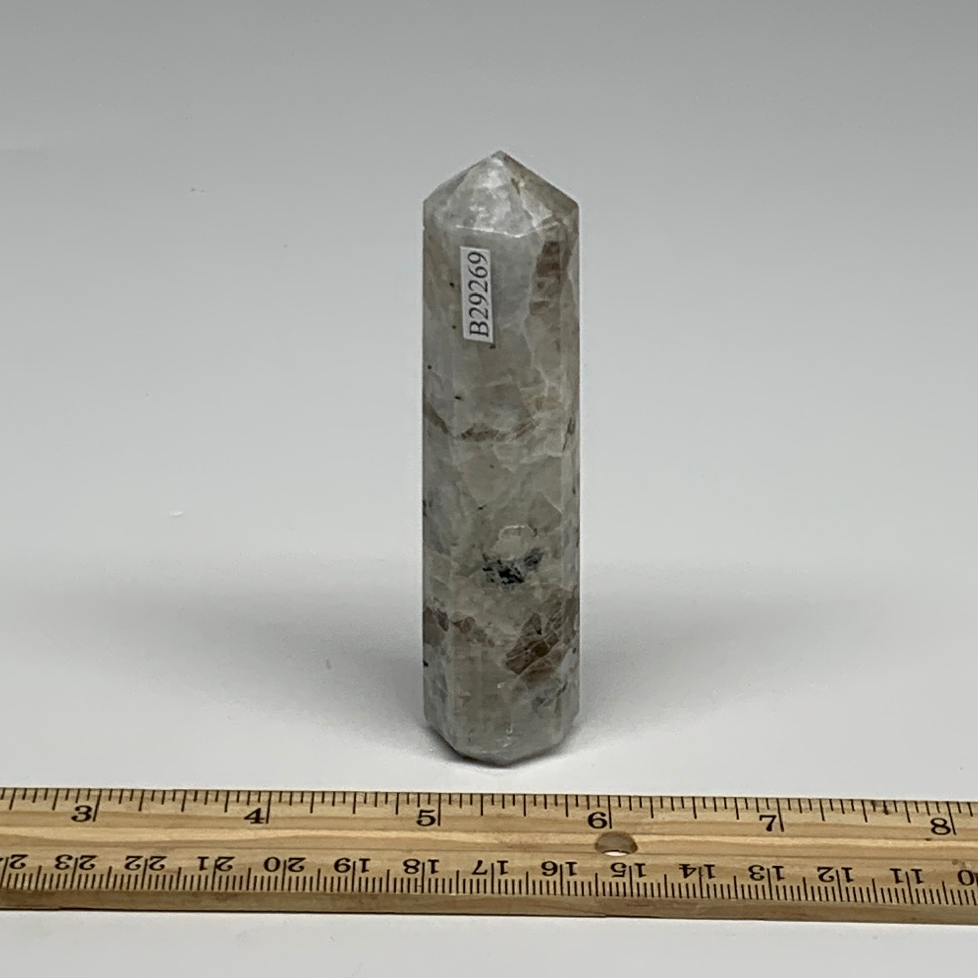 93.3g, 3.9"x0.8", Rainbow Moonstone Tower Obelisk Point Crystal @India, B29269