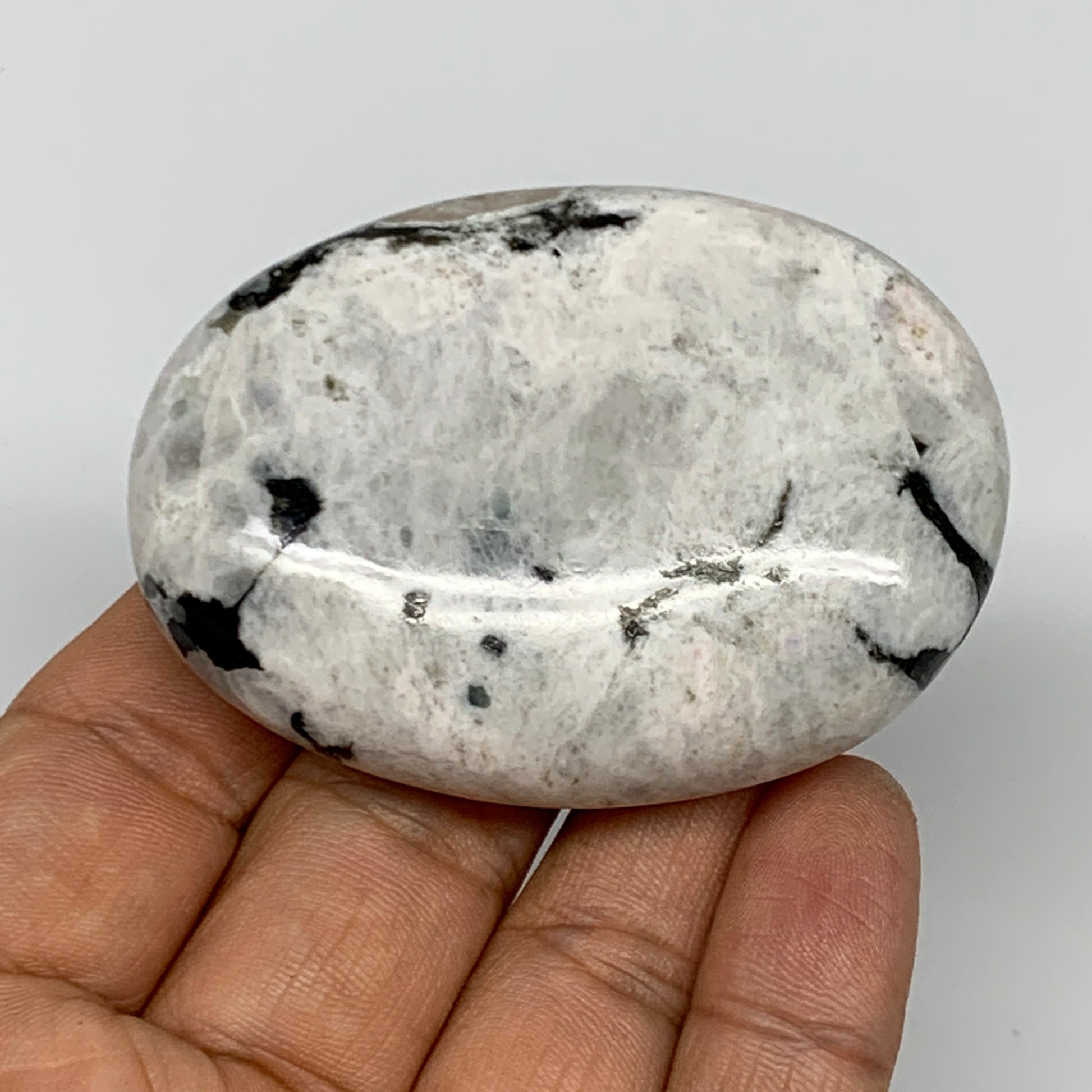 93.8g,2.5"x1.8"x0.8", Rainbow Moonstone Palm-Stone Polished from India, B21229