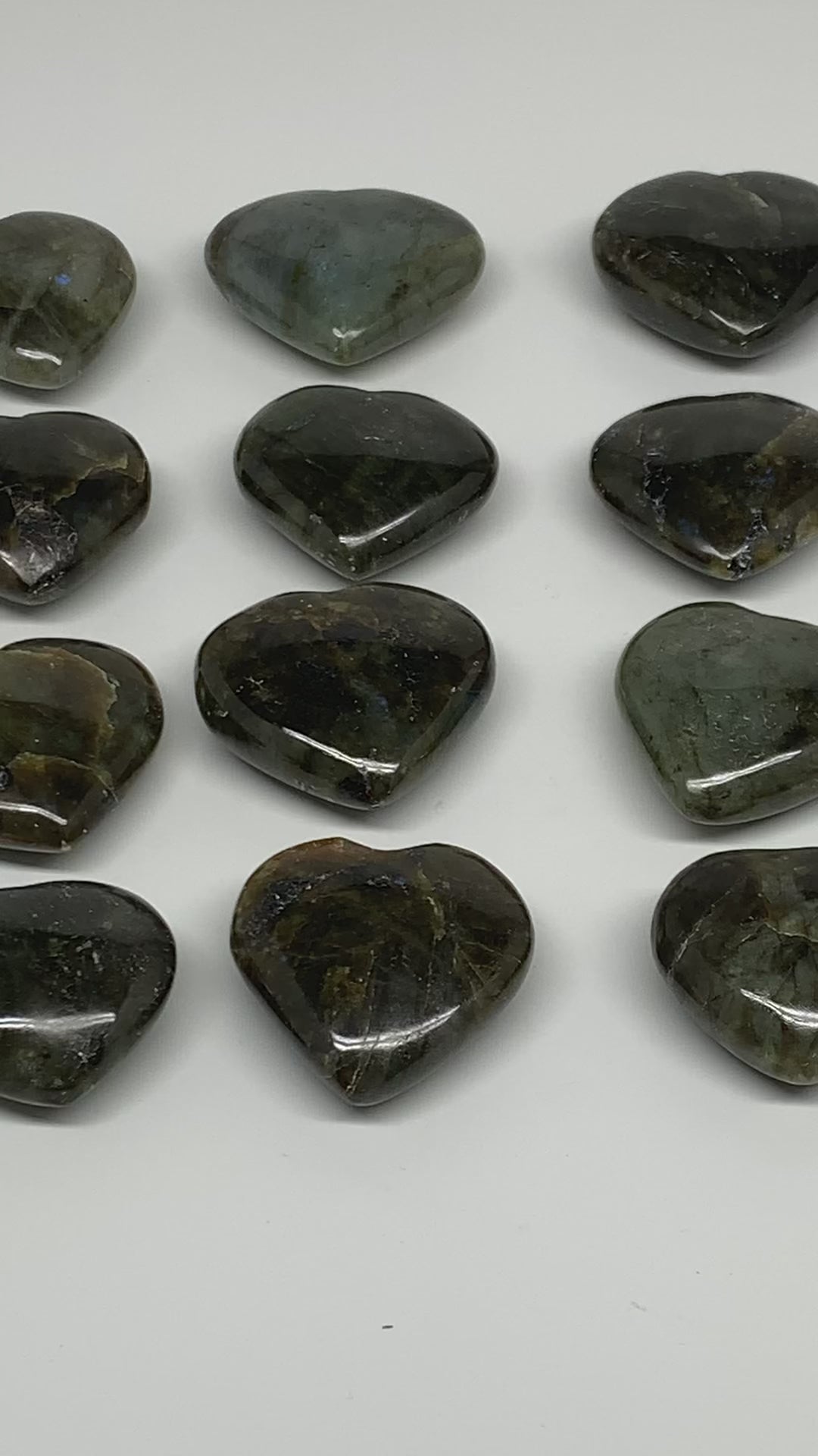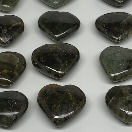 930g (2.05 lbs) ,16 pcs, 1.5"- 1.9", Labradorite Hearts Polished Crystals, B34929