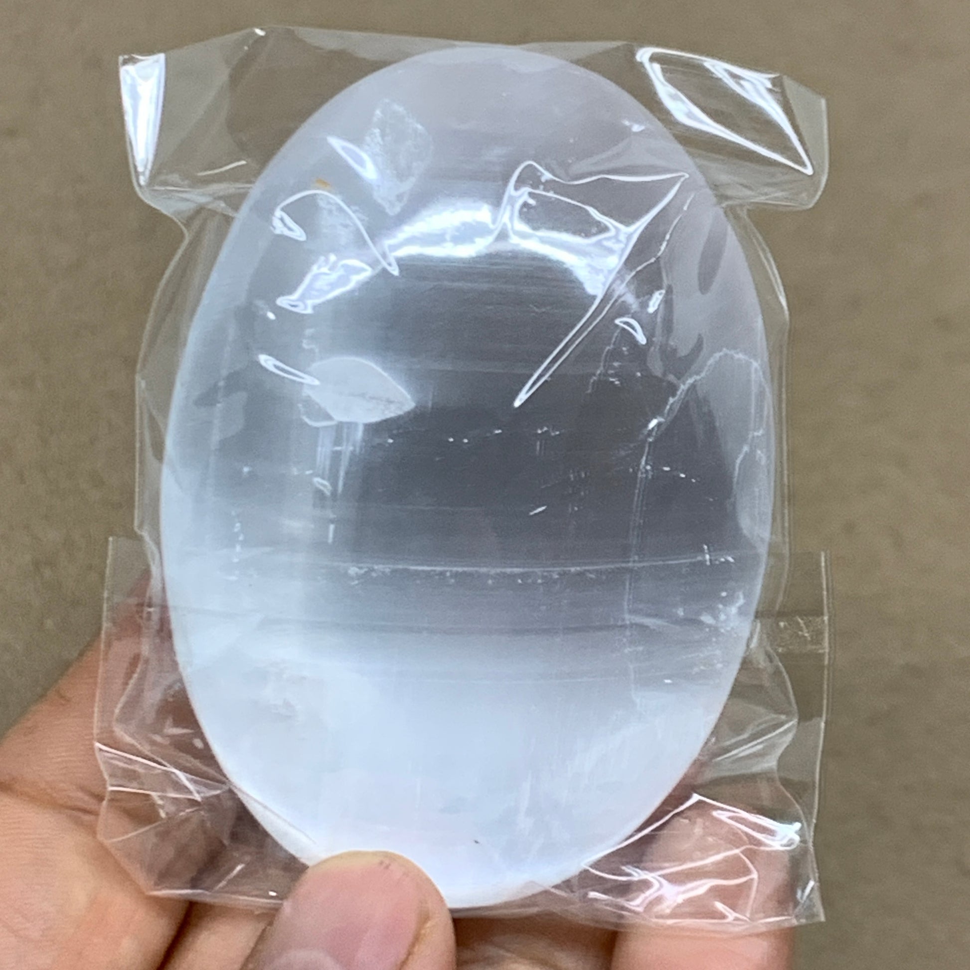 93g, 2.7"x1.9"x0.9", White Selenite Palmstone Crystal Pillow Reiki, B36305