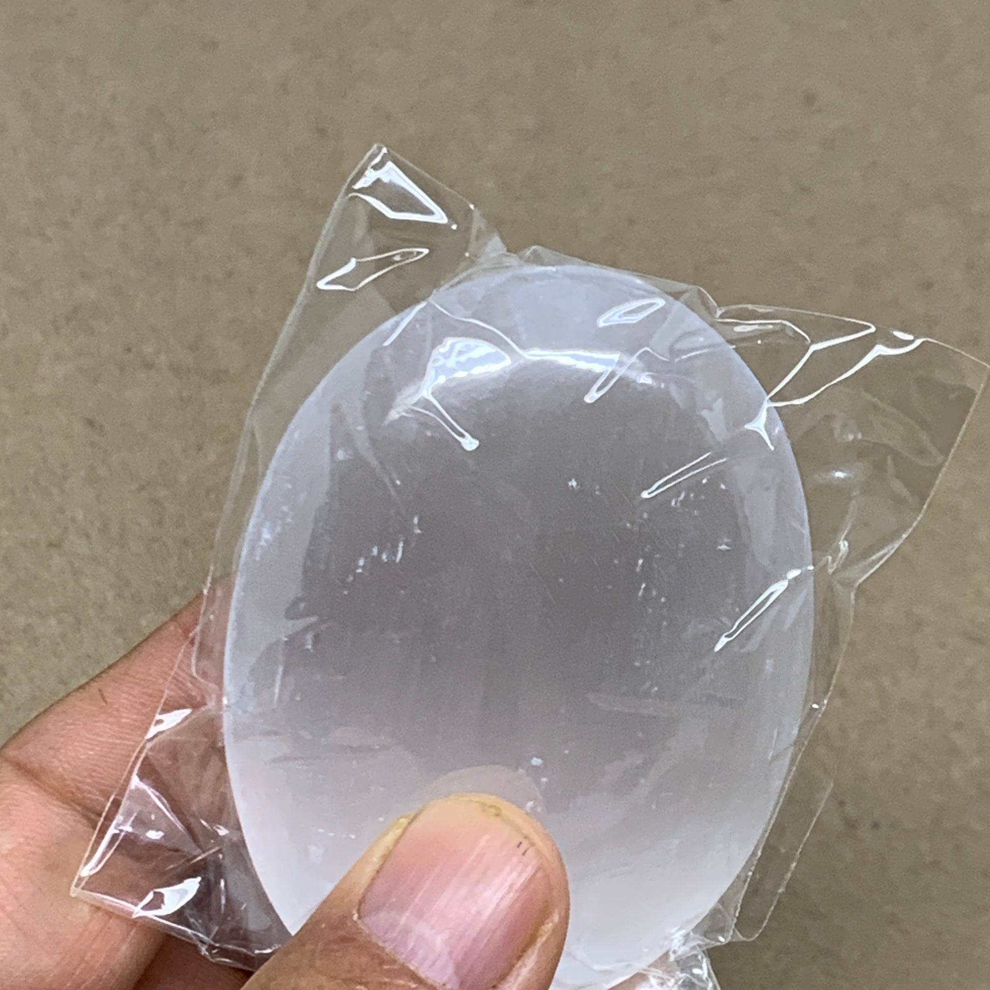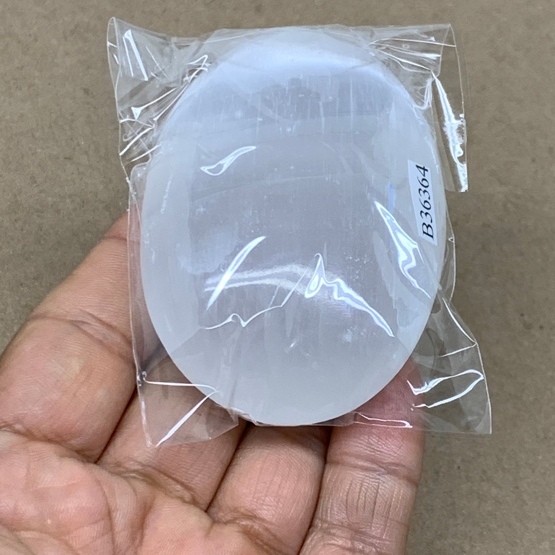93g, 2.7"x1.9"x1", White Selenite Palmstone Crystal Pillow Reiki, B36364