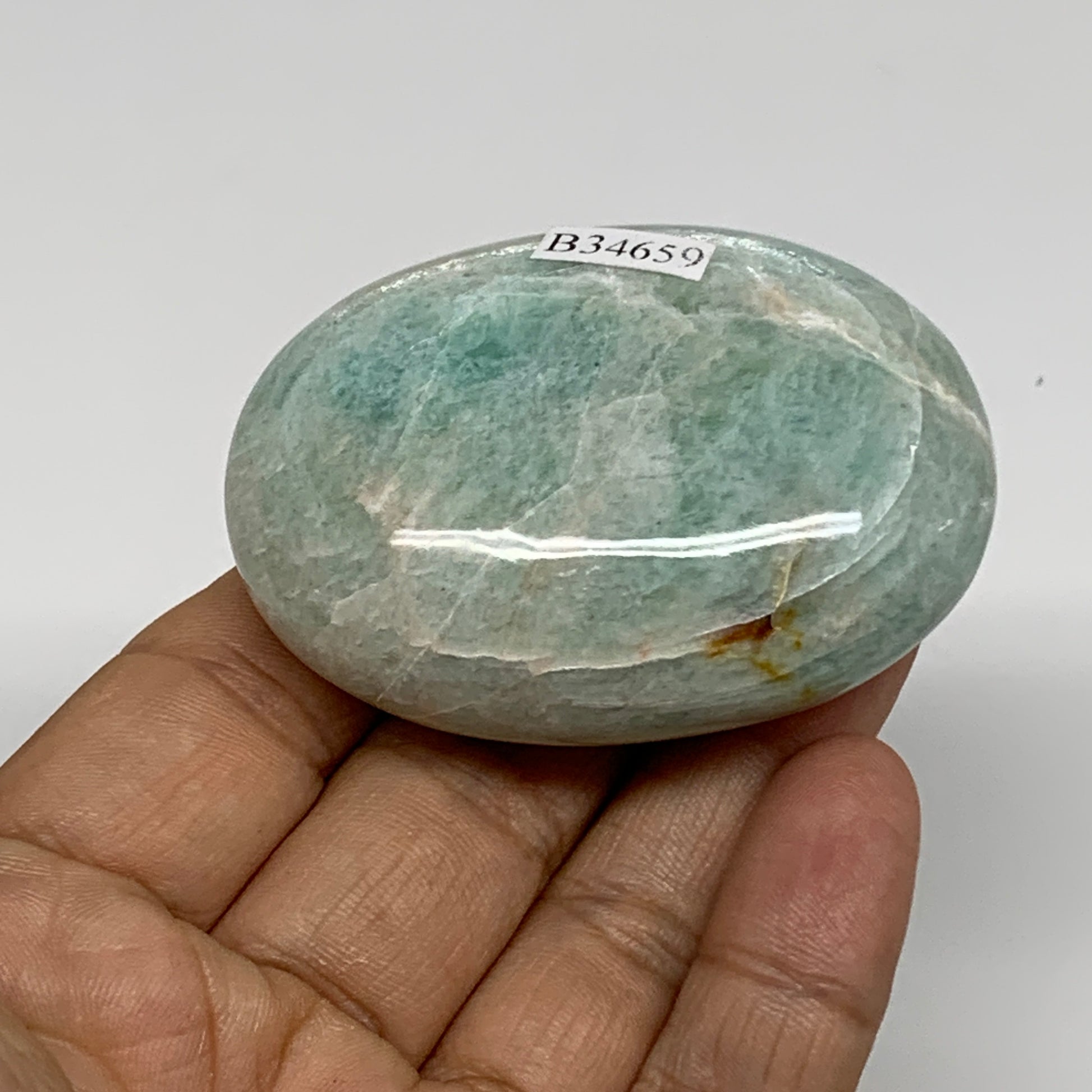 94.1g, 2.4"x"x1.8"x0.9", Natural Amazonite Palm-Stone Tumbled Polished, B34659