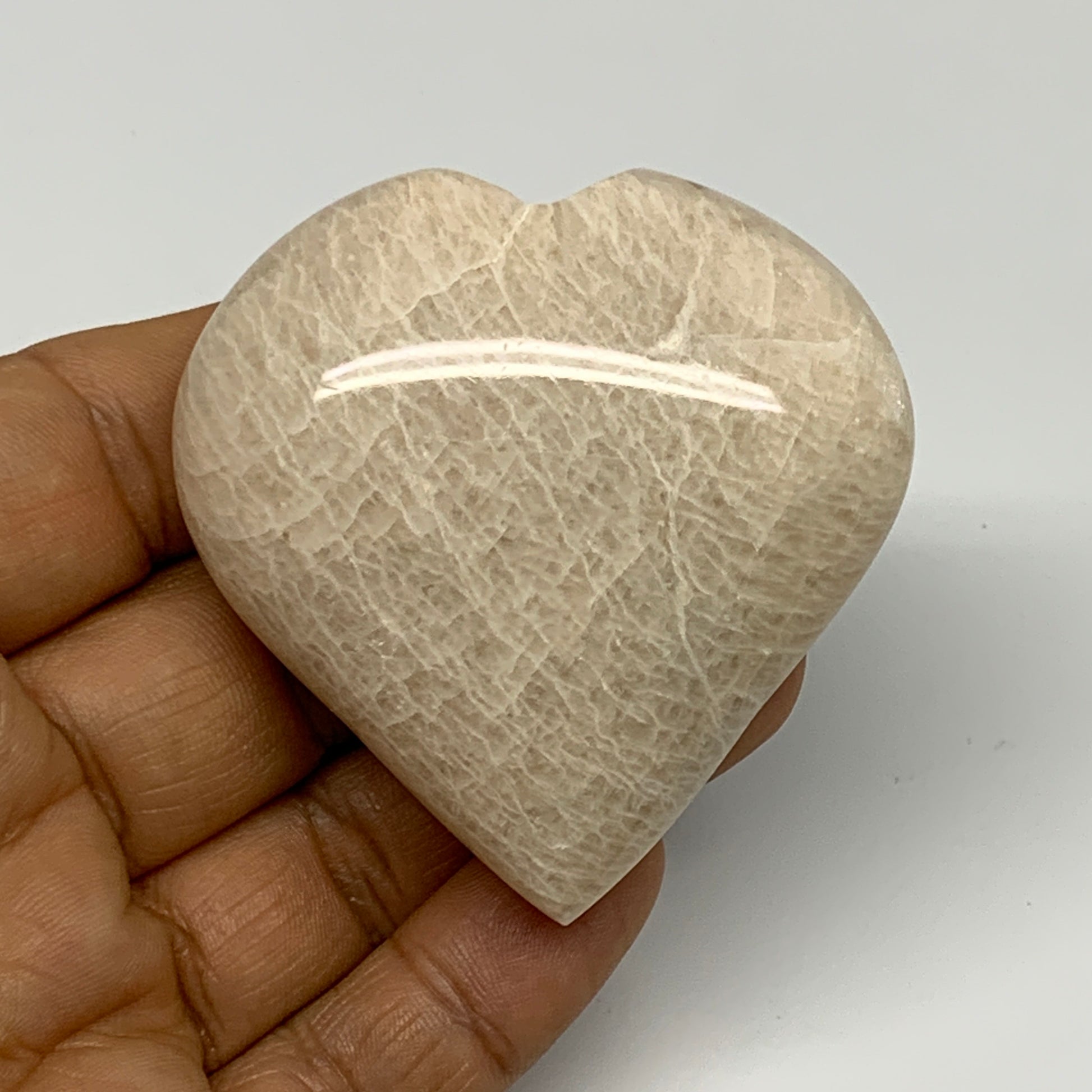 94.4g, 2.3"x2.2"x1", Peach Moonstone Heart Crystal Polished Gemstone, B28118