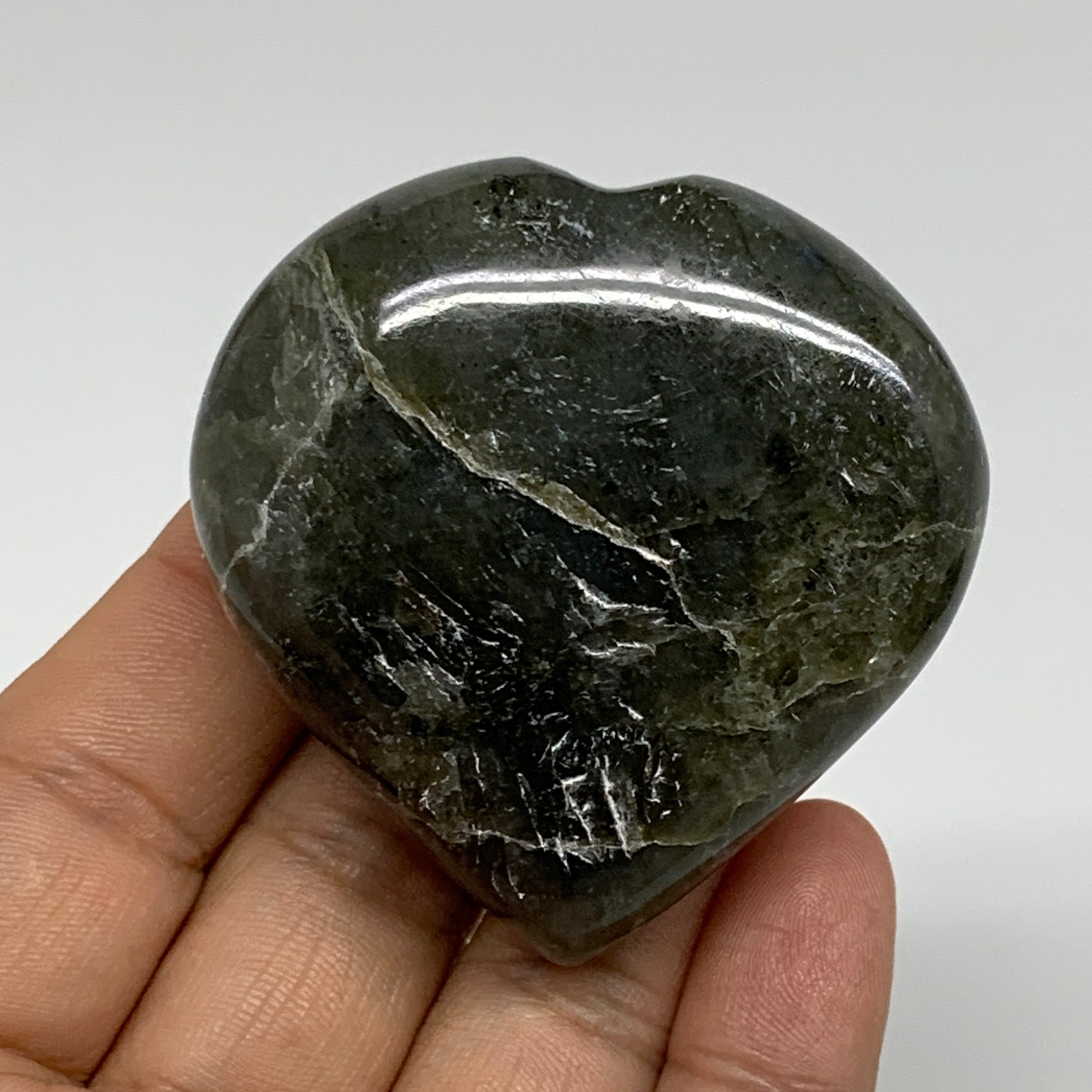 94.6g, 2.1"x2.2"x0.9", Natural Labradorite Heart Polished Crystal, B35418