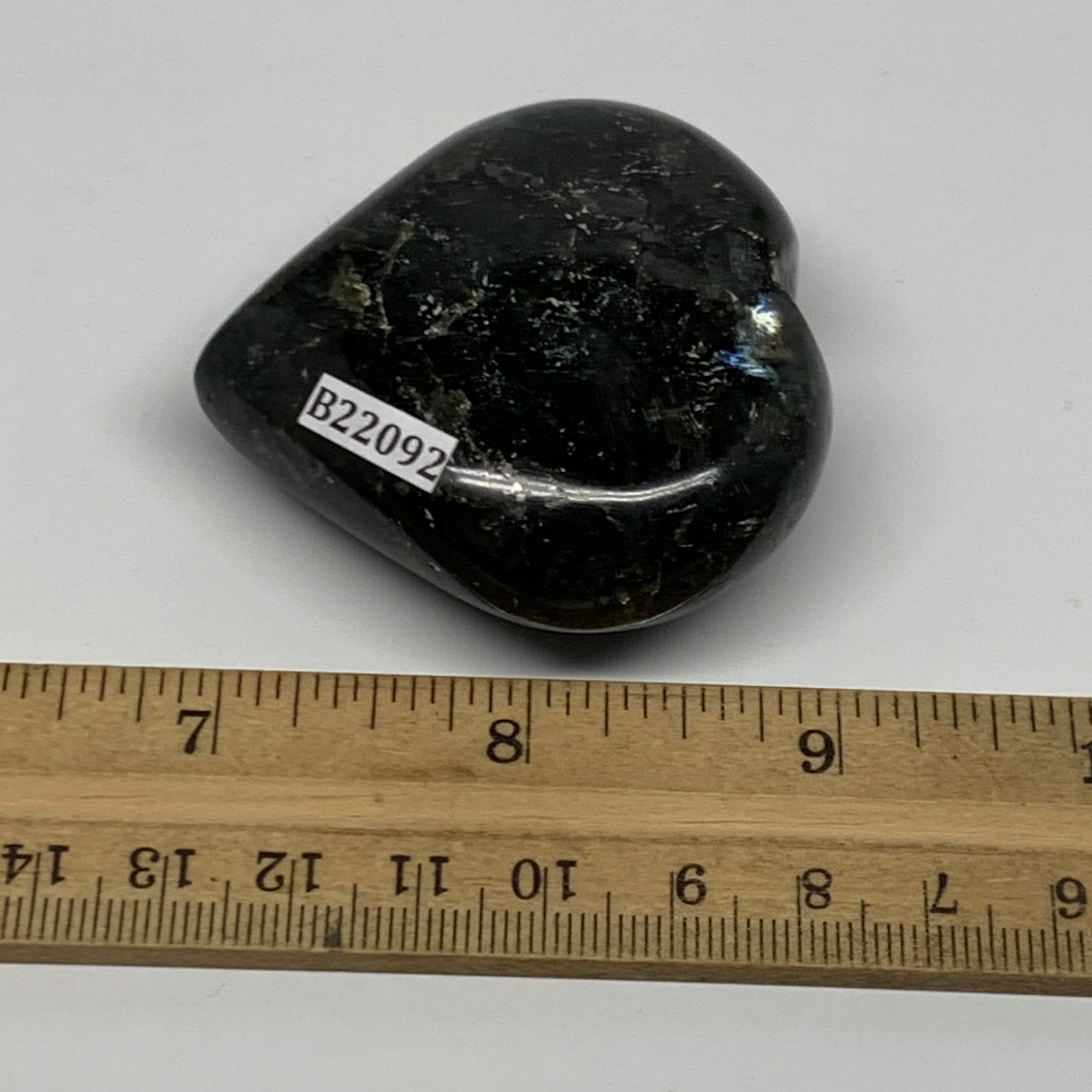 94.6g, 2.1"x2.2"x0.9" Natural Labradorite Heart Small Polished Healing Crystal, B22092