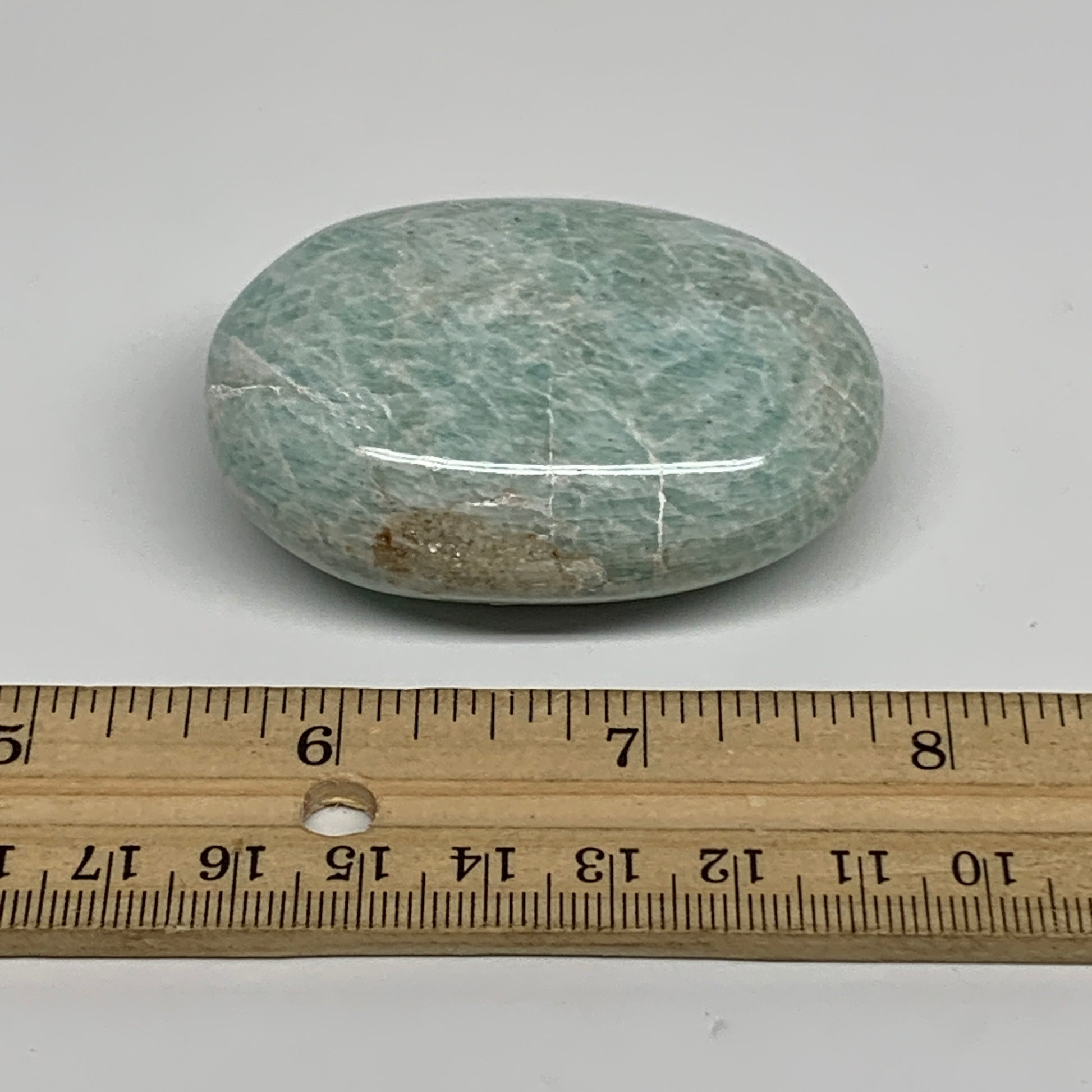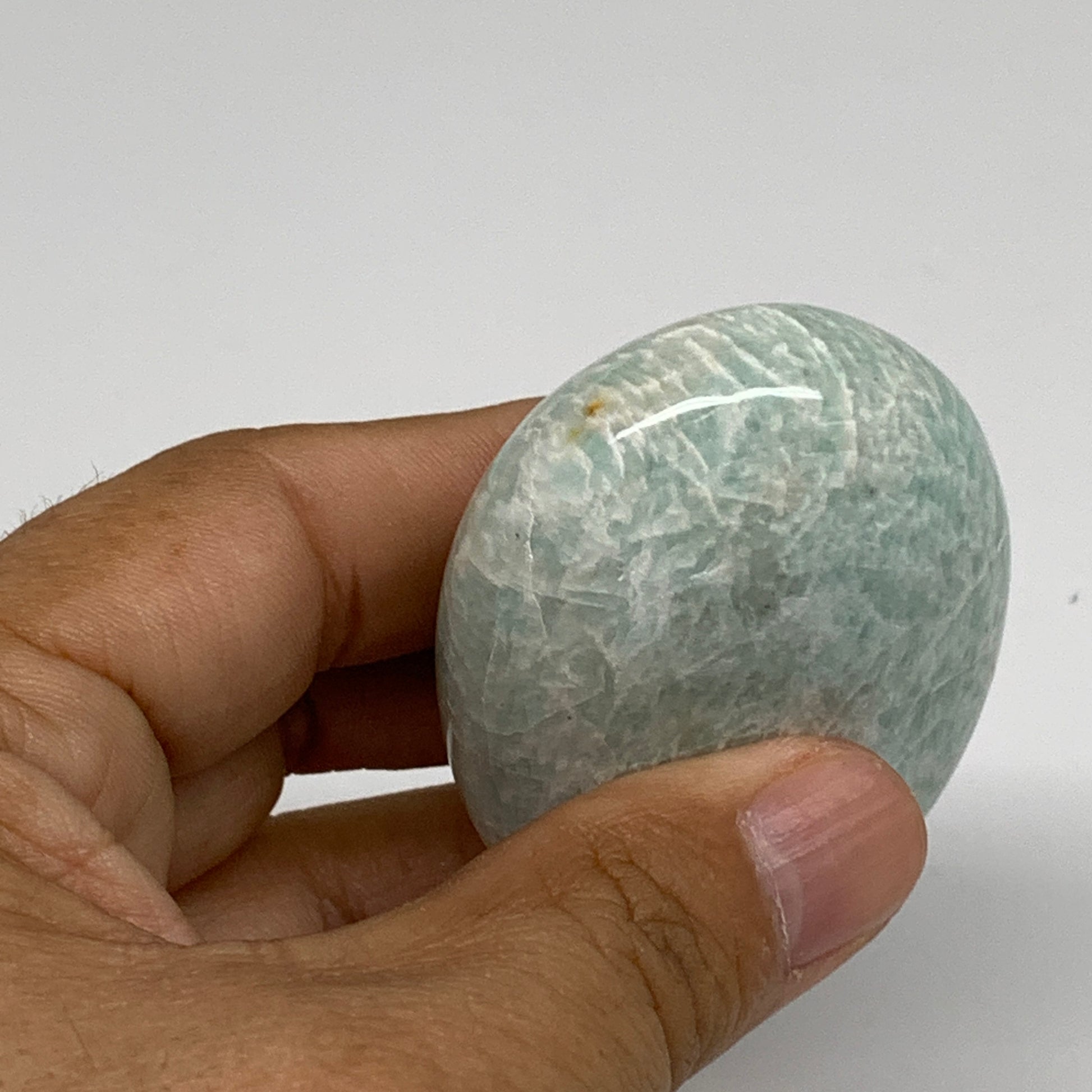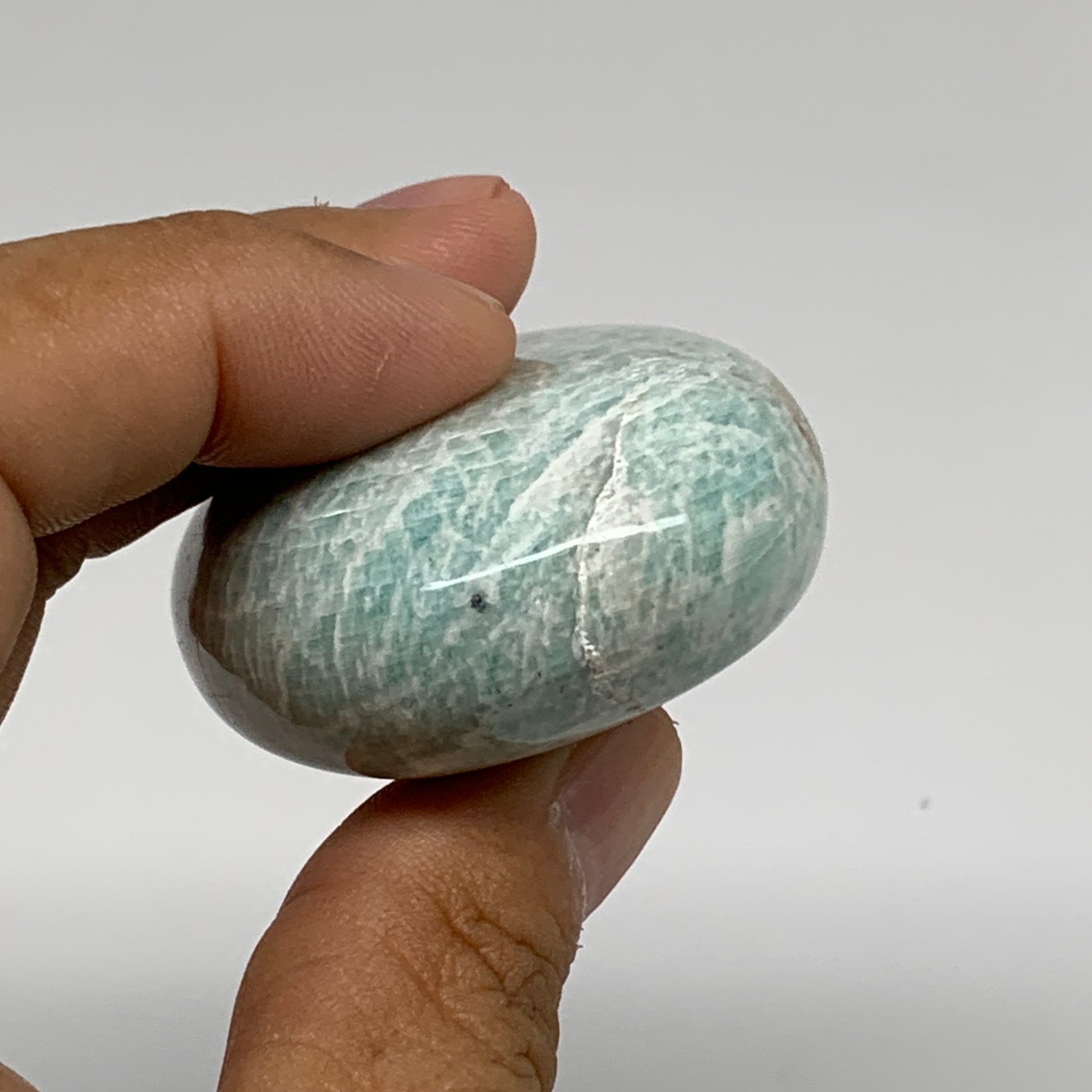 95.7g, 2.4"x1.7"x0.9", Natural Amazonite Palm-Stone Tumbled Polished, B34690