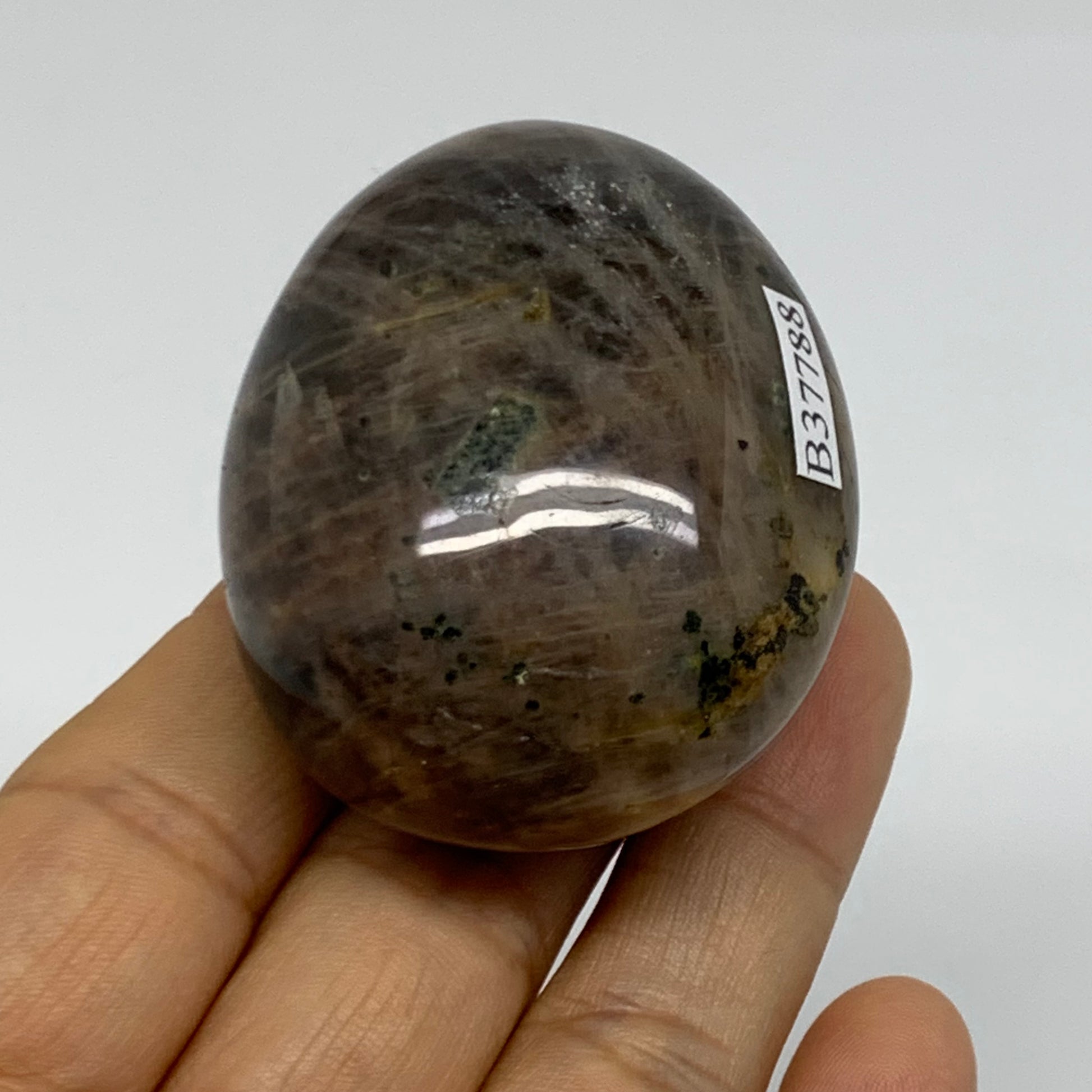 95.8g, 2"x1.7"x1.3", Black Moonstone Crystal Palm-Stone Polished, B37788