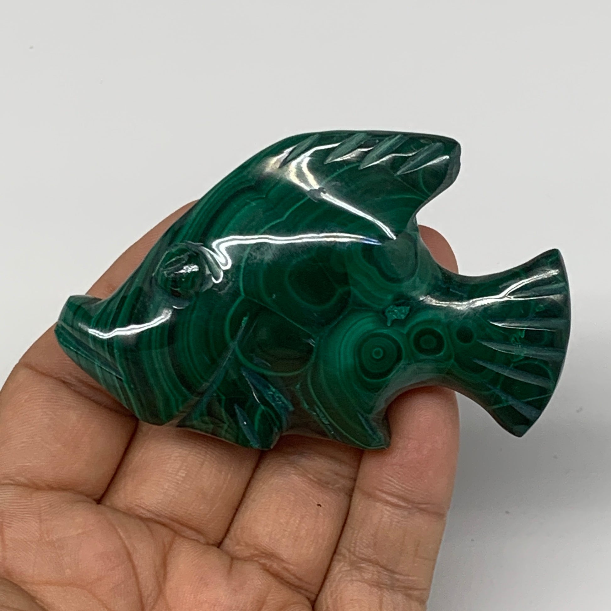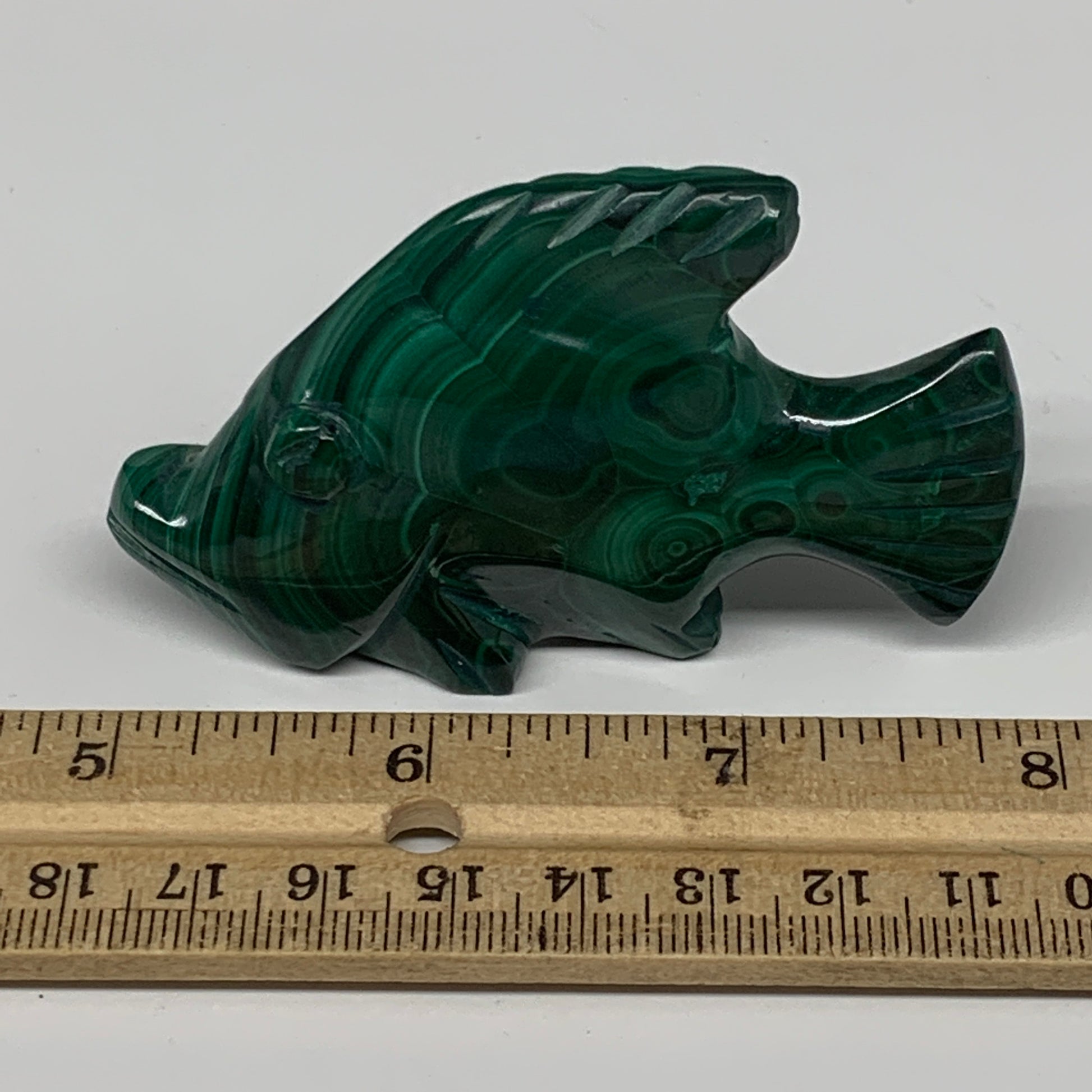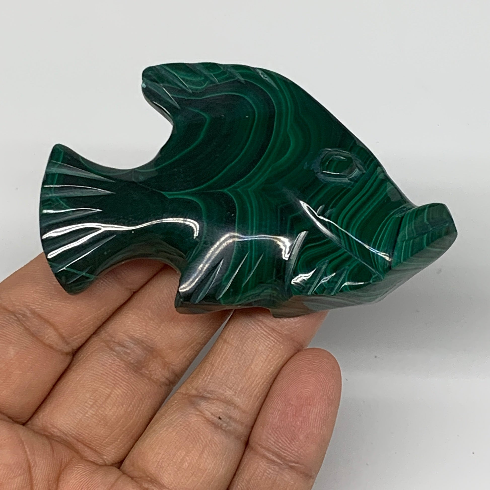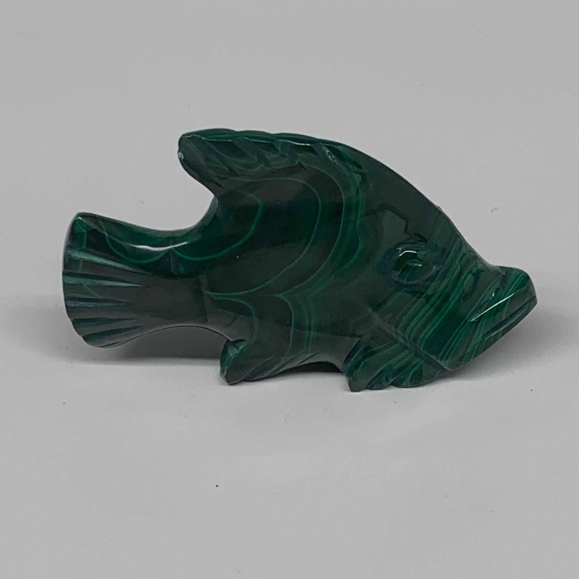 96.1g, 3"x1.9"x0.7" Natural Solid Malachite Fish Figurine @Congo, B7224