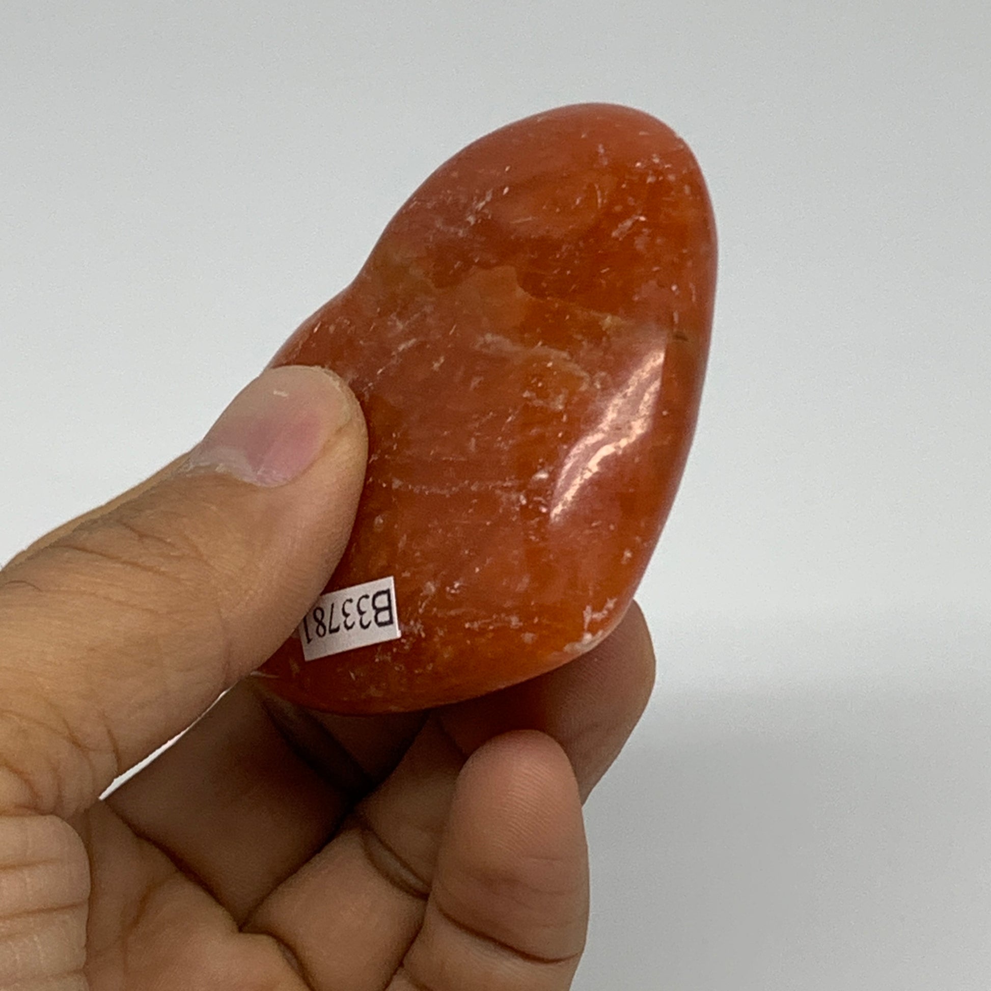 96.6g, 2.2"x2.5"x0.9" Orange Calcite Heart Gemstones from Madagascar, B33781