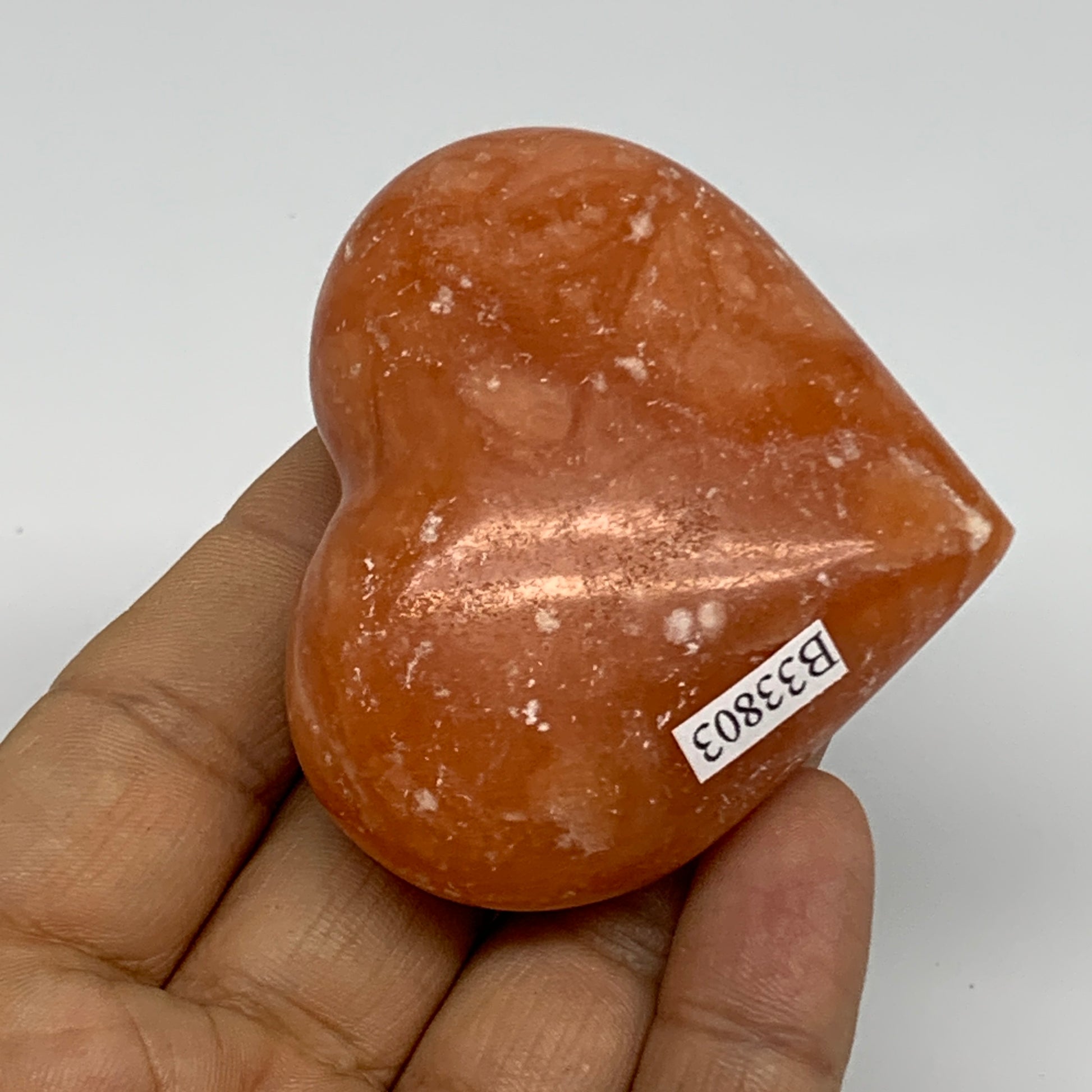 96.8g,2.1"x2.4"x1" Orange Calcite Heart Gemstones from Madagascar, B33803