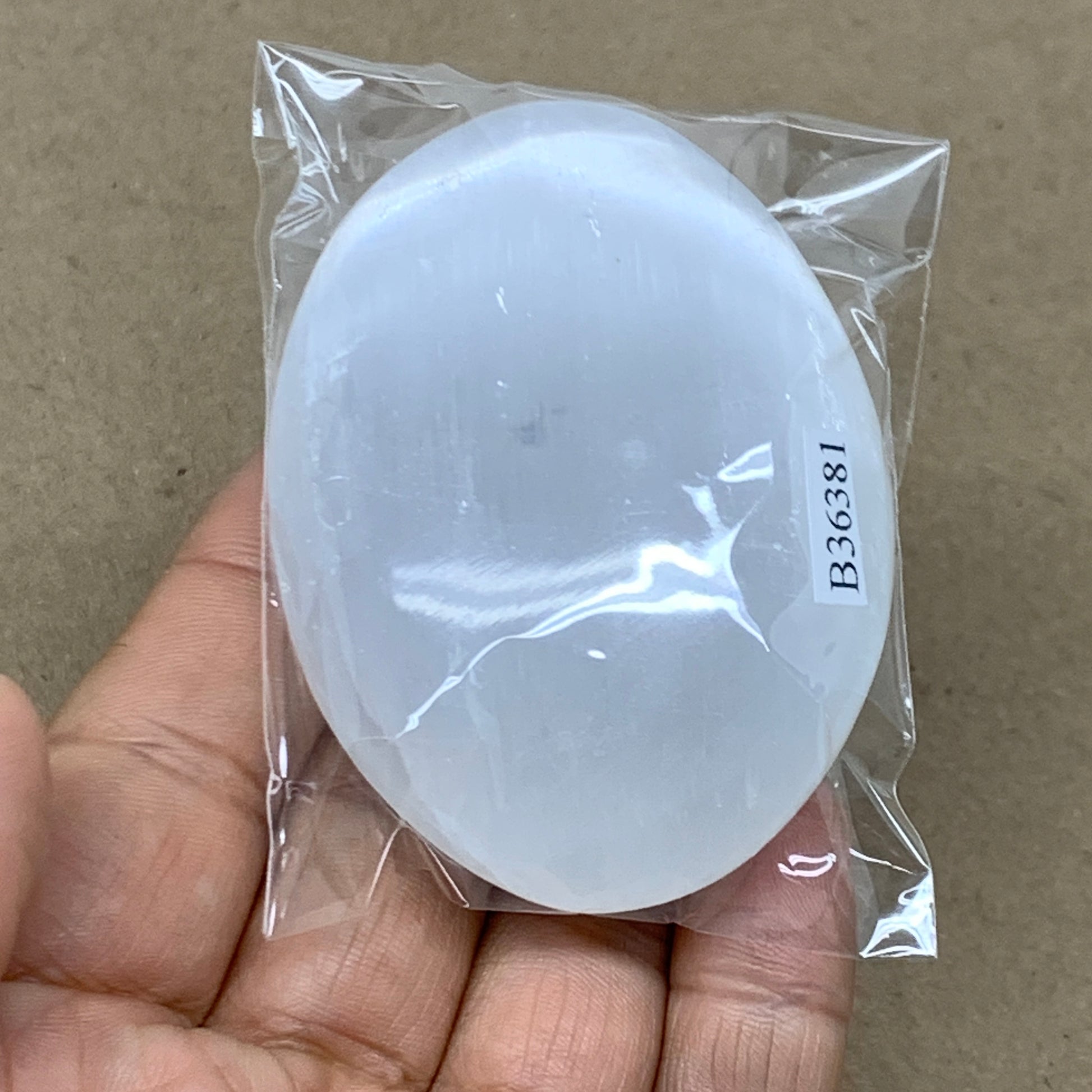96g, 2.7"x2"x1", White Selenite Palmstone Crystal Pillow Reiki, B36381
