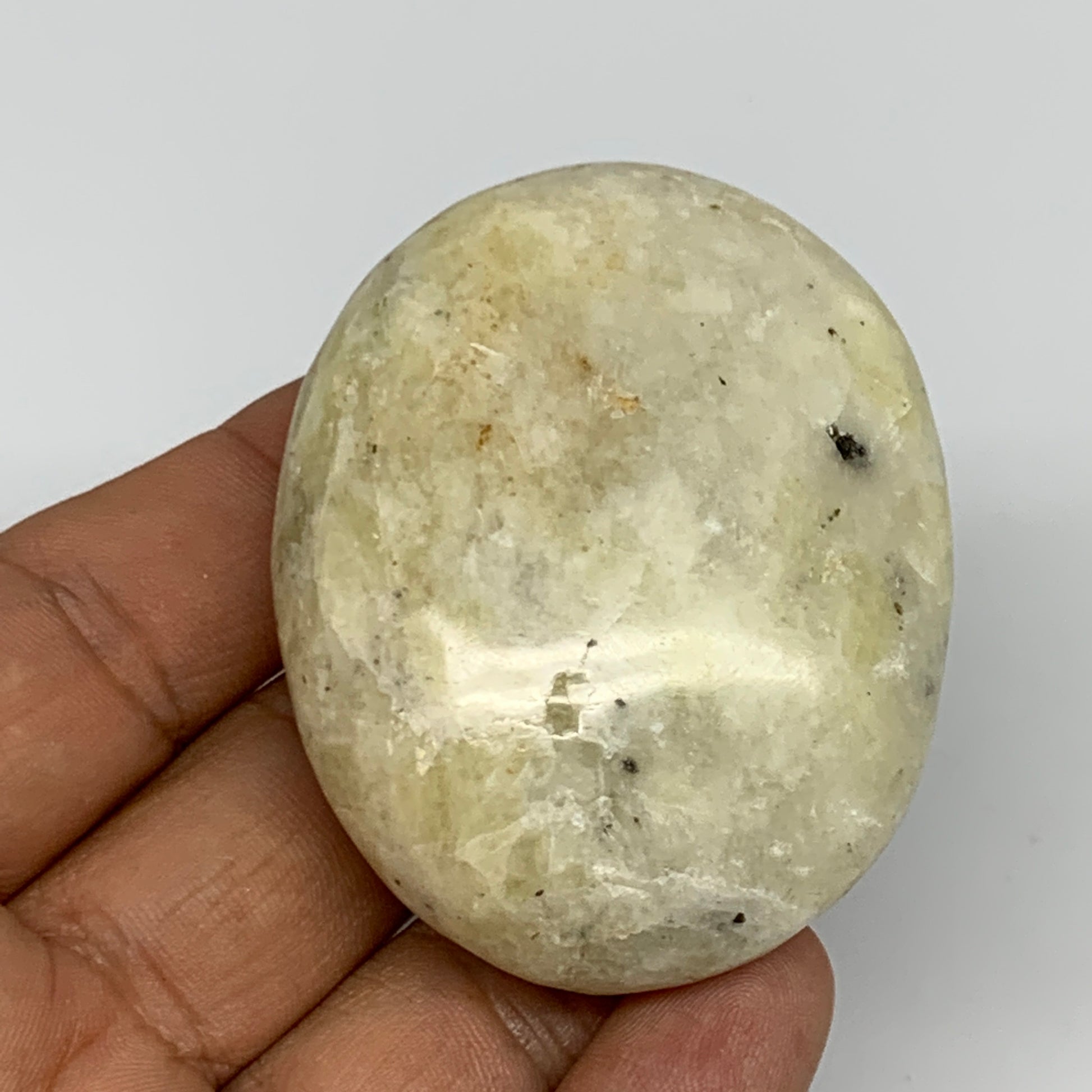97.1g, 2.3"x1.8"x0.9", Natural Yellow Calcite Palm-Stone Crystal Polished Reiki, B16828