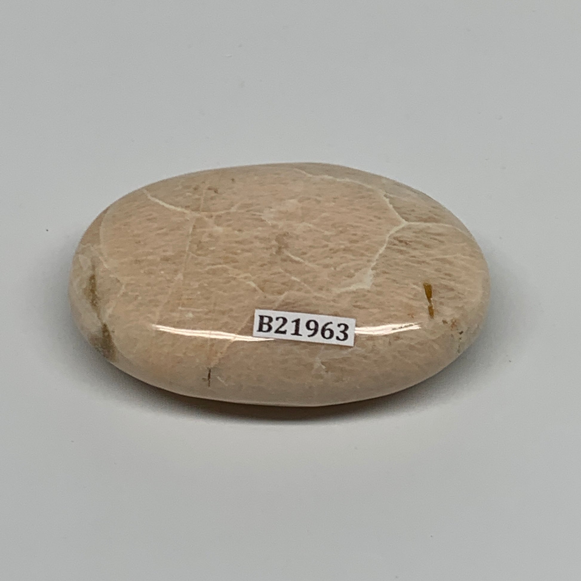 97.1g,2.6"x1.8"x0.9" White Moonstone Crystal Palm-Stone Polished Reiki, B21963