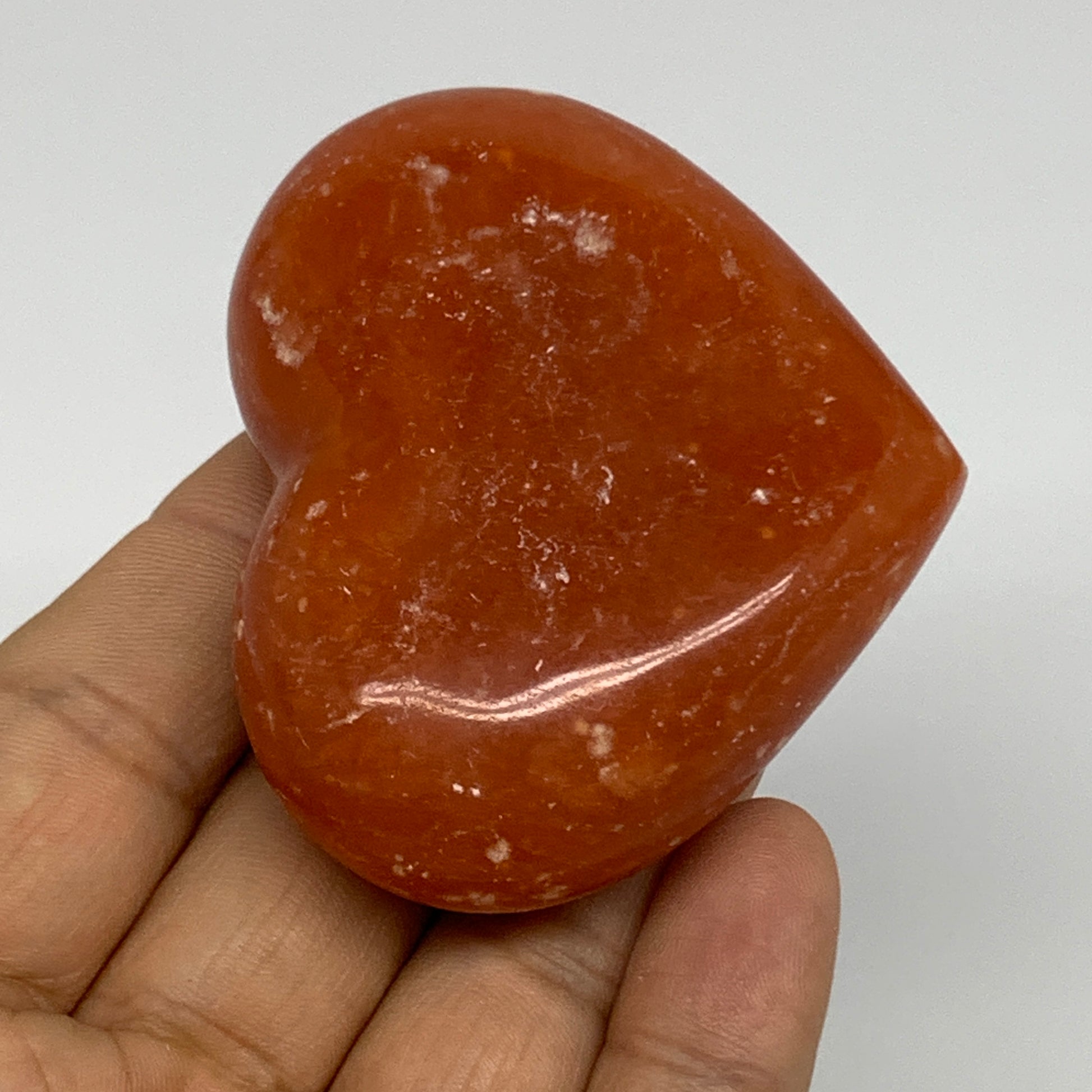 97.7g,2.1"x2.6"x0.9" Orange Calcite Heart Gemstones from Madagascar, B33802