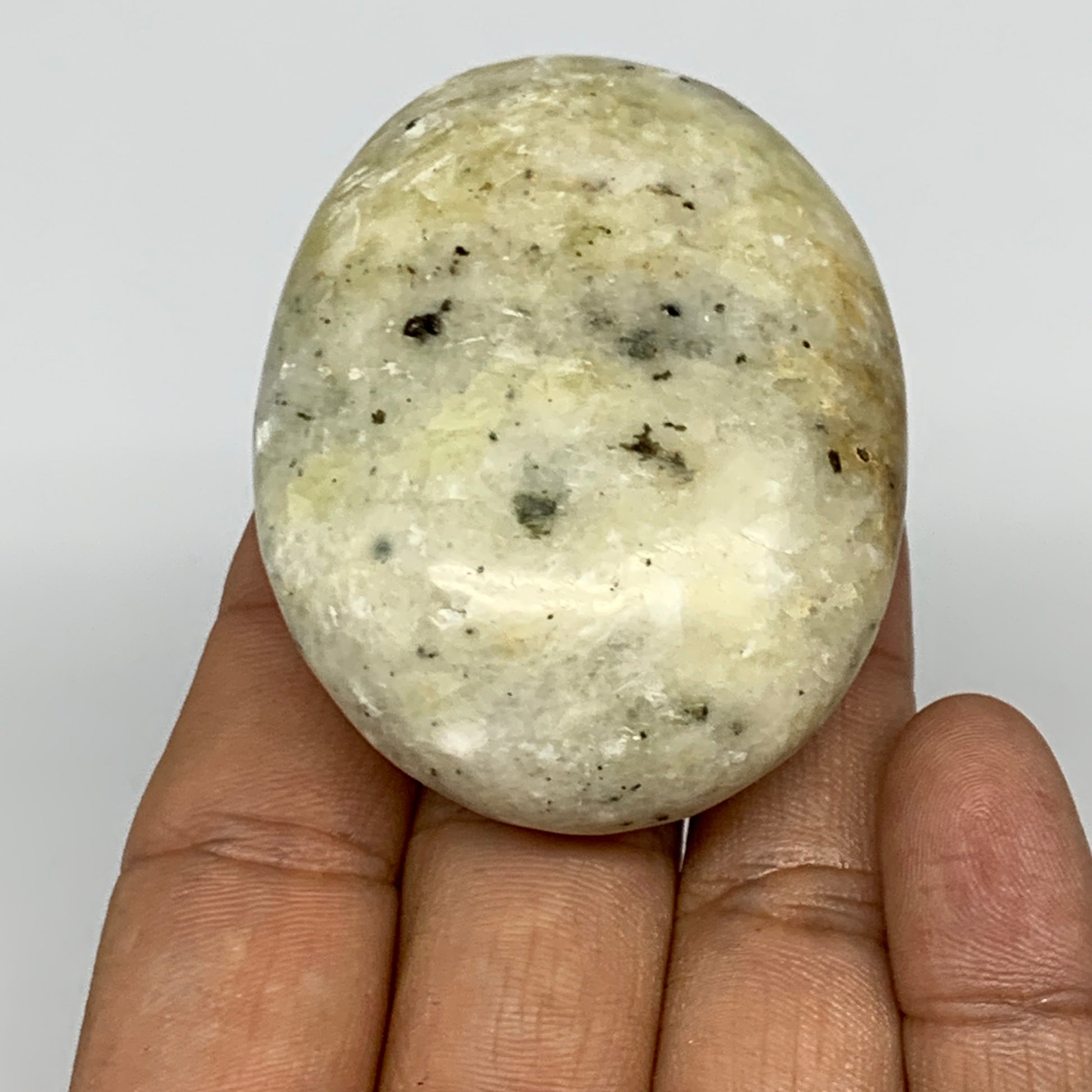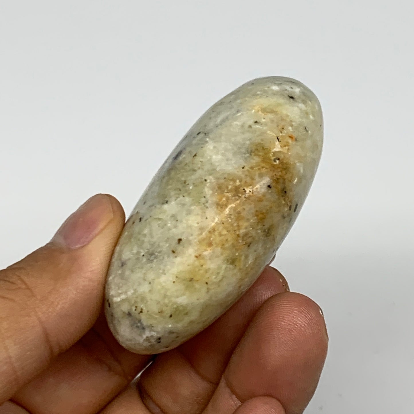 97.7g, 2.2"x1.8"x1", Natural Yellow Calcite Palm-Stone Crystal Polished Reiki, B16804