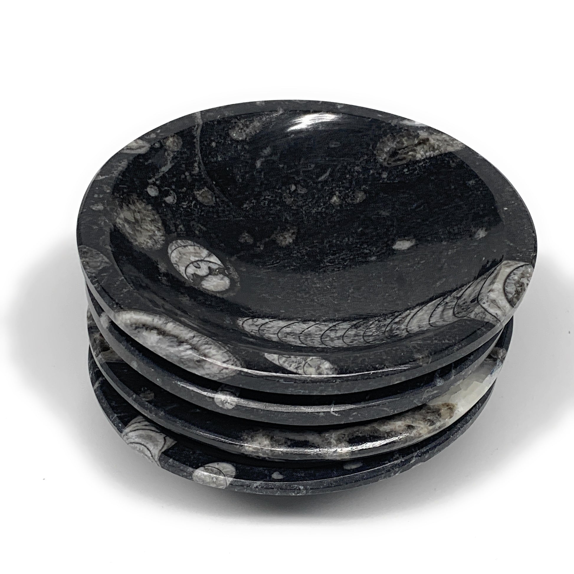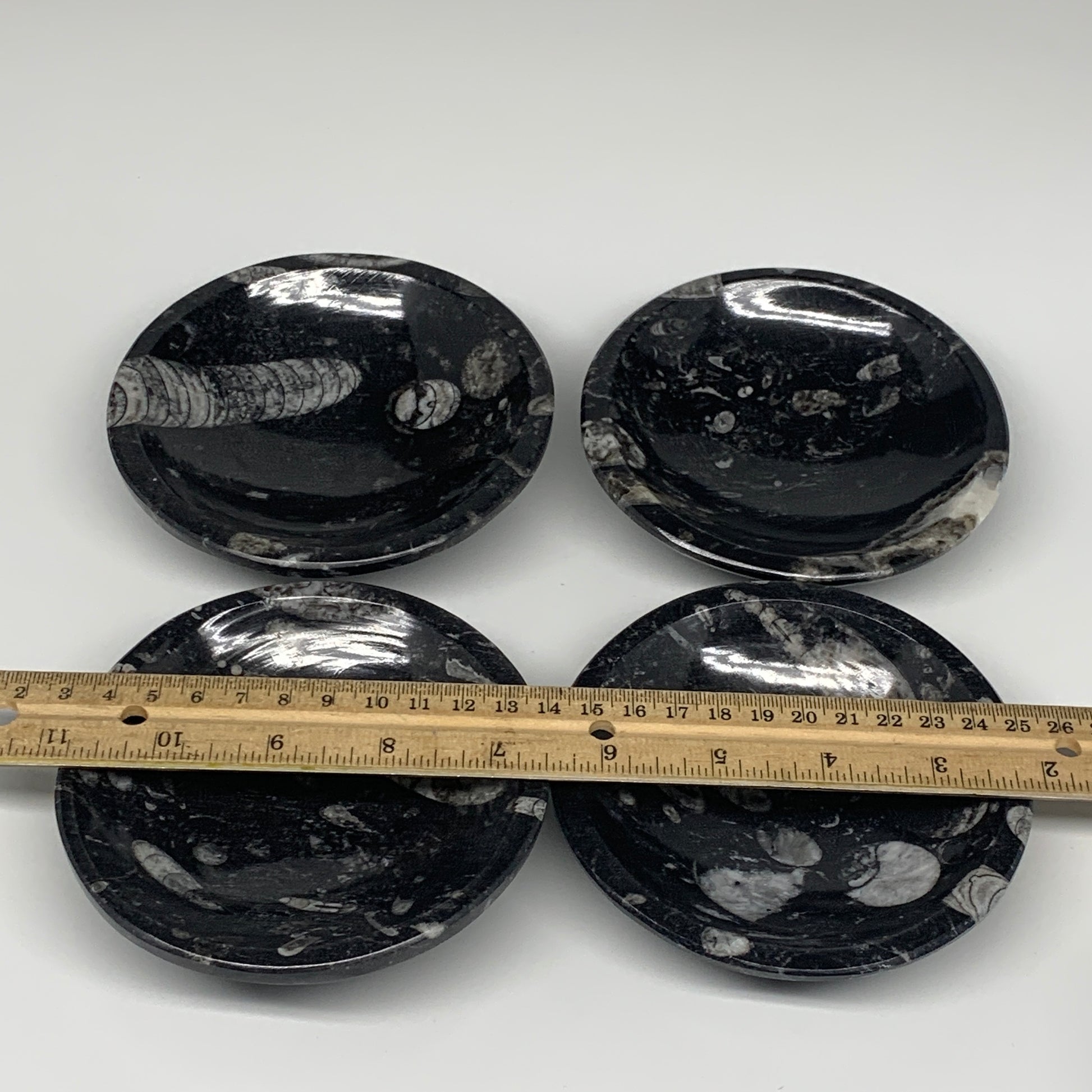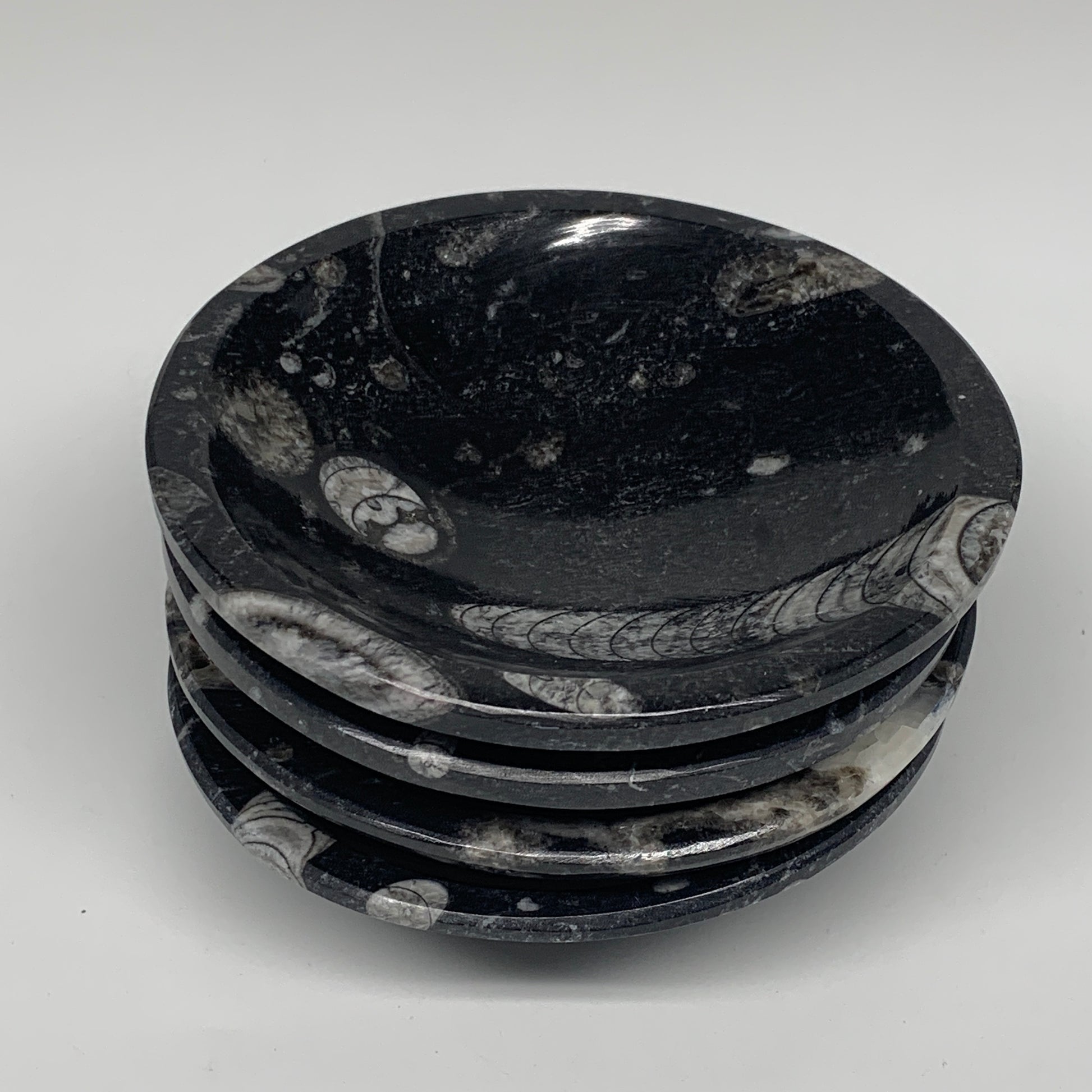 970g, 4pcs, 4.3" Small Fossils Ammonite Orthoceras Bowl Round Shape, B8864