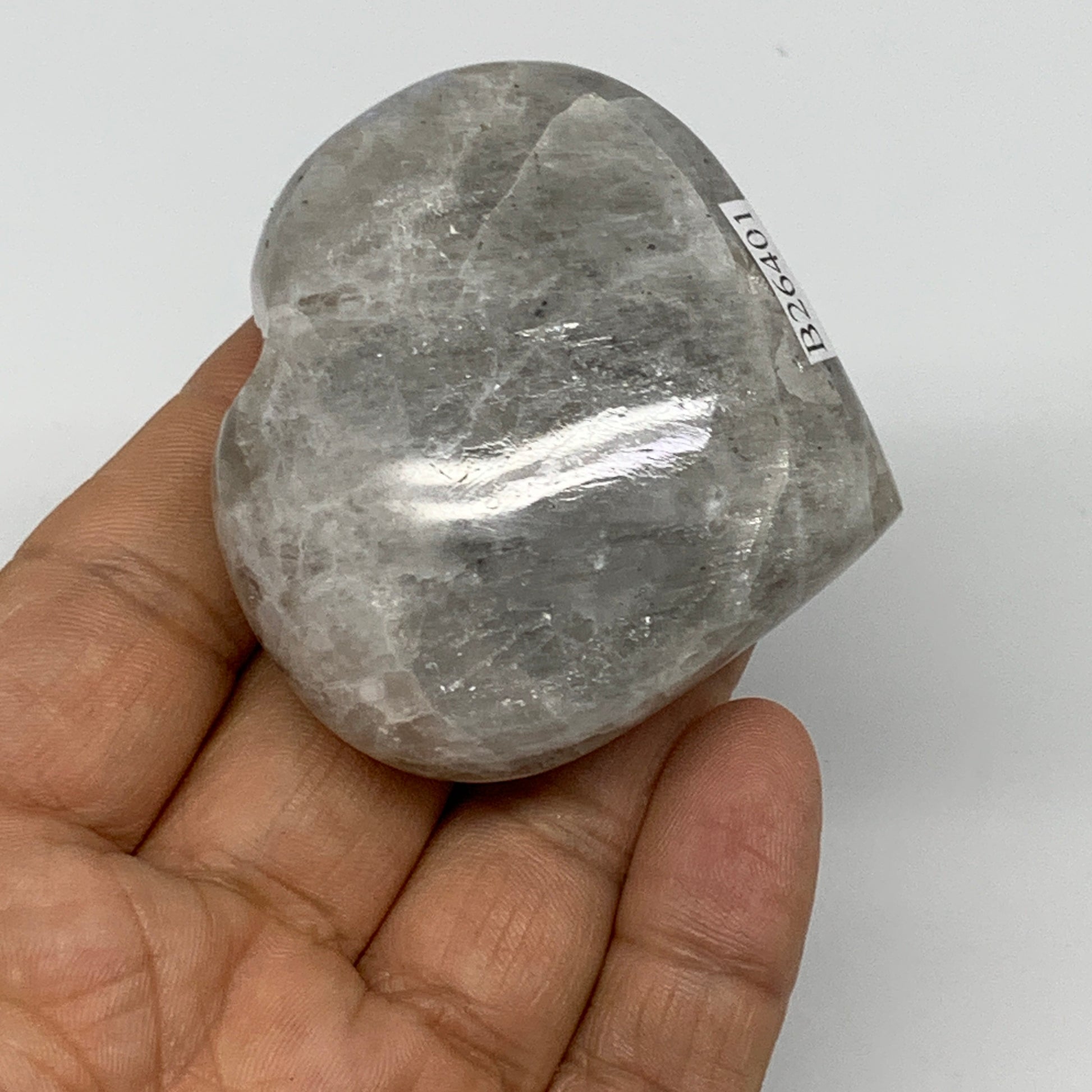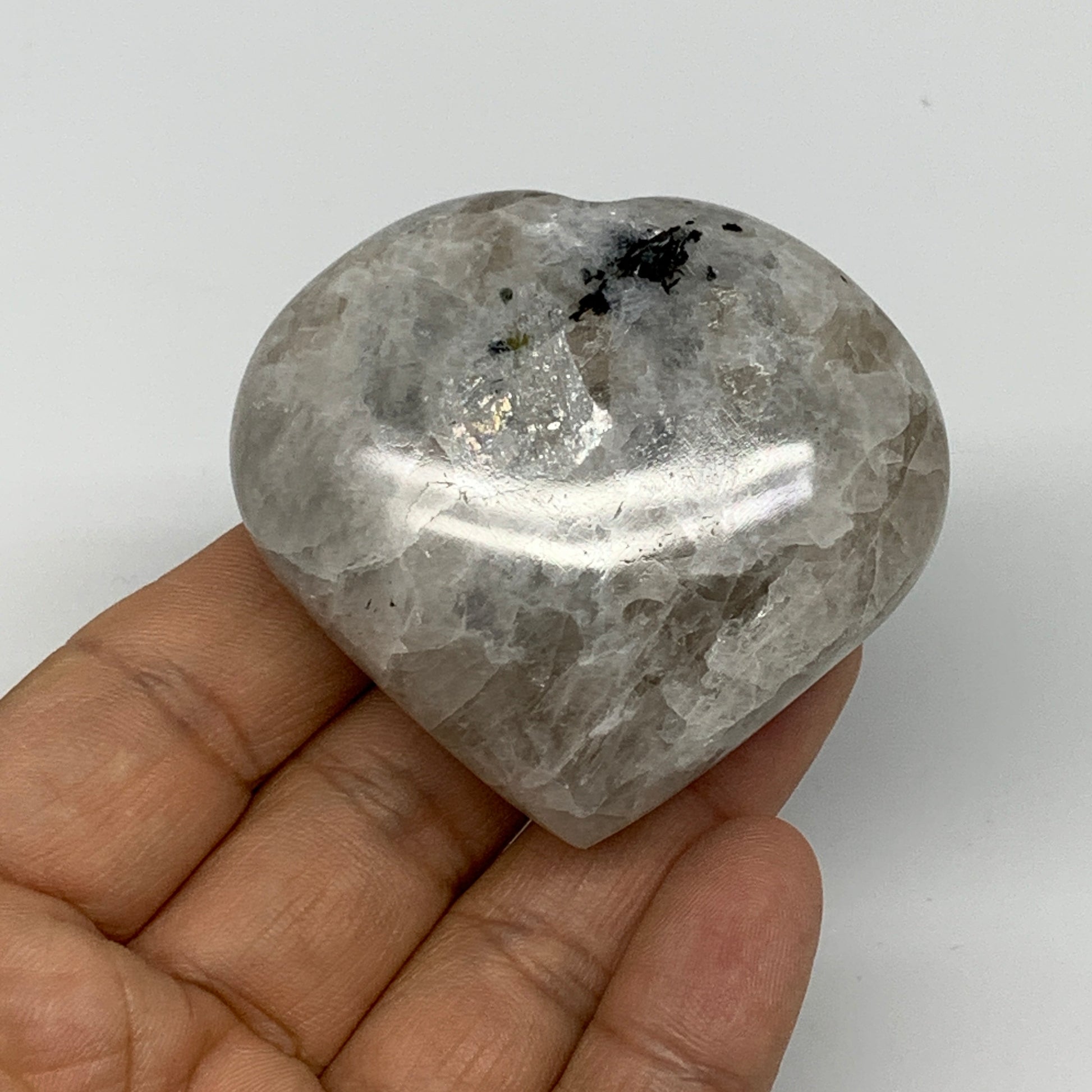 98.4g, 2.1"x2.3"x0.9", Rainbow Moonstone Heart Crystal Gemstone @India, B26401