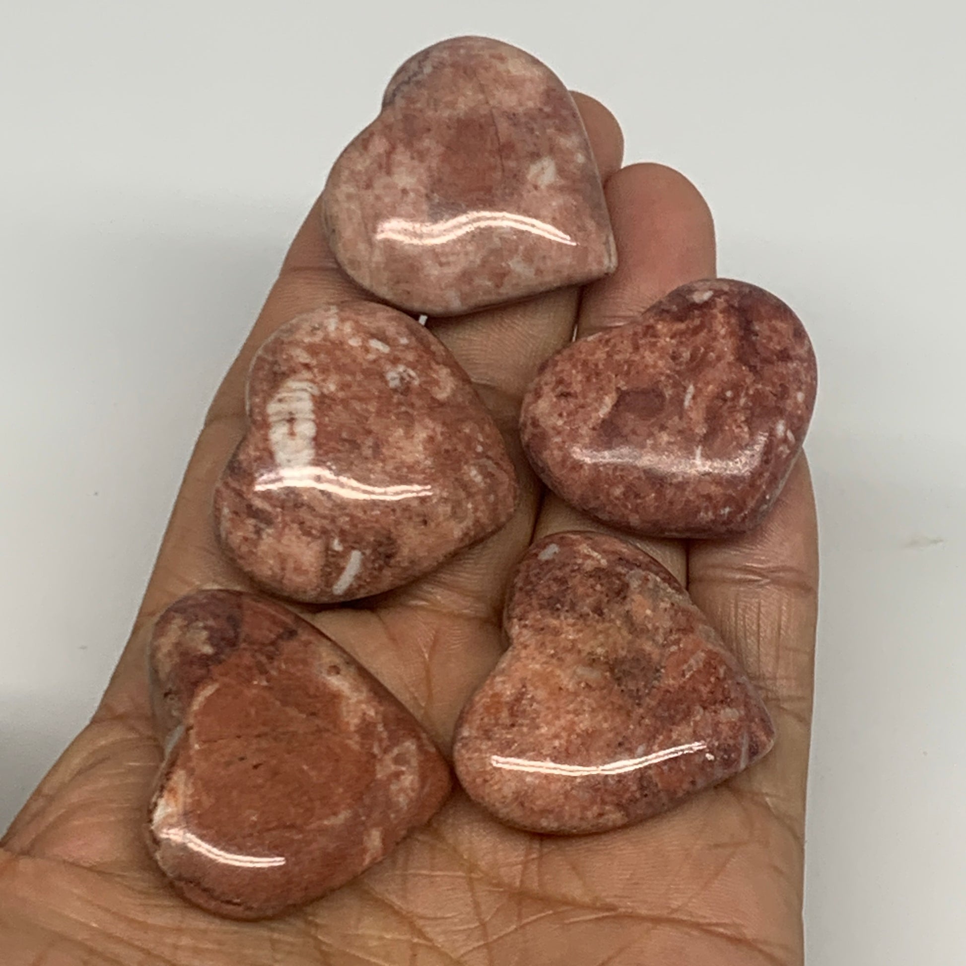 98.5g,1.1"- 1.3", 5pcs, Red Jasper Heart Polished Healing Home Decor, B26947