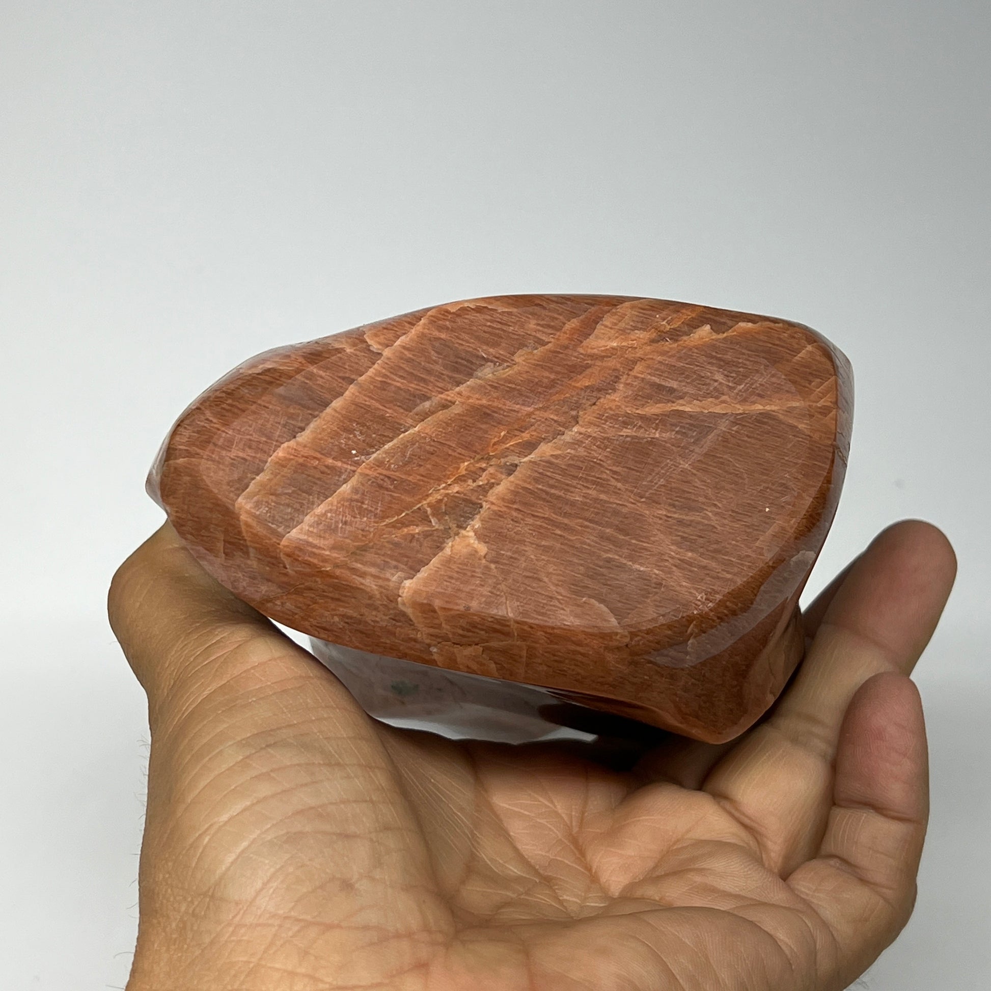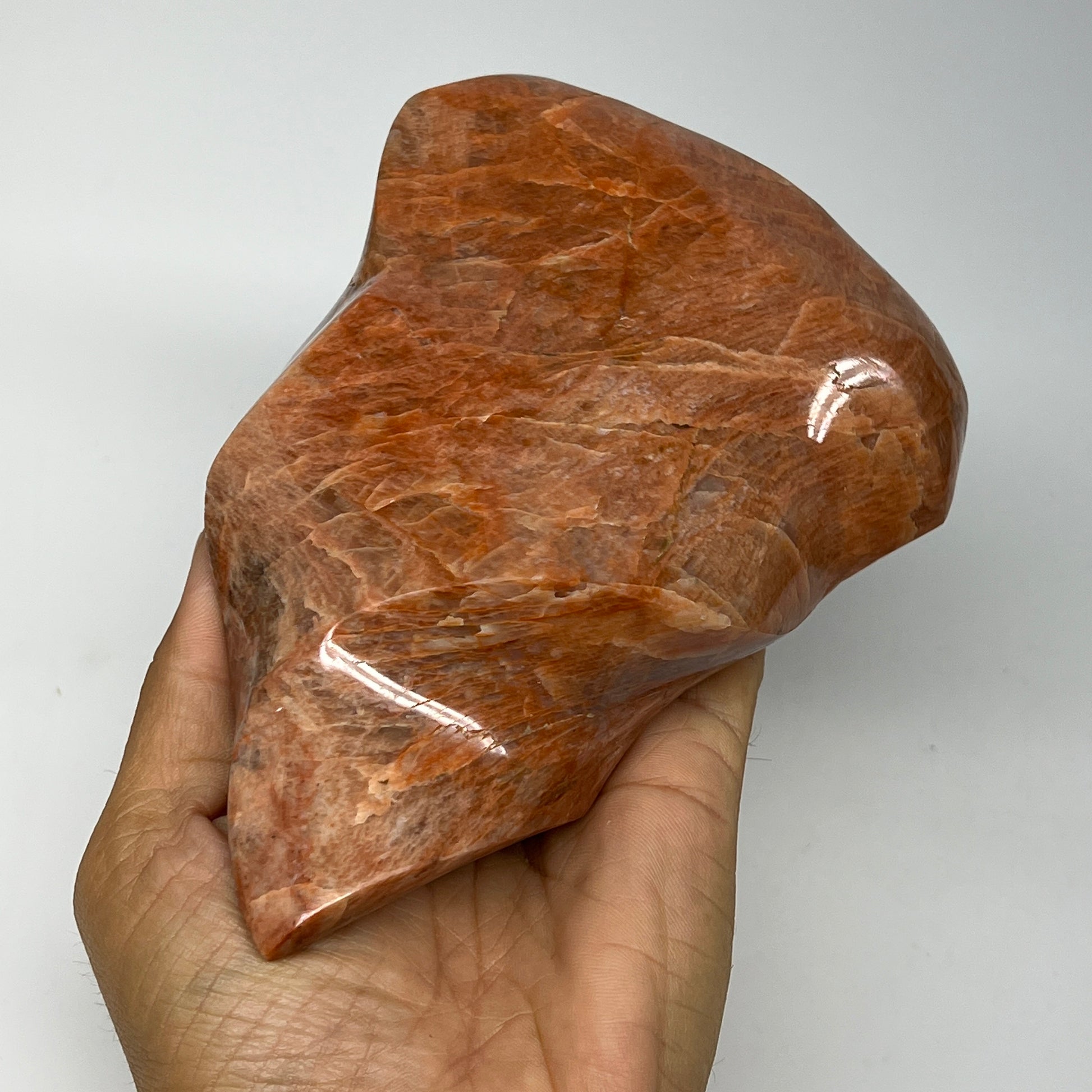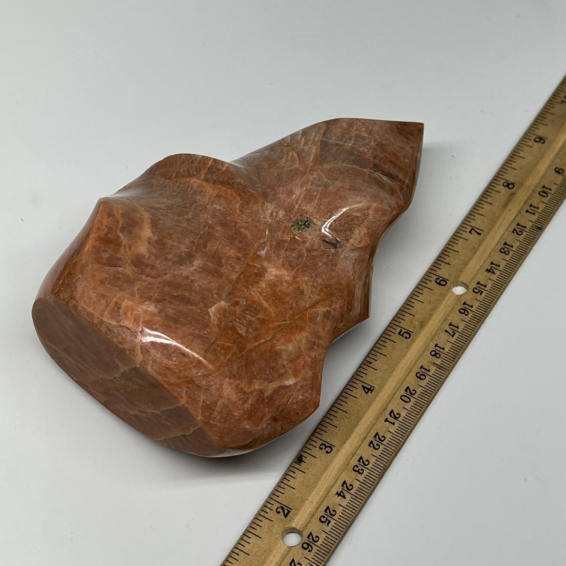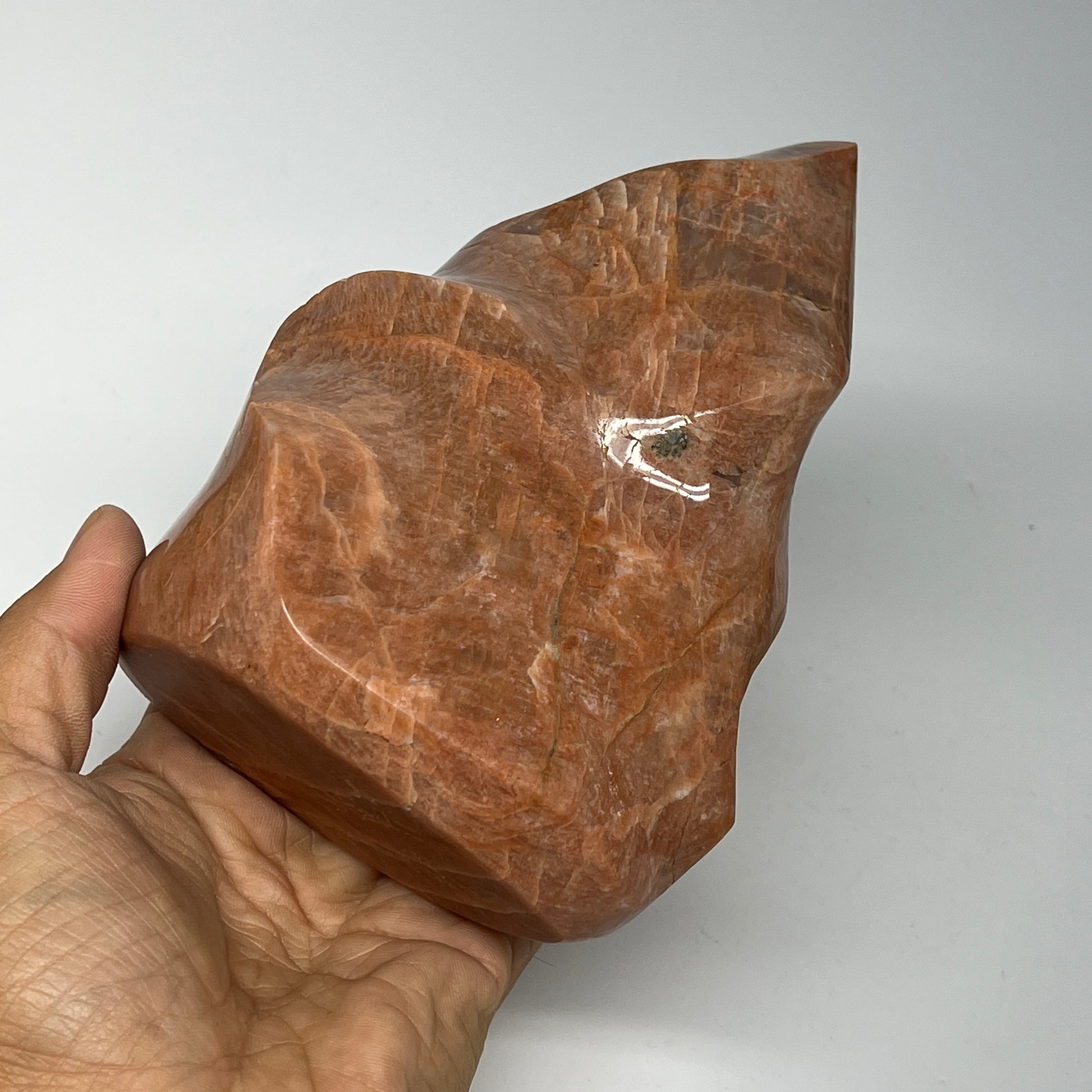980g, 5.9"x4.3"x2.3", Natural Peach Moonstone Flame Gemstones Reiki Tool, B19571