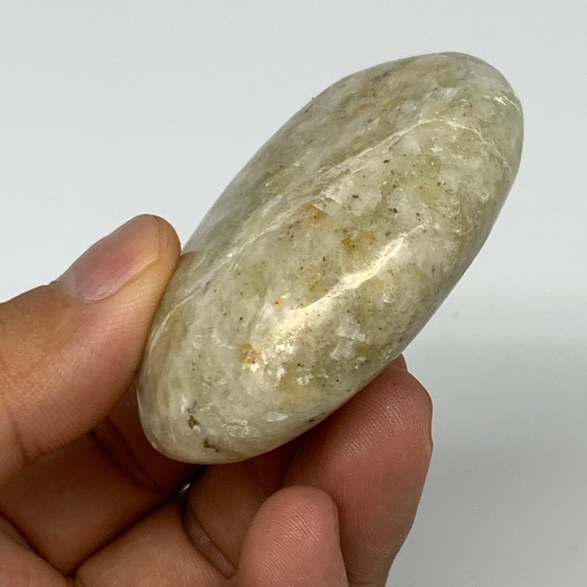 99.1g, 2.3"x1.9"x0.9", Natural Yellow Calcite Palm-Stone Crystal Polished Reiki, B16796