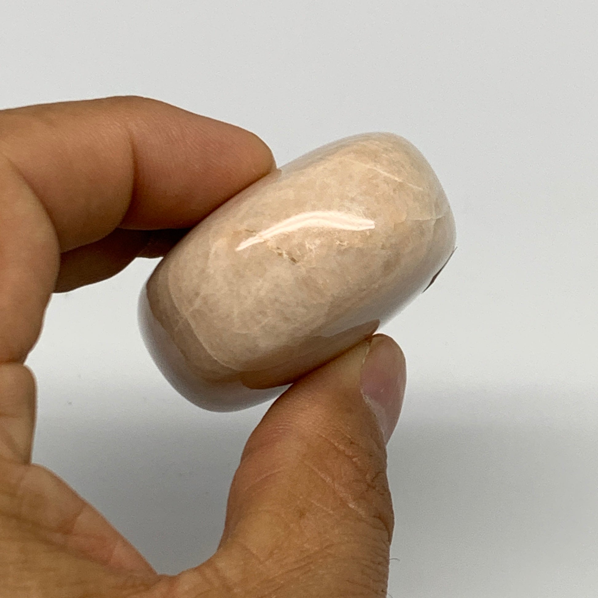 99.4g,2.1"x1.7"x0.9" Peach Moonstone Crystal Palm-Stone Polished Reiki, B27993