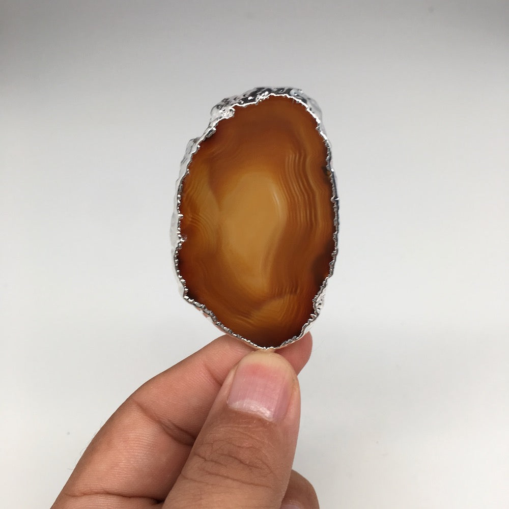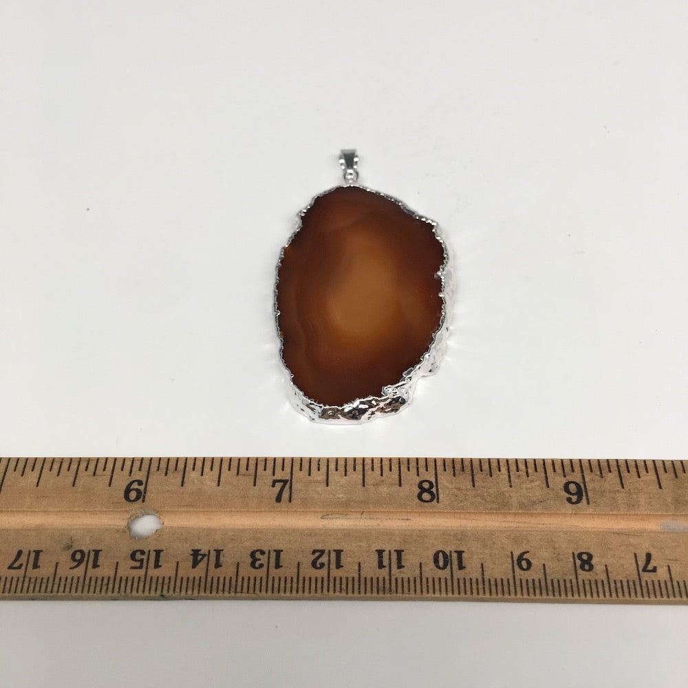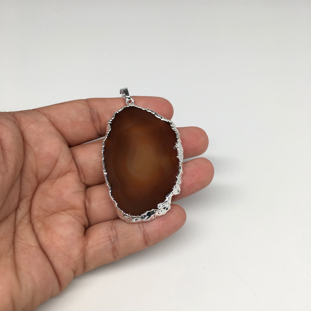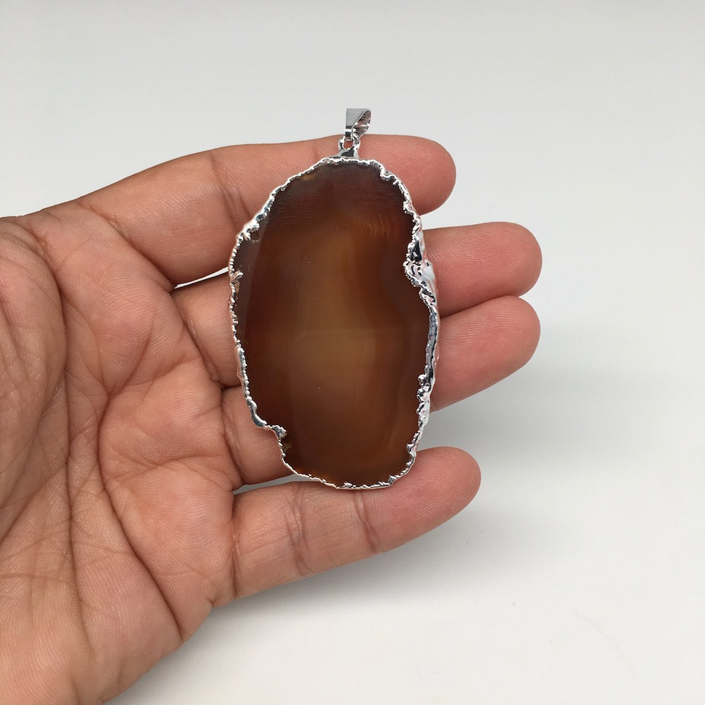 99.5cts, 2.7"x1.5" Gray Agate Druzy Geode Pendant Silver Plated @Brazil, Bp1218